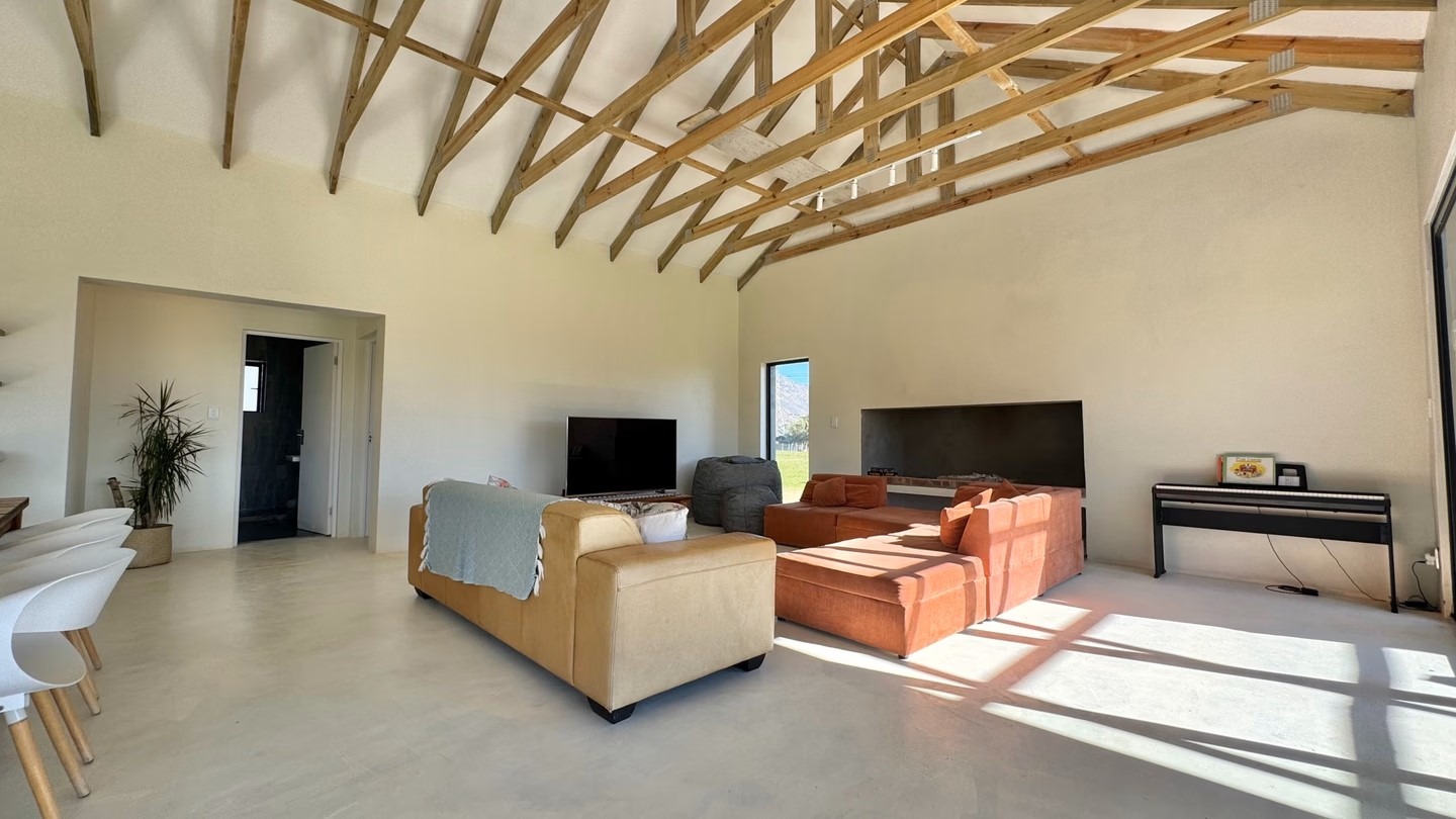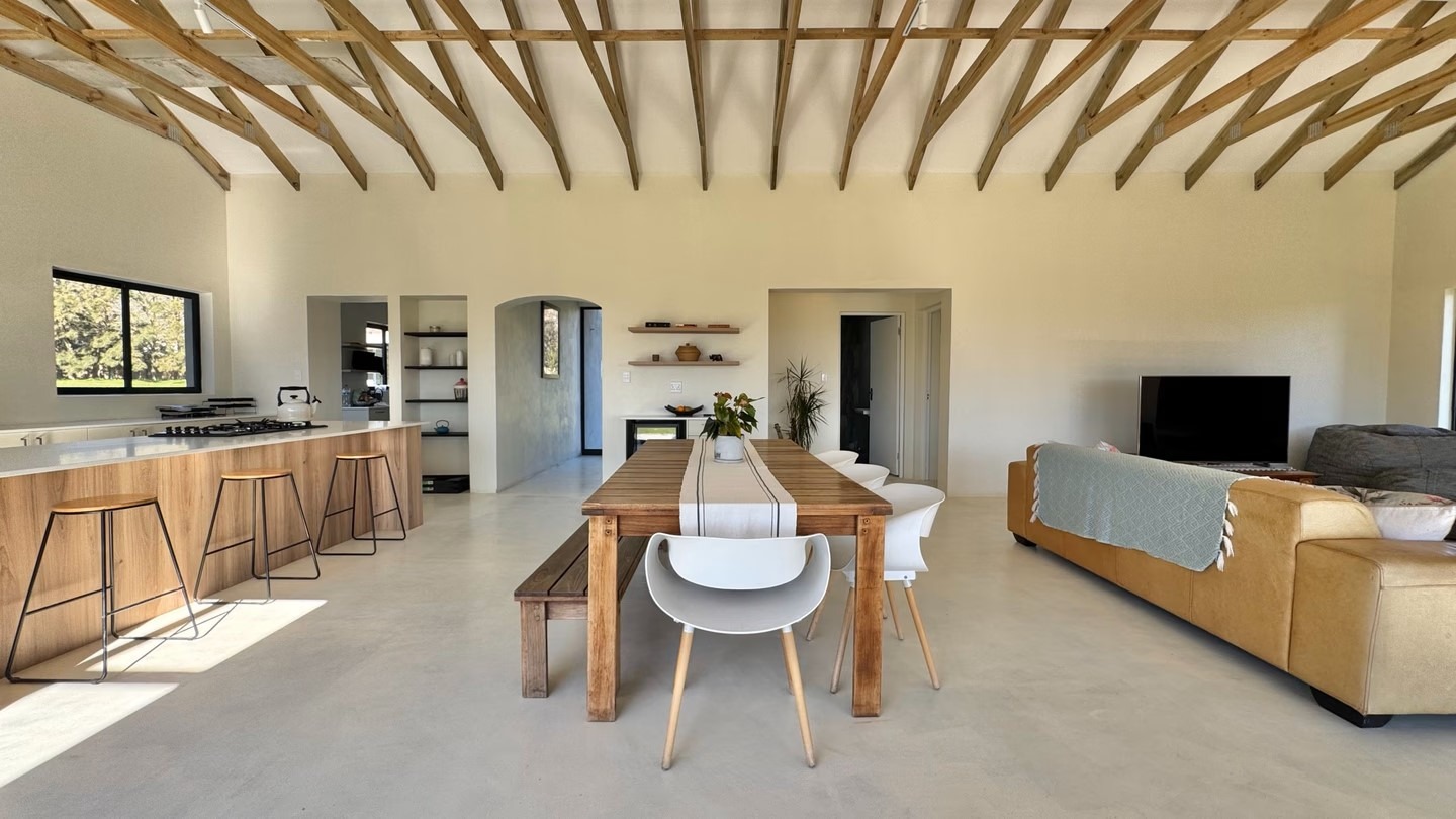 The home has been thoughtfully designed to enhance light, space, and connection to its surroundings. An expansive open-plan living, dining, and kitchen area forms the heart of the home, creating a fluid environment that is equally suited to relaxed family living or hosting guests. Large openings and carefully positioned windows ensure the landscape remains a constant presence throughout the interior.