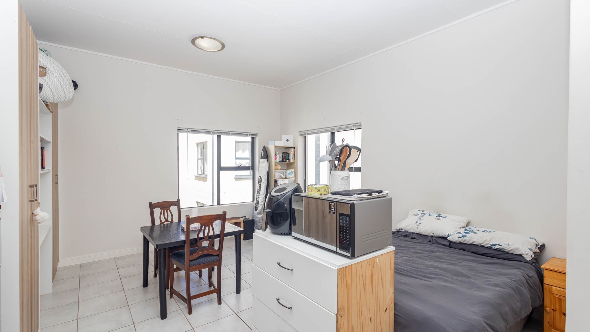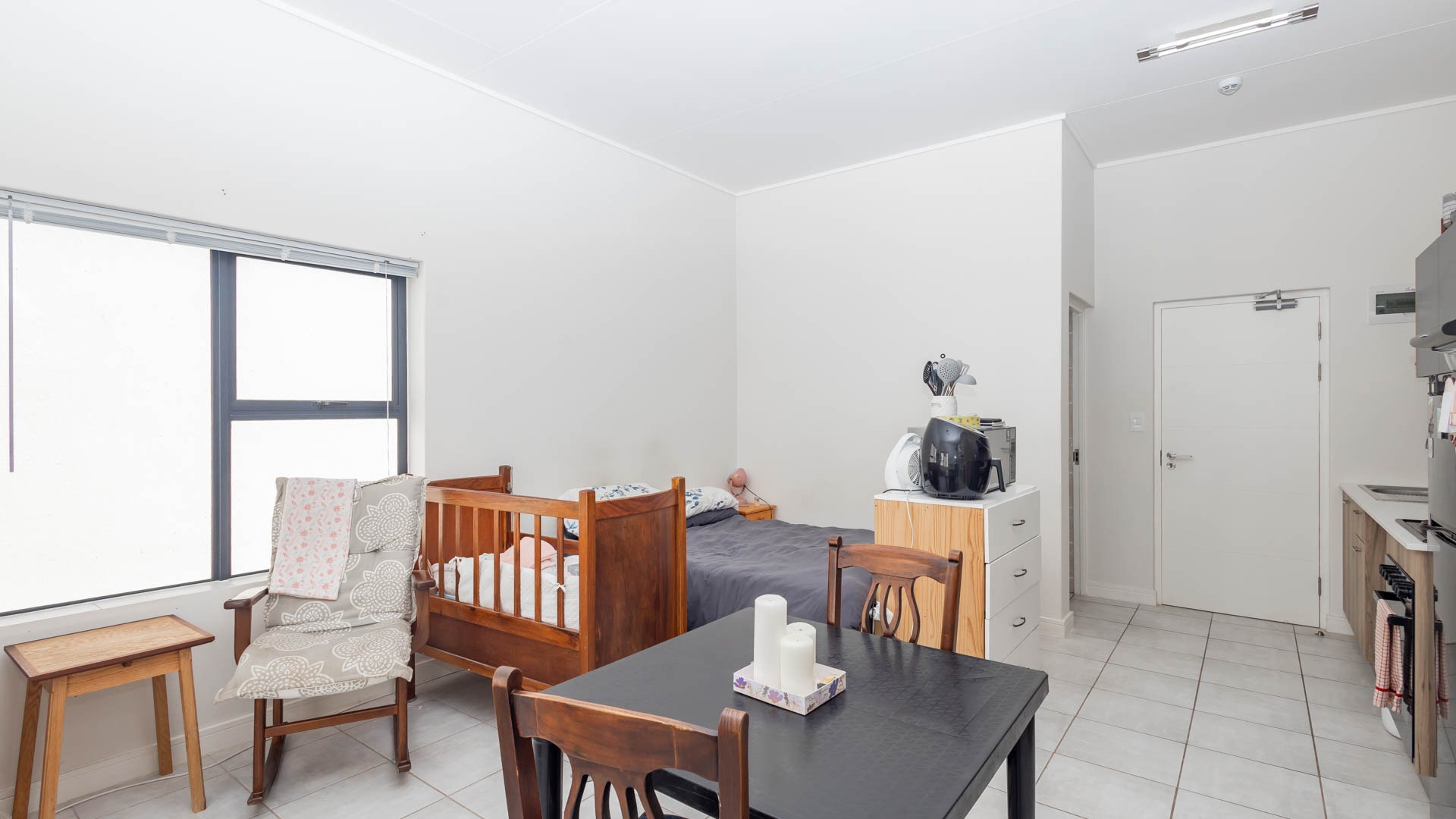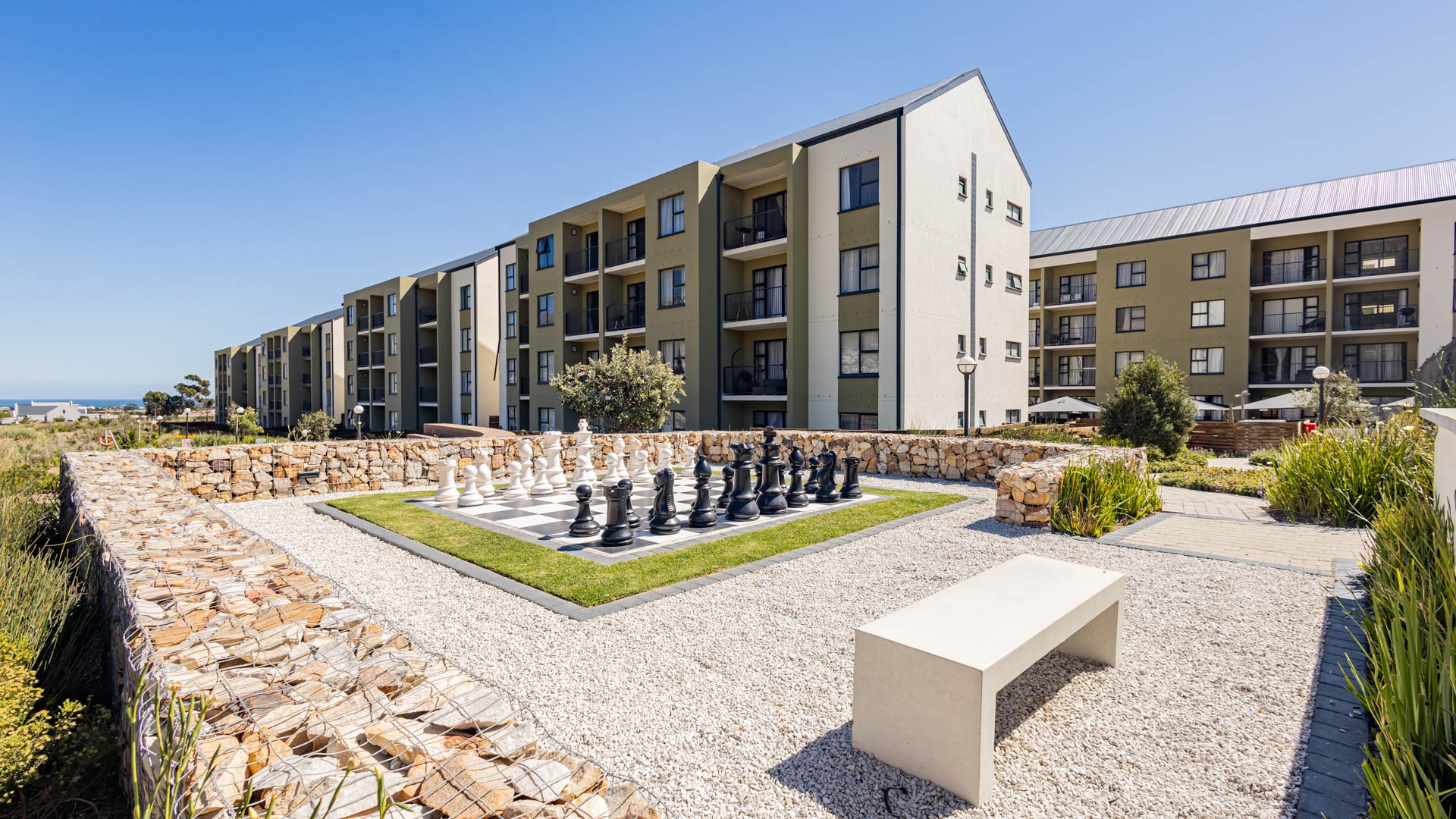 Discover modern living within the acclaimed Green Bay Eco Estate, a residential complex. This contemporary 31 sqm apartment offers a well-designed 1-bedroom studio with a seperate bathroom layout, perfect for individuals or couples seeking a vibrant lifestyle in Gordons Bay. The unit features an open-plan design, maximising space and natural light, with durable tiled flooring throughout.