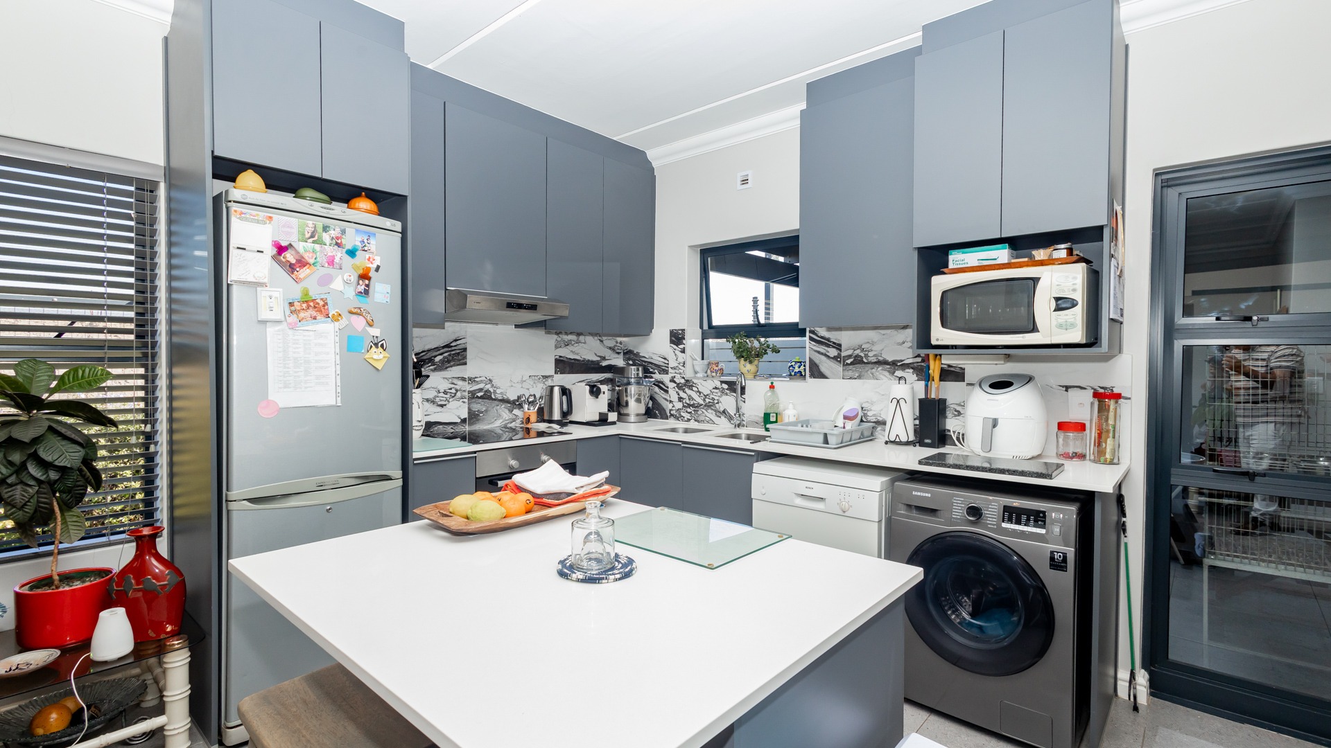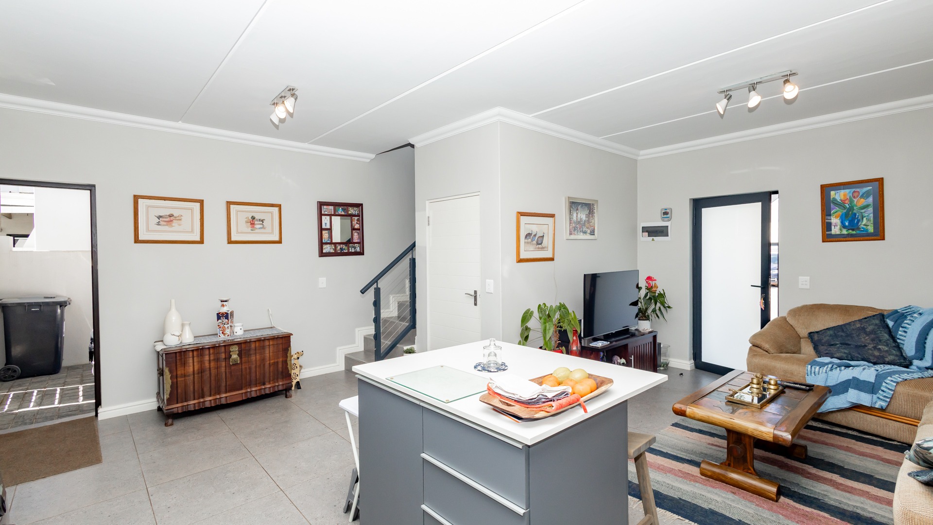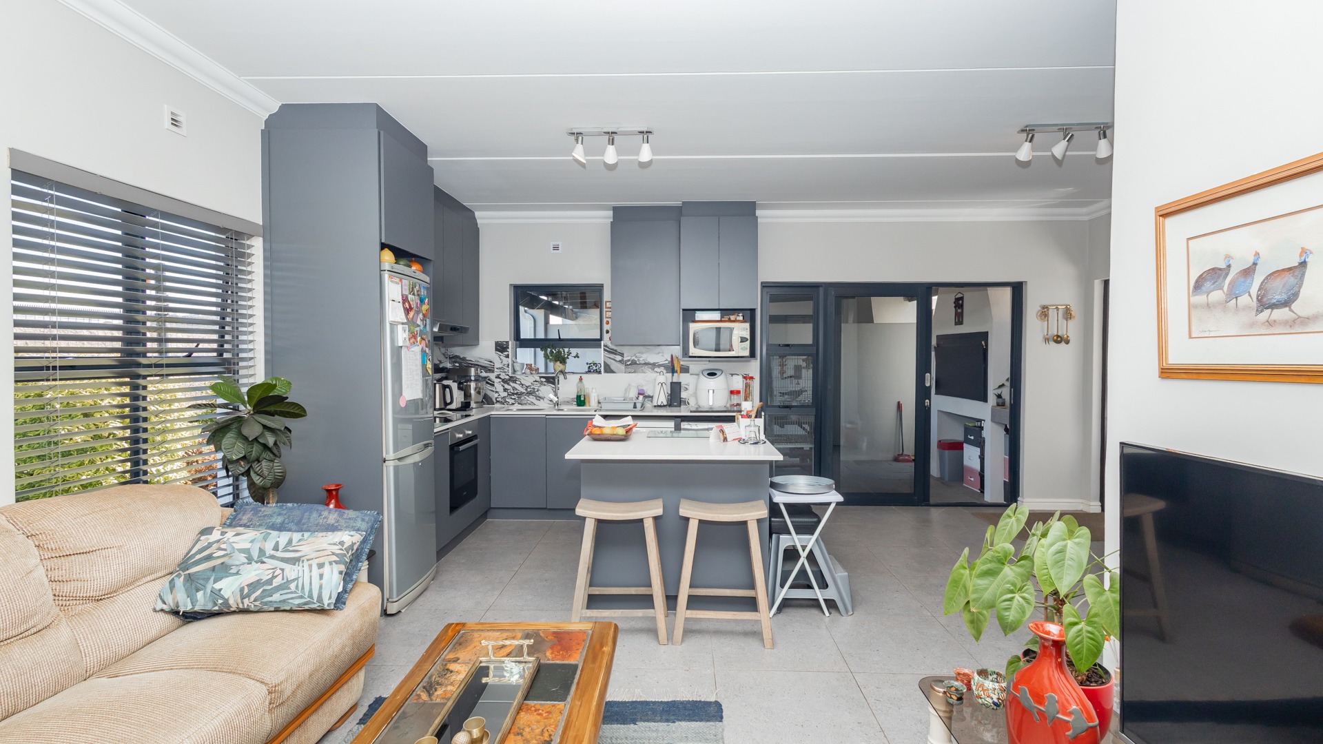 Designed with modern convenience in mind, this stylish home features an open-plan living and dining area on the ground floor, flowing effortlessly into a sleek kitchen equipped with quality finishes and ample storage. Guest toilet and basin for convenience. Sliding doors leading into an covered patio are with build in braai.