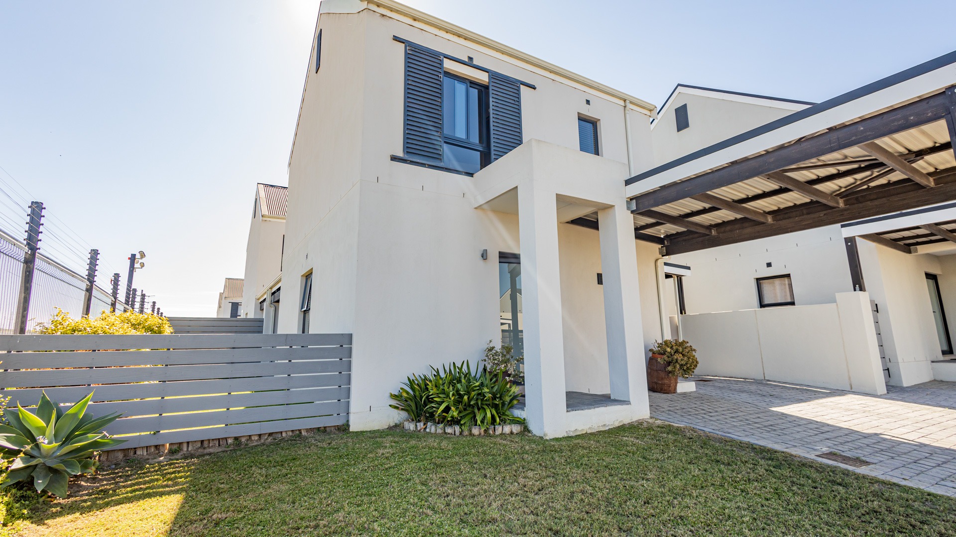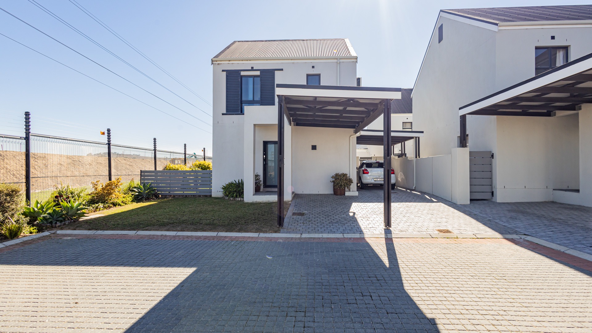 Two covered parking bays next to the house and also another one on the side of the house.