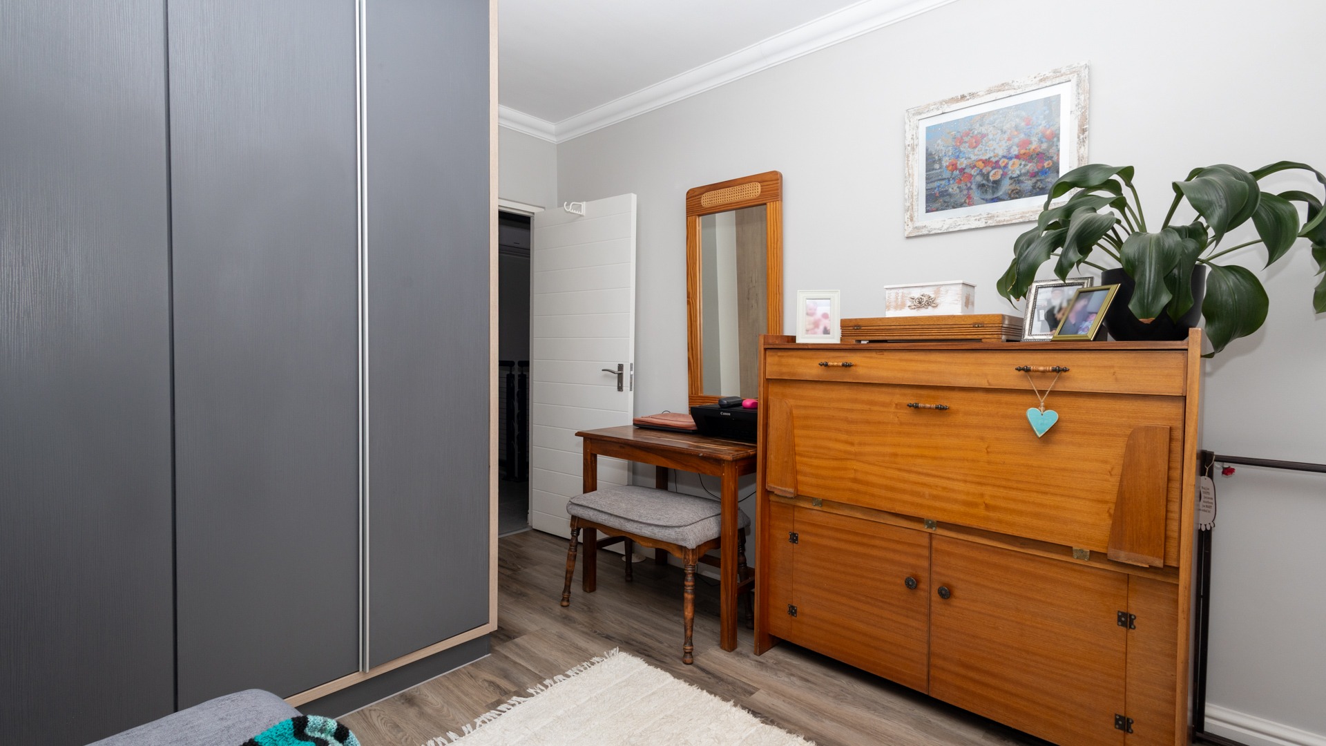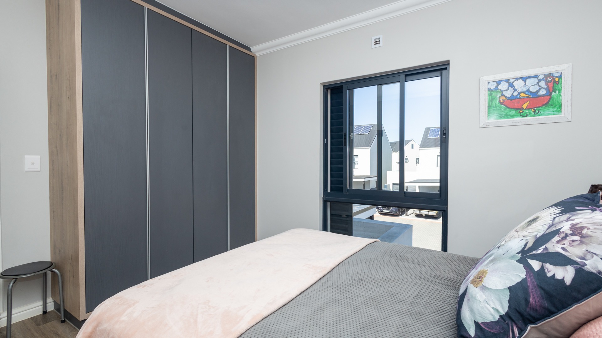 Upstairs, you’ll find two well-appointed bedrooms, both filled with natural light and complete with built-in cupboards.