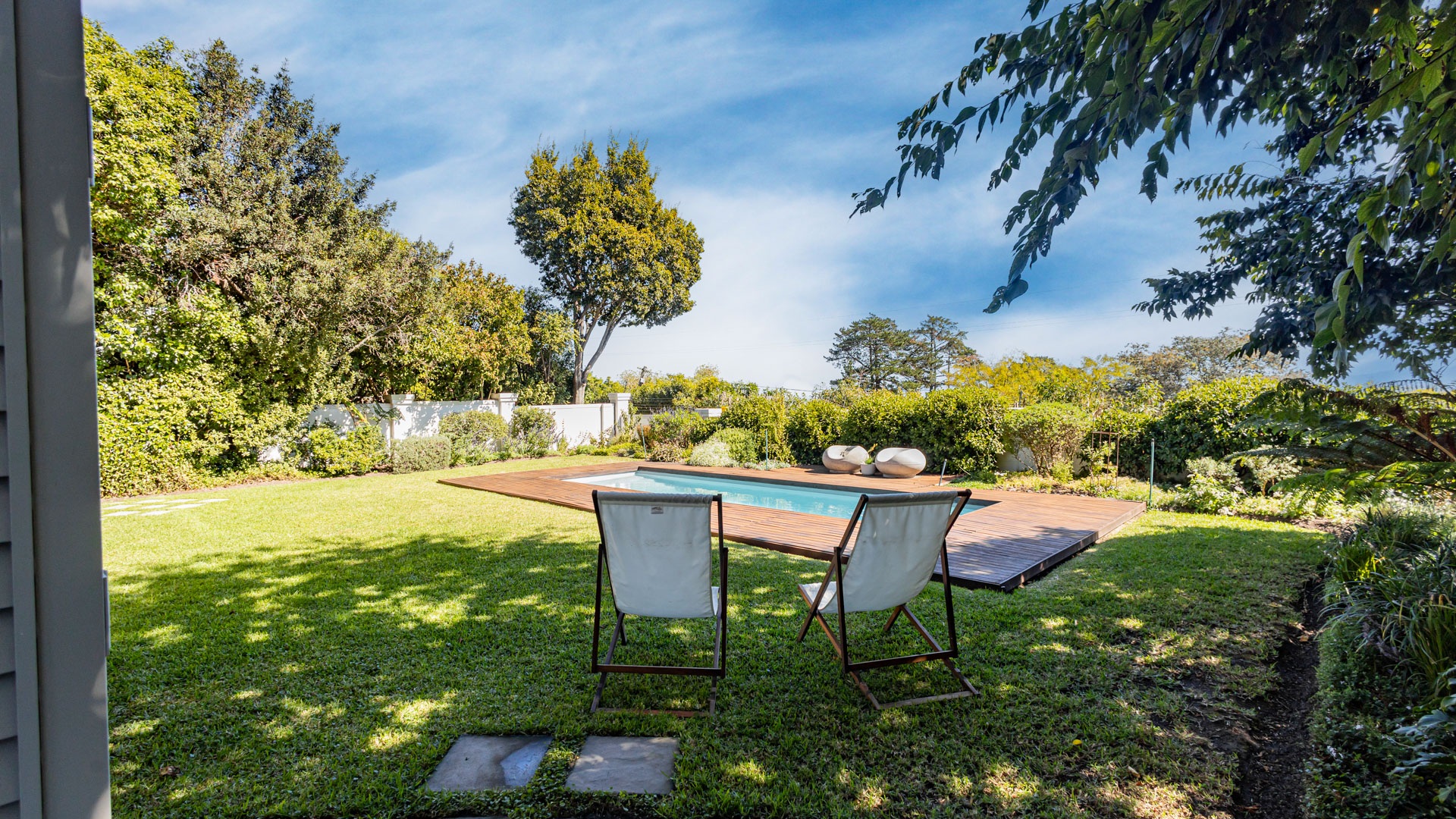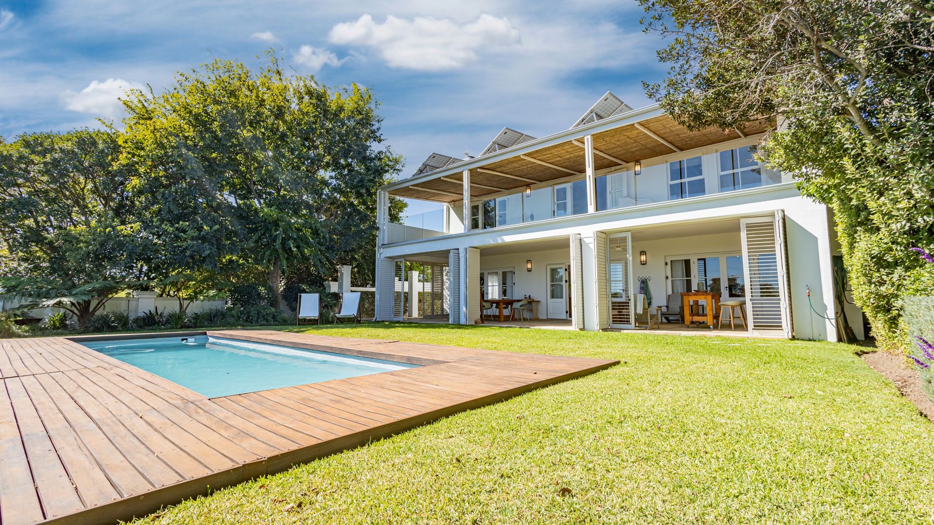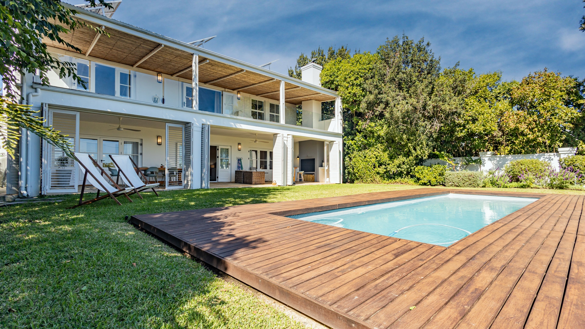 The private garden is neat and peaceful, with two 5000L rainwater tanks and a pressure pump that can be used for irrigation. There is a fully automated irrigation system. The home also comes equipped with solar panels, an inverter and battery – ideal for load-shedding peace of mind.