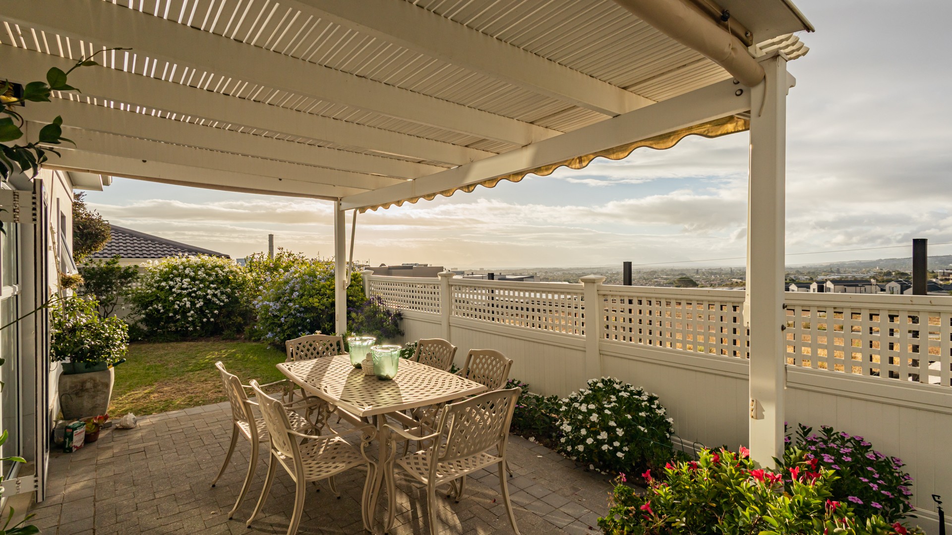 Enjoy relaxed alfresco dining under the pergola, complete with drop-down blinds