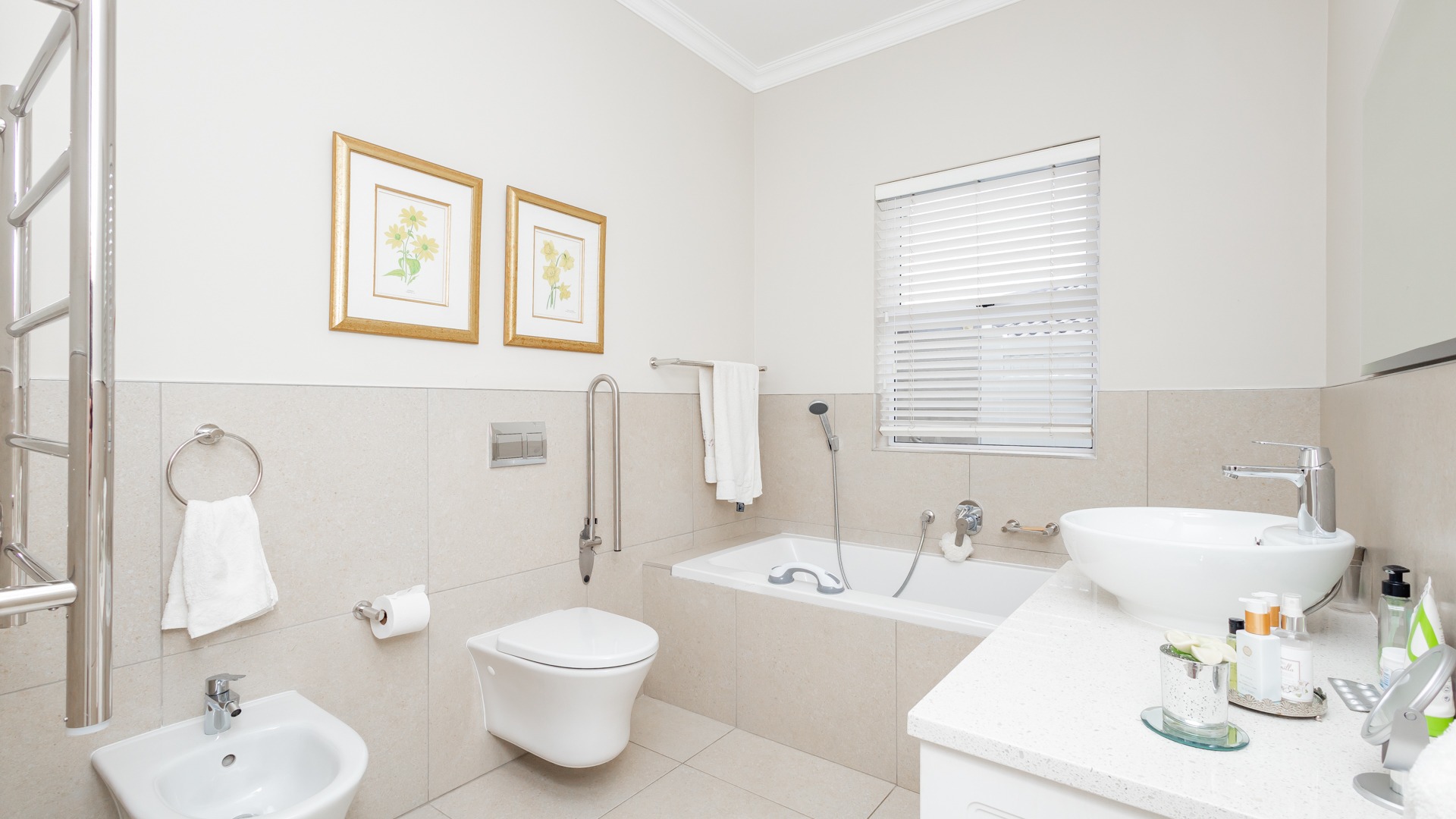 spacious and includes an en-suite bathroom fitted with a bath, bidet, toilet