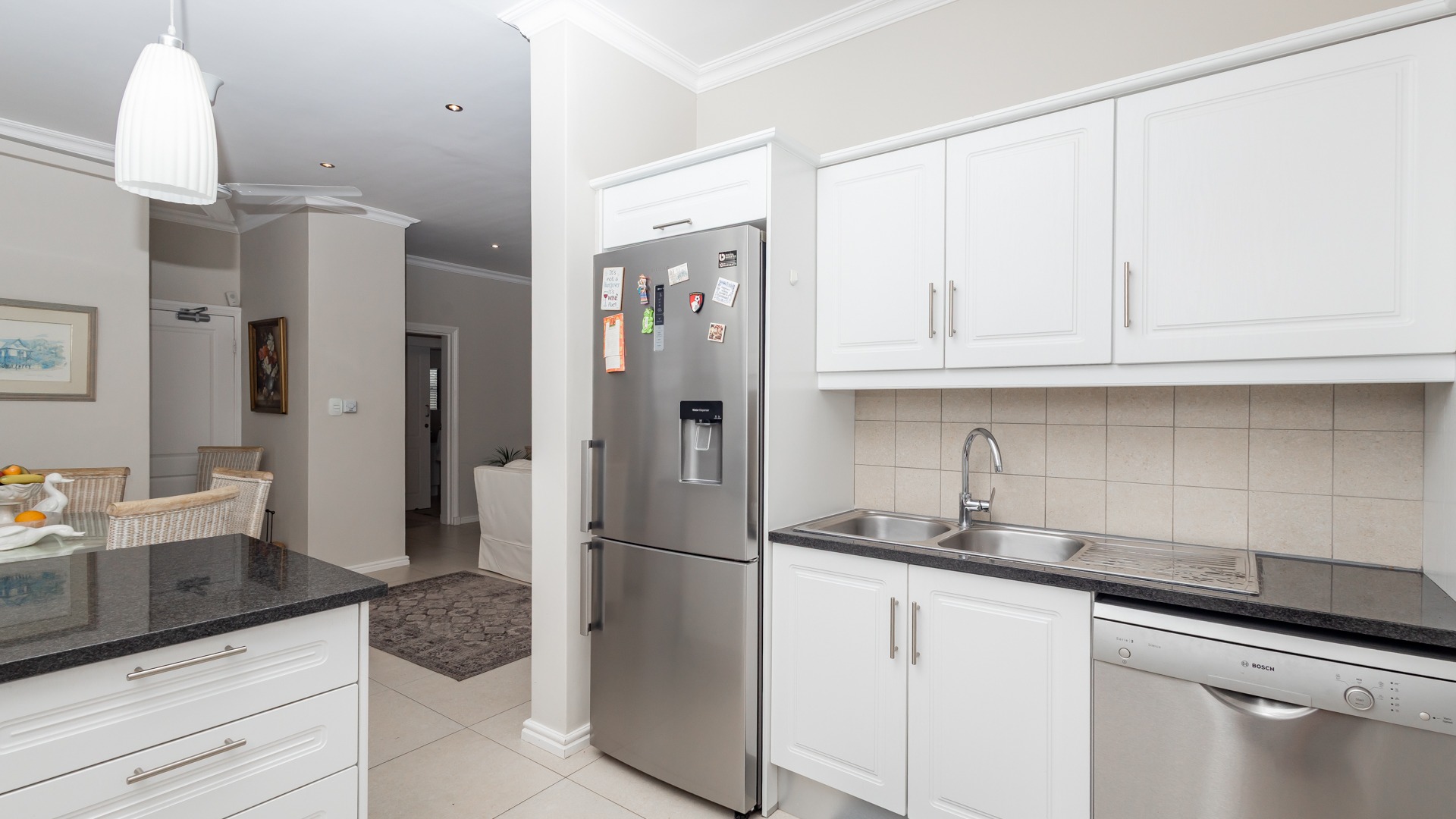 dining area, finished with tiled floors and seamlessly connected to the