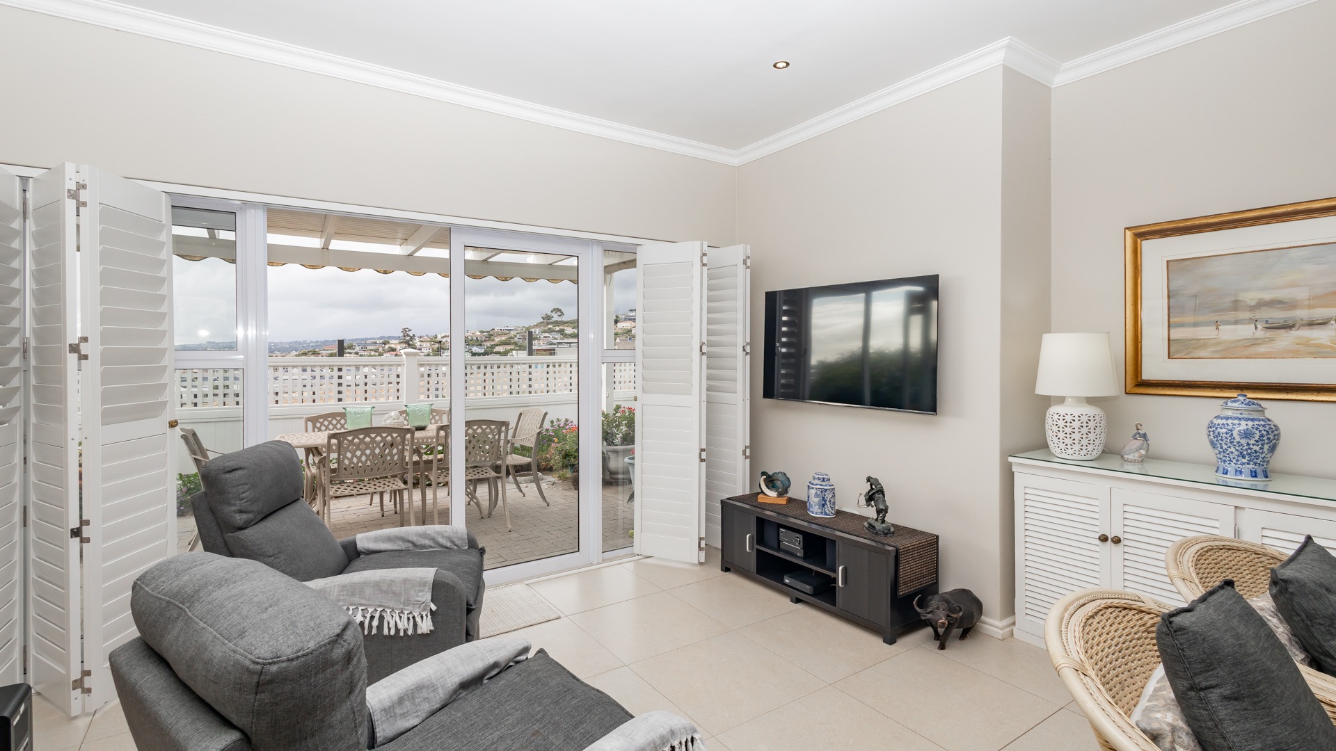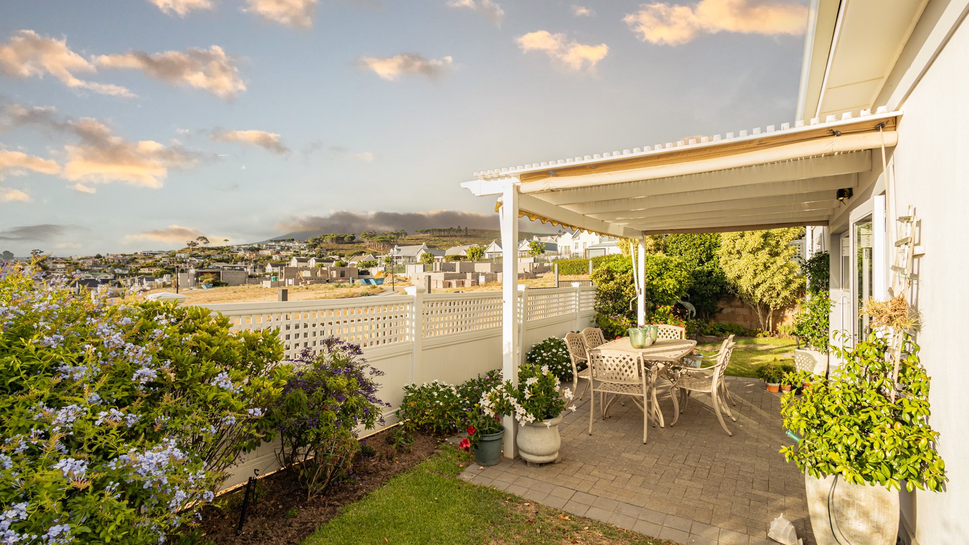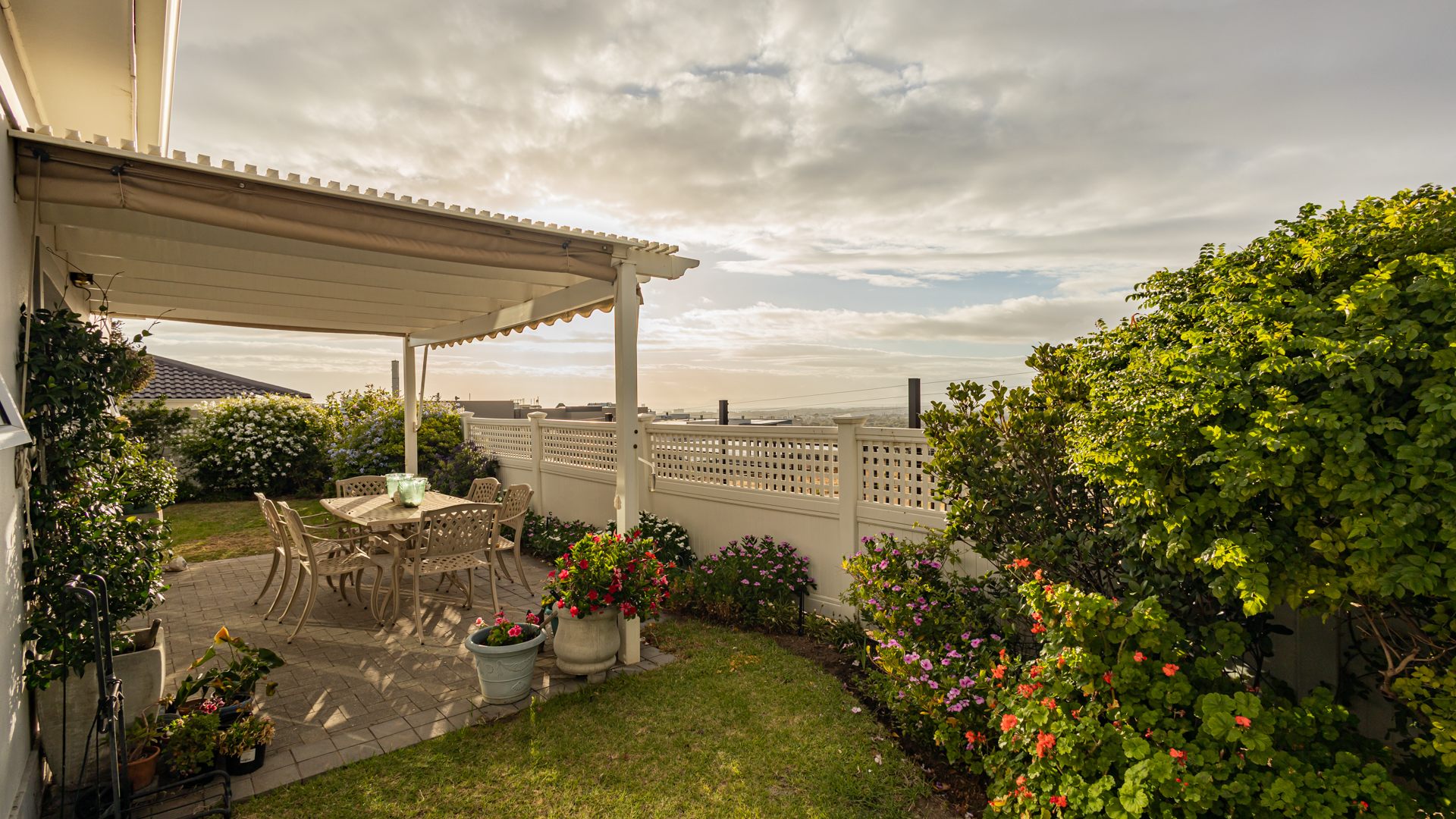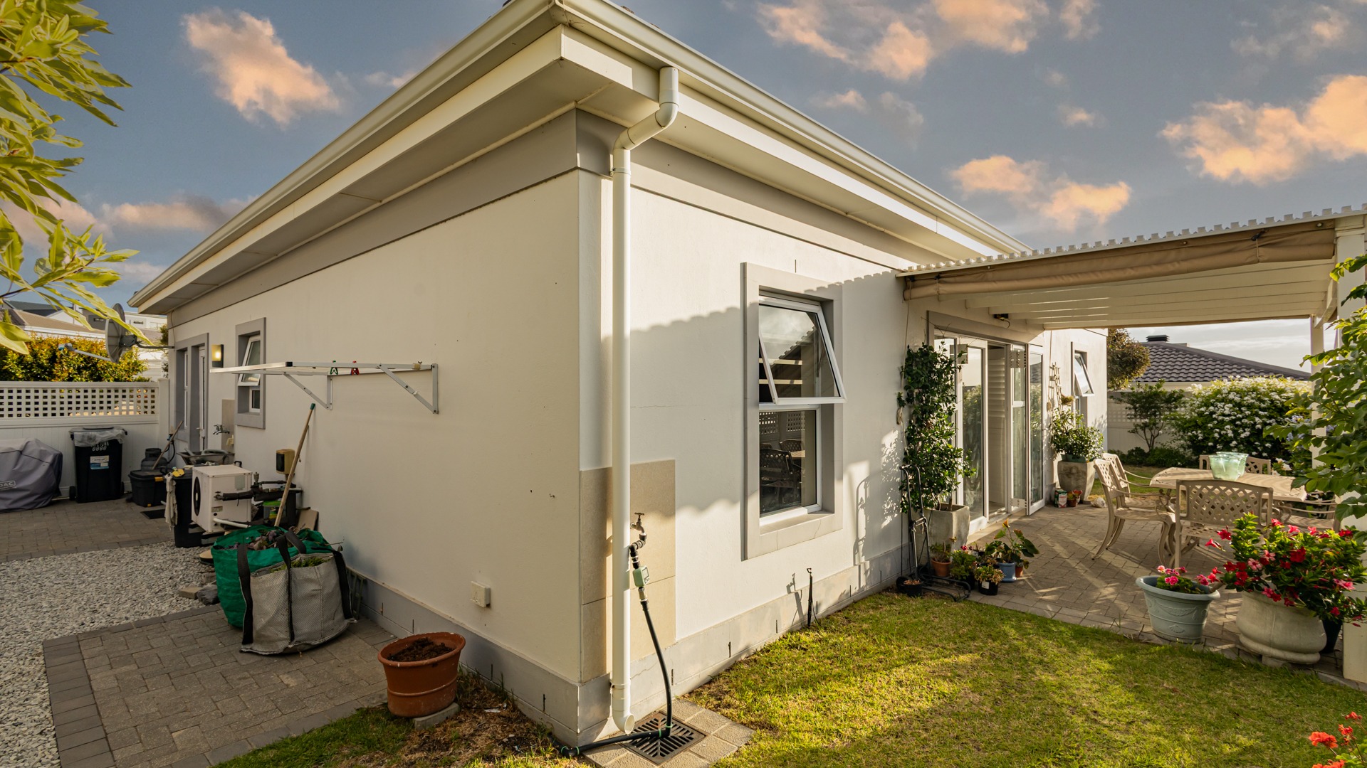Enjoy relaxed alfresco dining under the pergola, complete with drop-down blinds