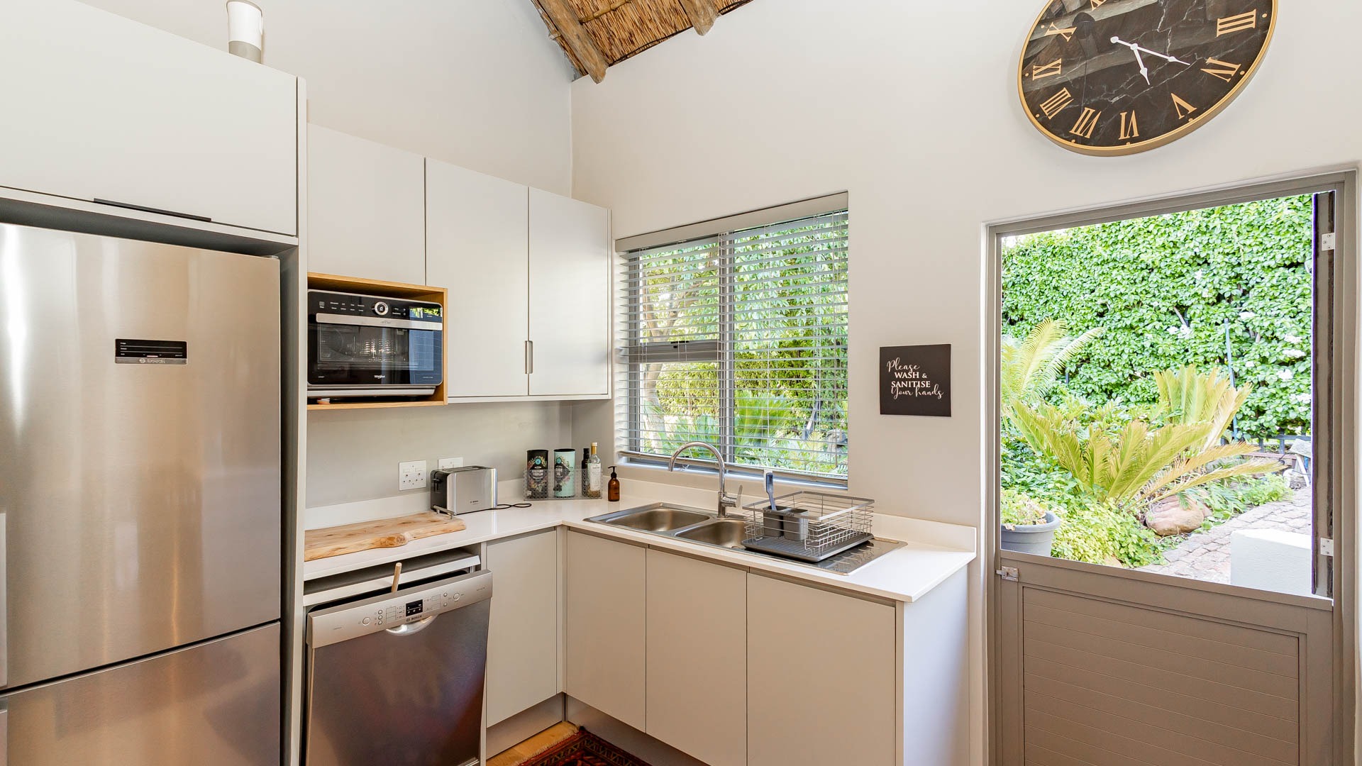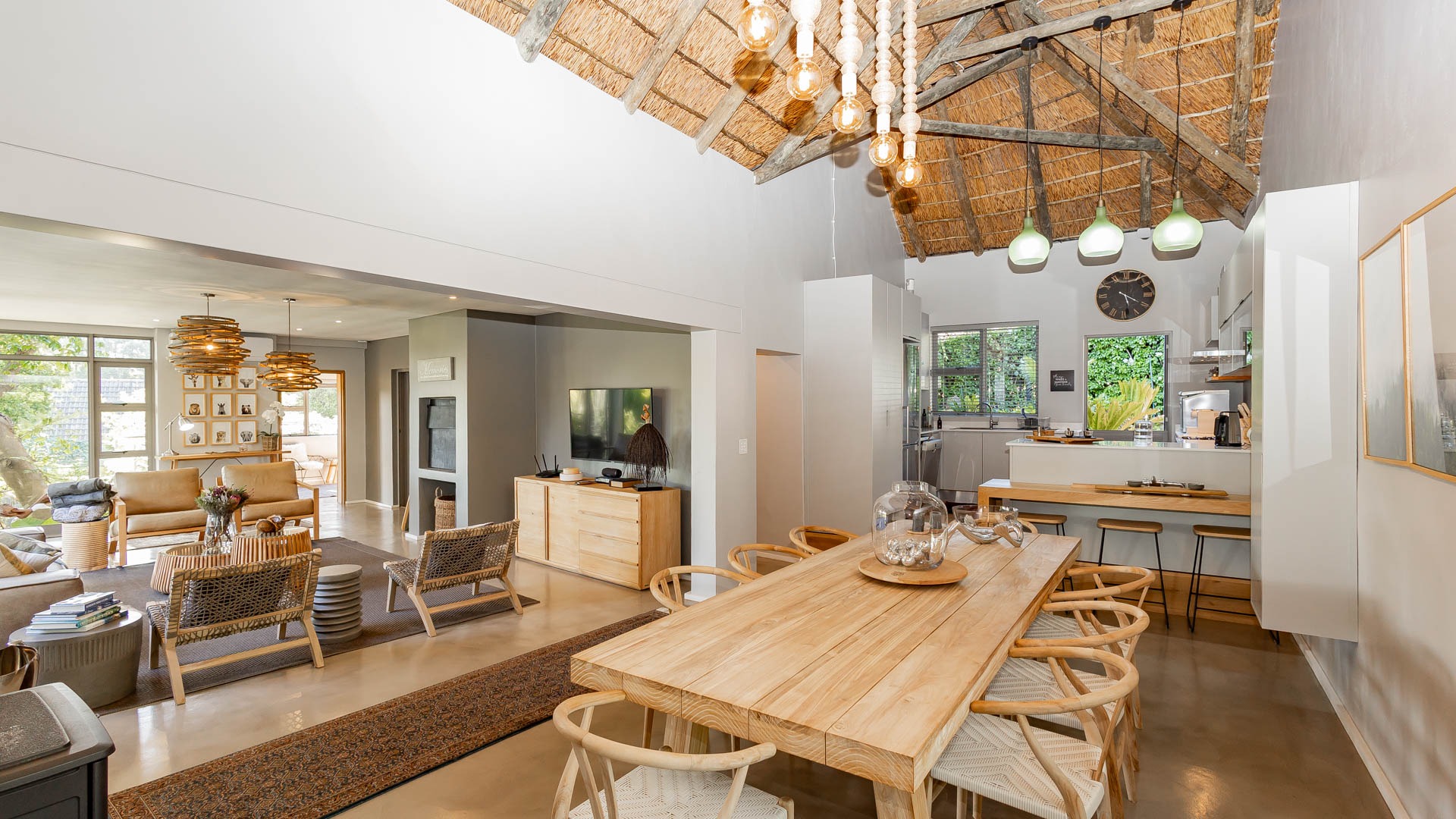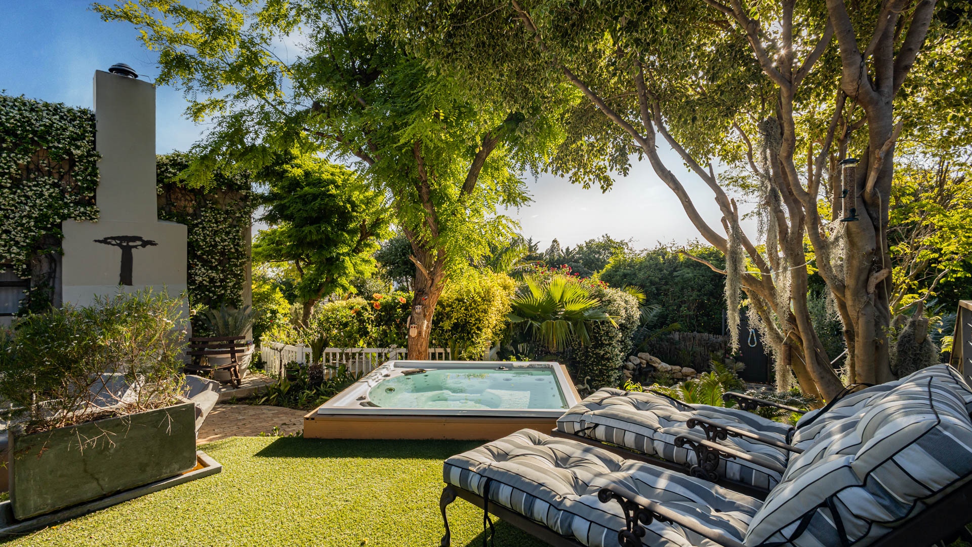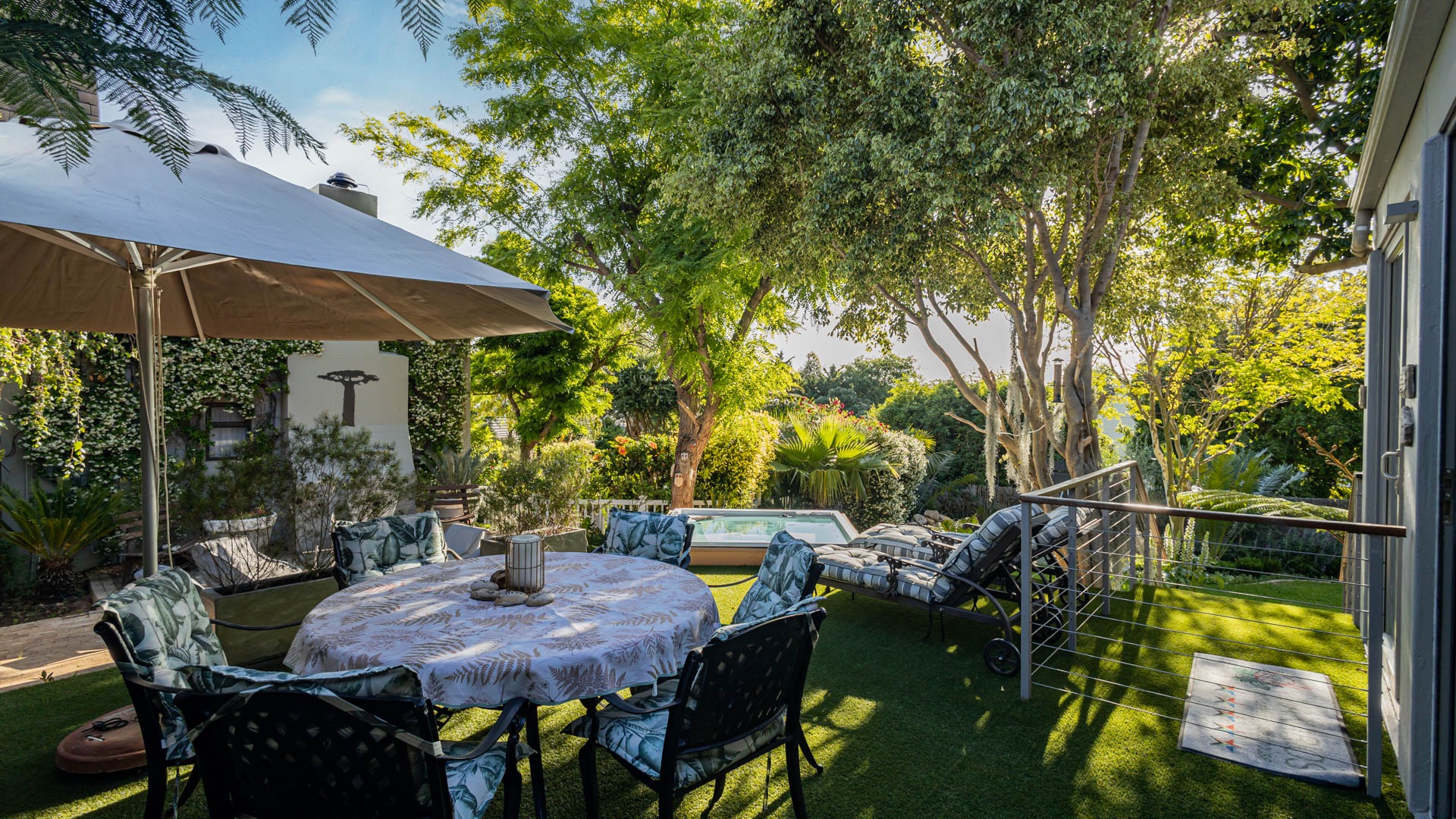 The home includes three en-suite bedrooms, a guest toilet, an open plan living and dining area, an indoor fireplace, an entertainment bar, as well as a separate laundry and scullery. Additional features include an air conditioner, alarm system, sprinkler system, Jacuzzi and its own inverter and battery. This home also has a successful history of high season short term rental income and can be sold fully furnished as shown, making it an easy turnkey investment or ready to move in residence.