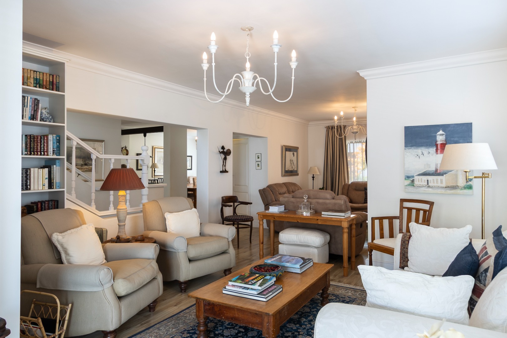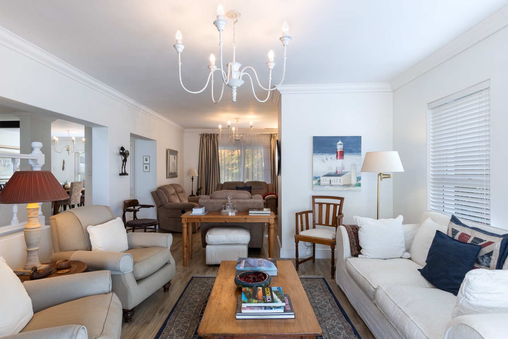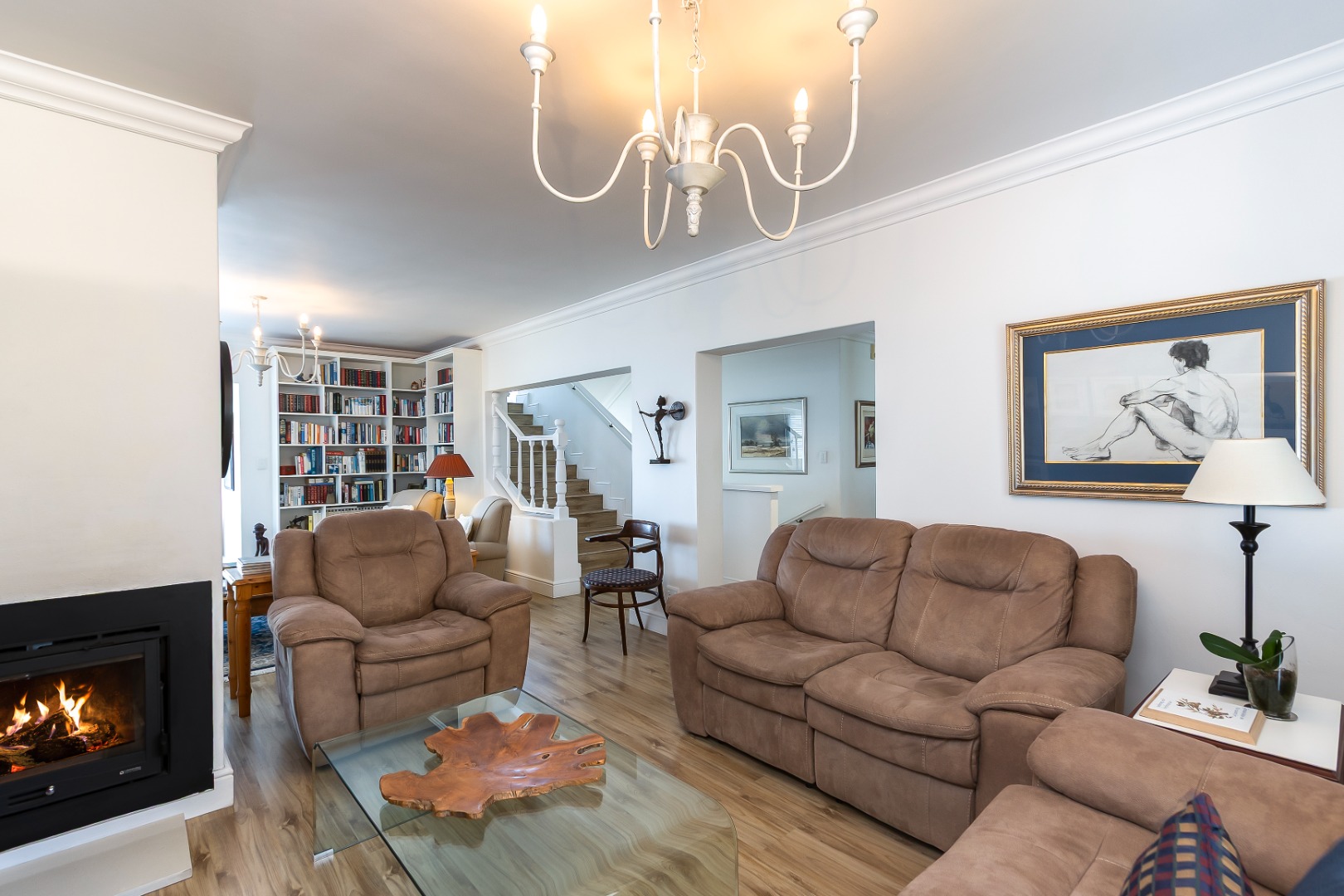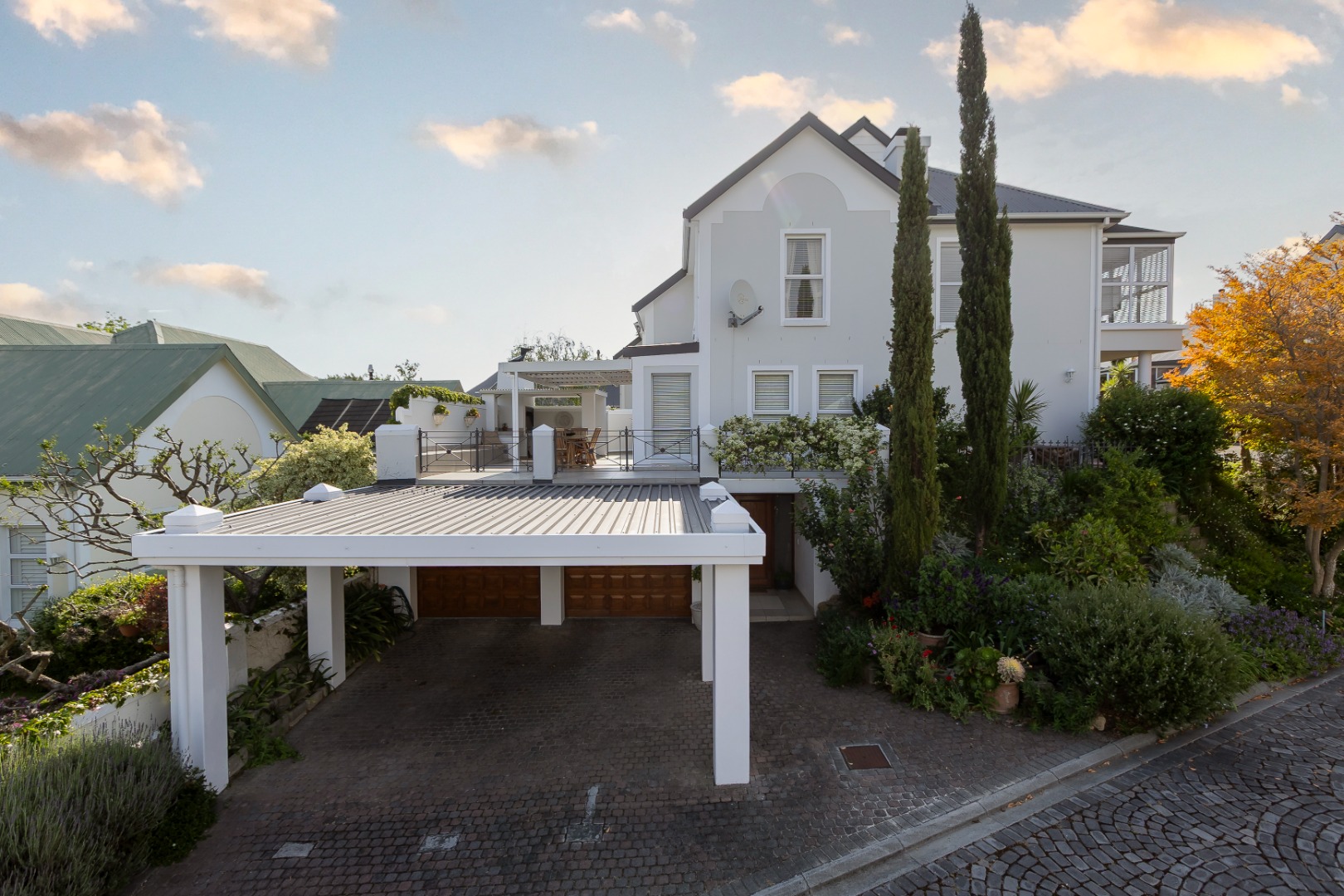 Situated in the middle of popular Bergzicht Estate, this immaculate and renovated north facing home offers 3 spacious bedrooms ( Main en-suite) and 2 bathrooms on the top floor thus allowing magnificent views. The open plan kitchen, lounge with close combustion fireplace, dining area, tv lounge and guest toilet are on the bottom floor. From the very large patio with built in braai, one overlooks Gordon’s Bay and all the mountains to our lovely Helderberg mountain. The double garage and mancave/study (could easily be a tandem garage) plus double carport offer undercover parking for 4 to 6 cars.