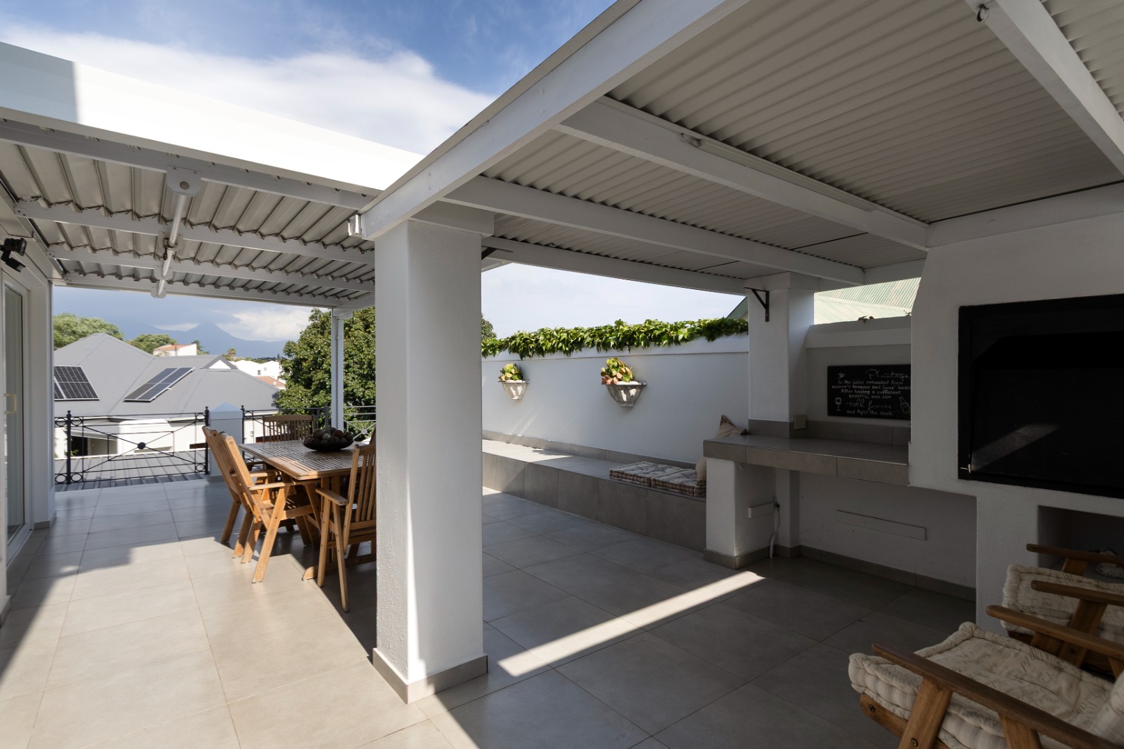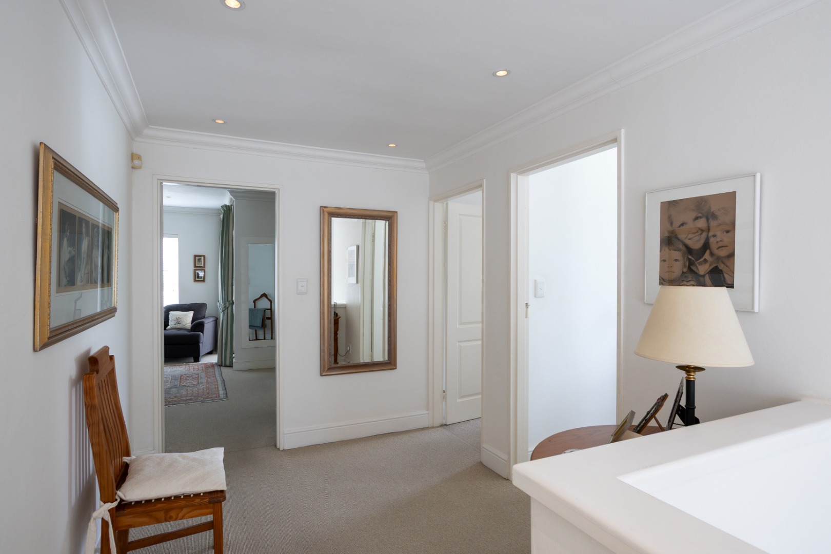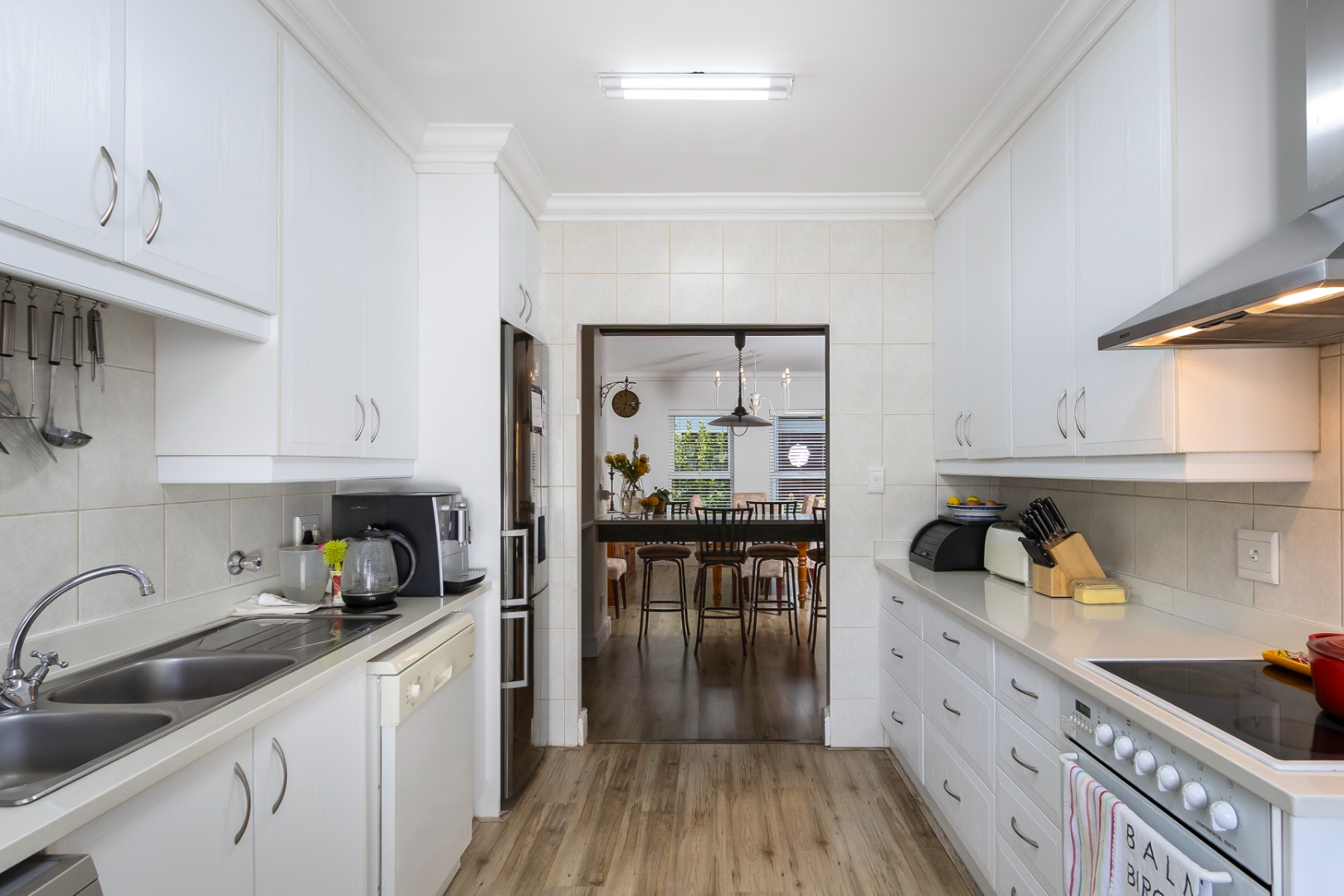 Situated in the middle of popular Bergzicht Estate, this immaculate and renovated north facing home offers 3 spacious bedrooms ( Main en-suite) and 2 bathrooms on the top floor thus allowing magnificent views. The open plan kitchen, lounge with close combustion fireplace, dining area, tv lounge and guest toilet are on the bottom floor. From the very large patio with built in braai, one overlooks Gordon’s Bay and all the mountains to our lovely Helderberg mountain. The double garage and mancave/study (could easily be a tandem garage) plus double carport offer undercover parking for 4 to 6 cars.