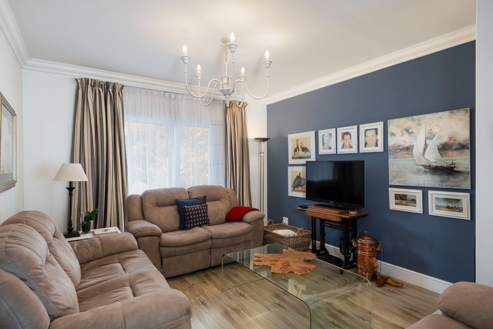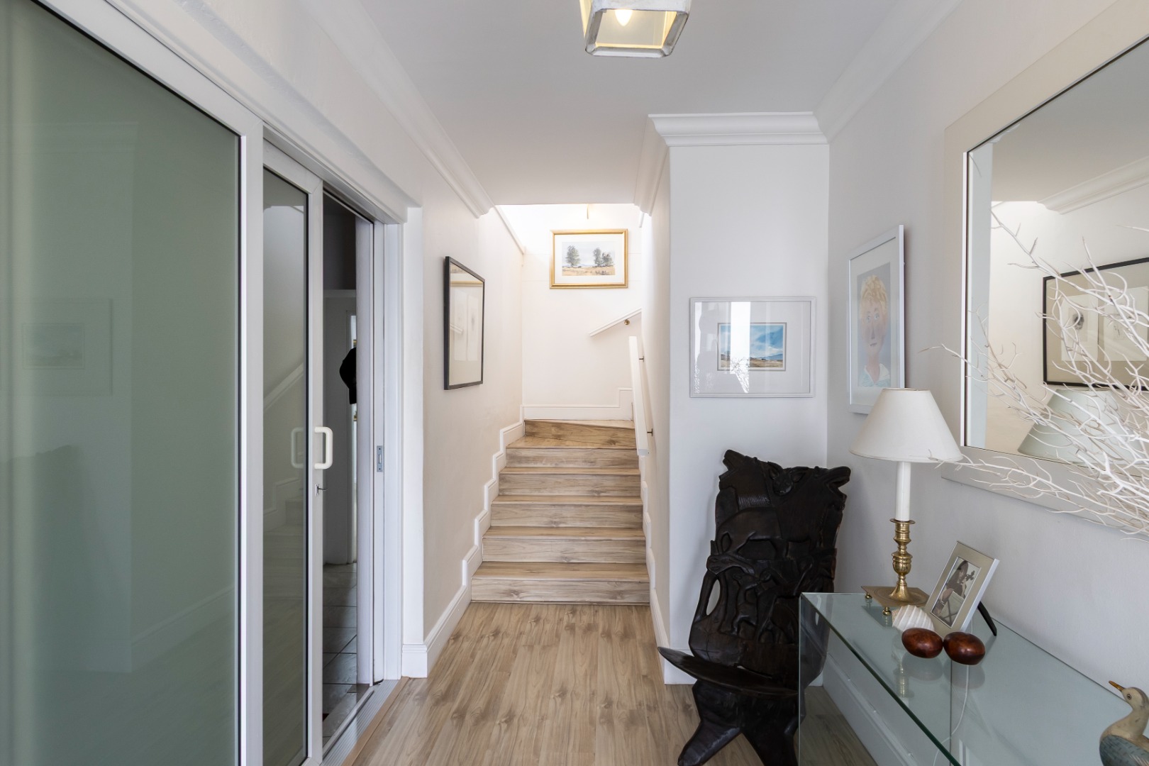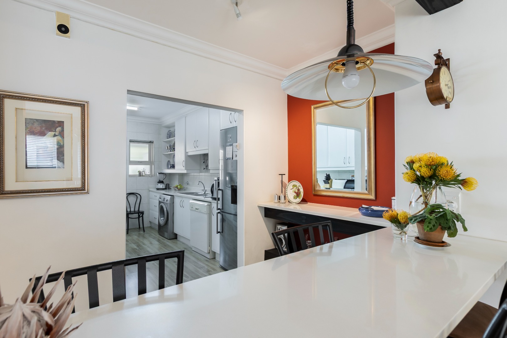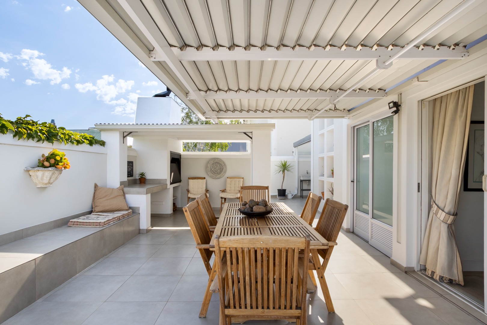 Situated in the middle of popular Bergzicht Estate, this immaculate and renovated north facing home offers 3 spacious bedrooms ( Main en-suite) and 2 bathrooms on the top floor thus allowing magnificent views. The open plan kitchen, lounge with close combustion fireplace, dining area, tv lounge and guest toilet are on the bottom floor. From the very large patio with built in braai, one overlooks Gordon’s Bay and all the mountains to our lovely Helderberg mountain. The double garage and mancave/study (could easily be a tandem garage) plus double carport offer undercover parking for 4 to 6 cars.