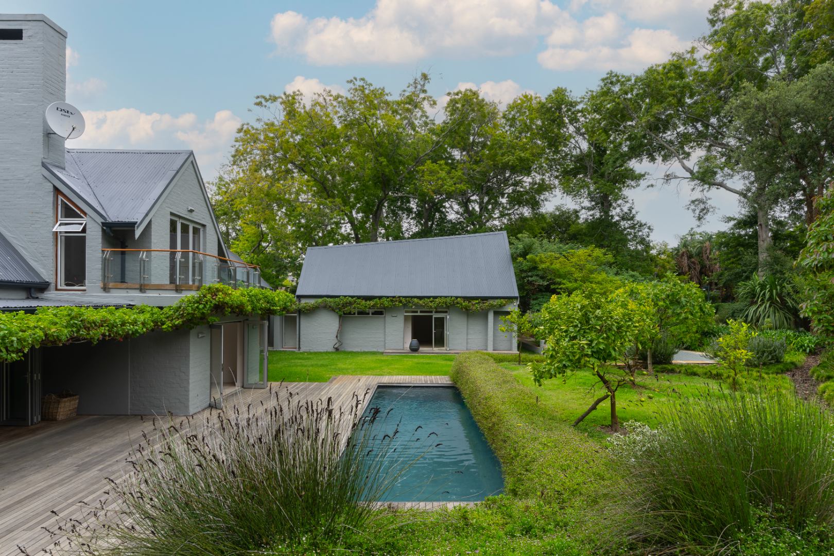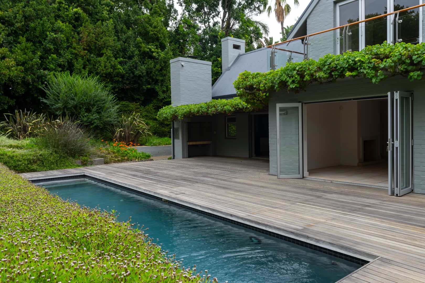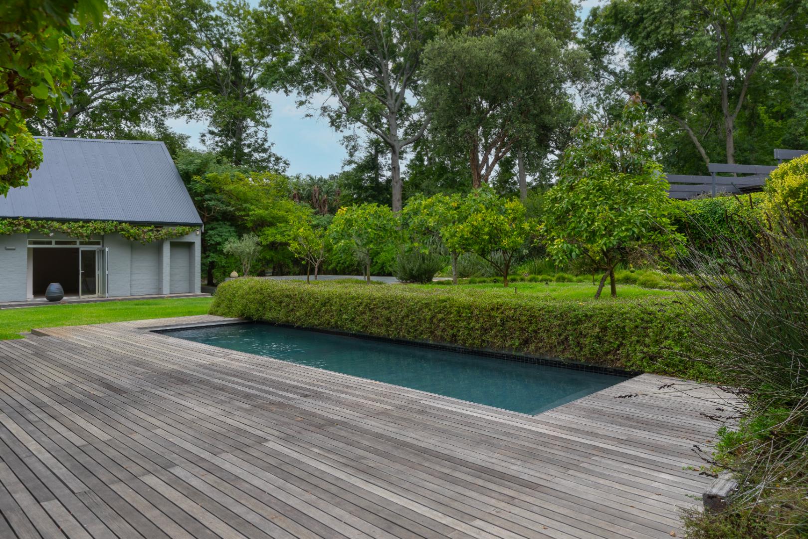 Outdoors, the property continues to impress with a striking 10x3 m charcoal gunite saltwater swimming pool wrapped by a 75 m2 wooden deck, perfectly positioned within the beautifully established and illuminated garden.