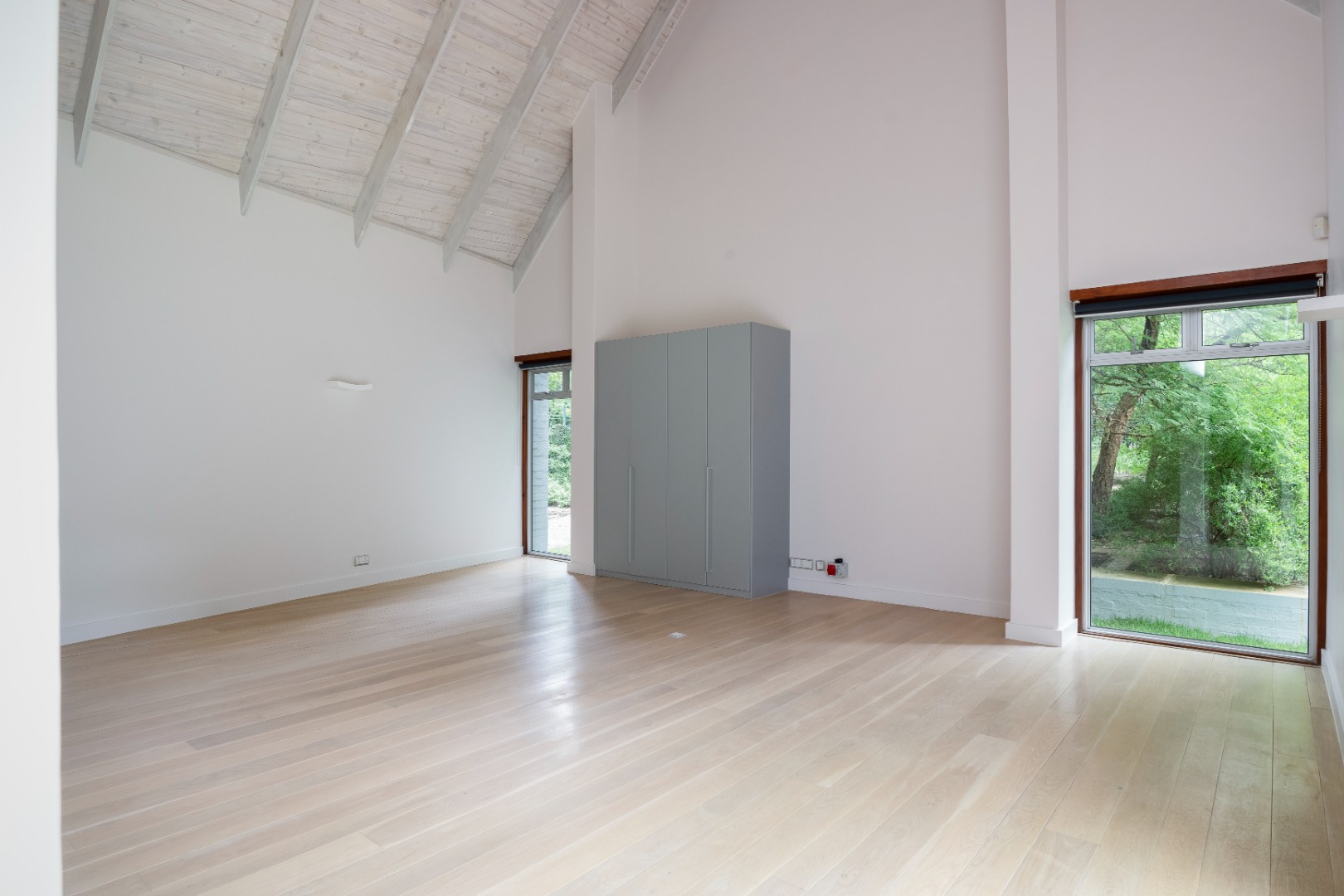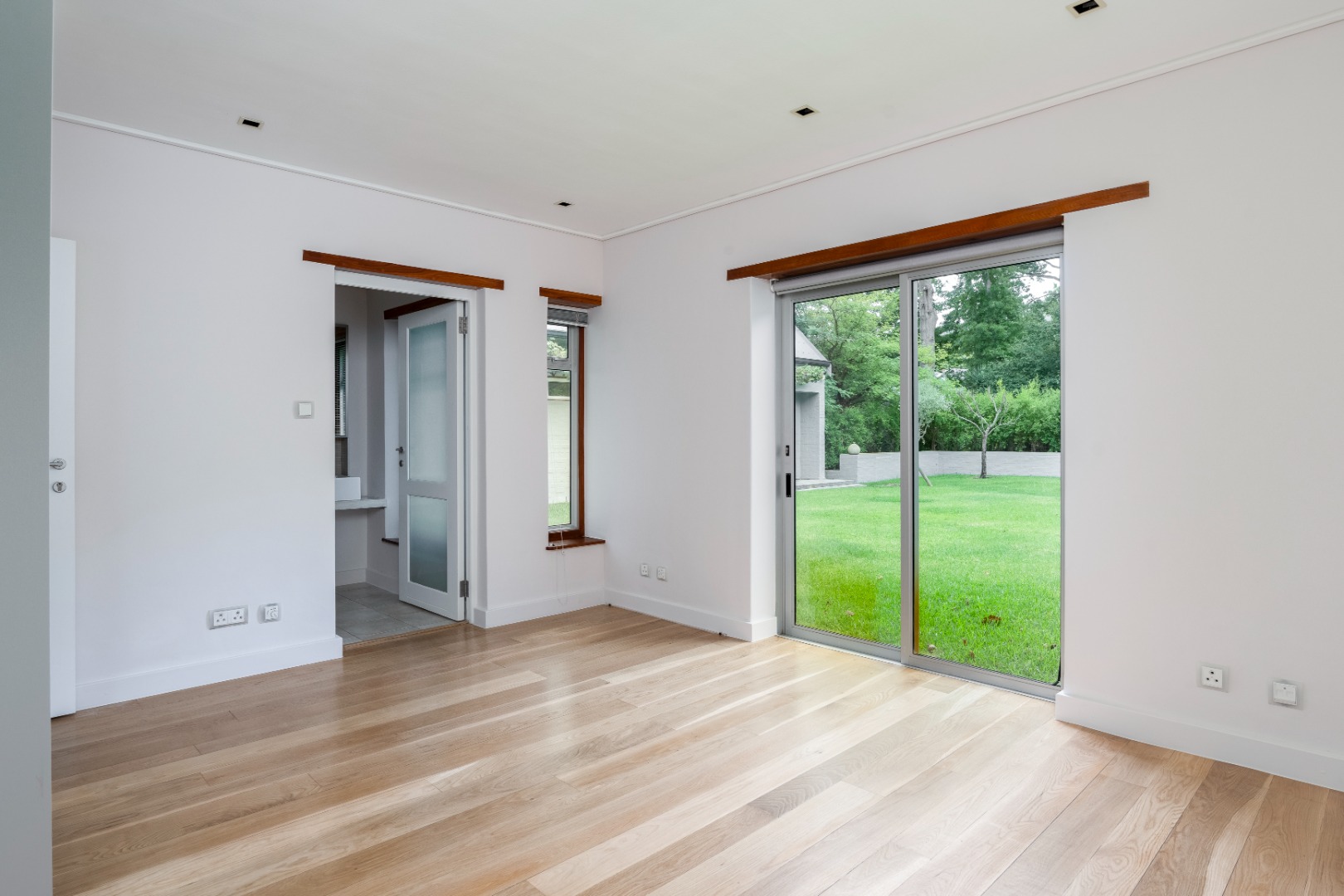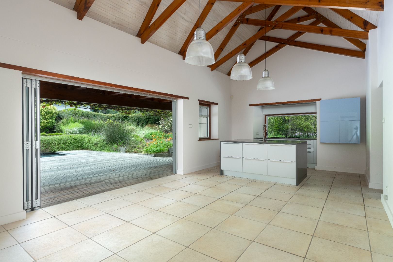 There are three bedrooms located downstairs, all opening directly onto the garden to create seamless indoor-outdoor living. All the wooden floors in the ground floor bedrooms are natural solid European oak and is equipped with underfloor heating. The main bedroom is generously proportioned, complete with a spacious en-suite bathroom. Upstairs, a double loft bedroom with a private balcony provides additional accommodation or an ideal work-from-home or guest suite option equipped with two air-conditioning units. The home offers a total of 3.5 bathrooms, all en-suite, as well as a guest toilet. All the wardrobes, kitchen and scullery cupboards are imported from Italy and there are blinds and Oregon pine shutters throughout the house.