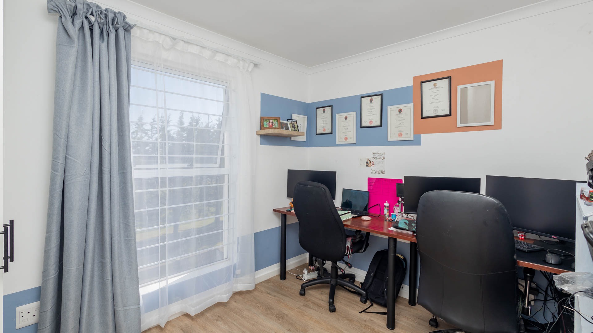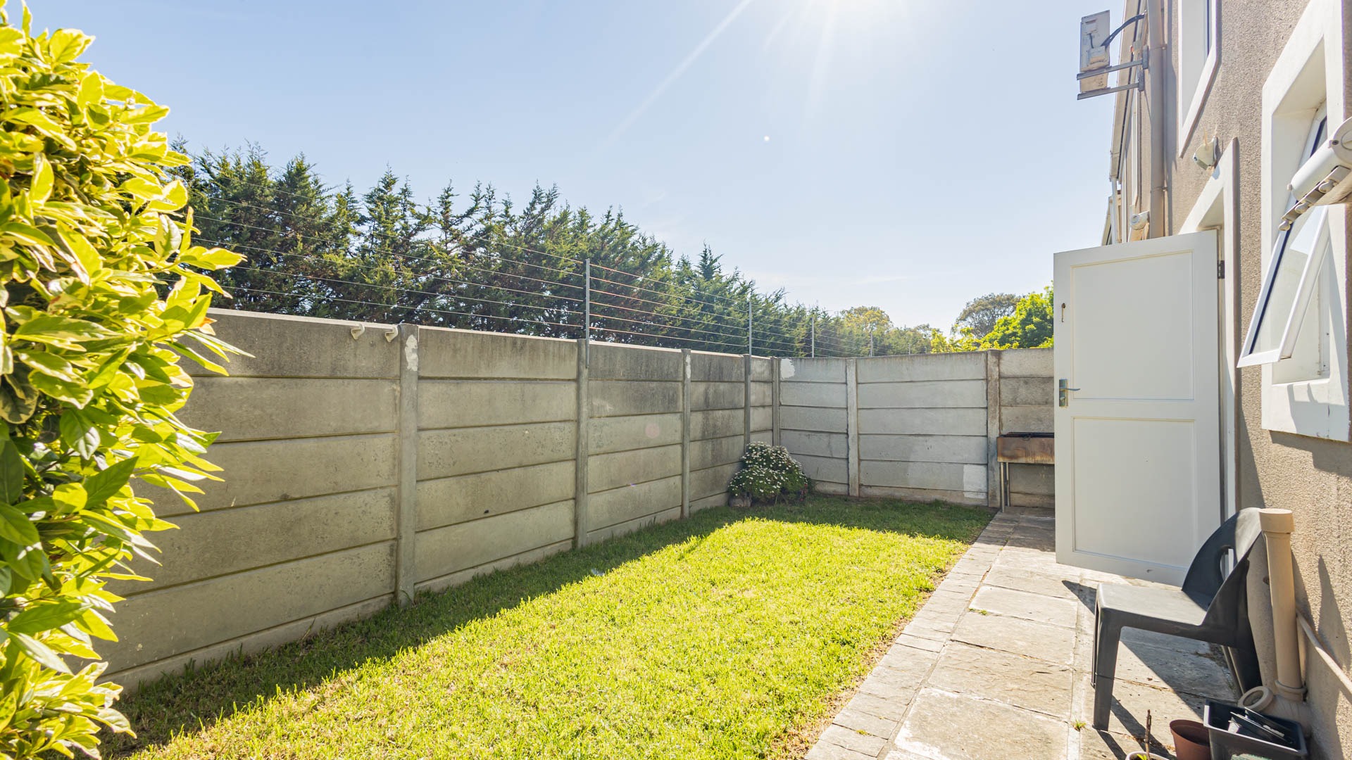 Security and sustainability are key features of this property. Situated within a gated community with an access gate and electric fencing, residents benefit from enhanced peace of mind. Additional security measures include burglar bars and security gates. The home is equipped with a battery inverter and solar panels, contributing to energy efficiency and reduced utility costs. Fibre connectivity ensures high-speed internet access.