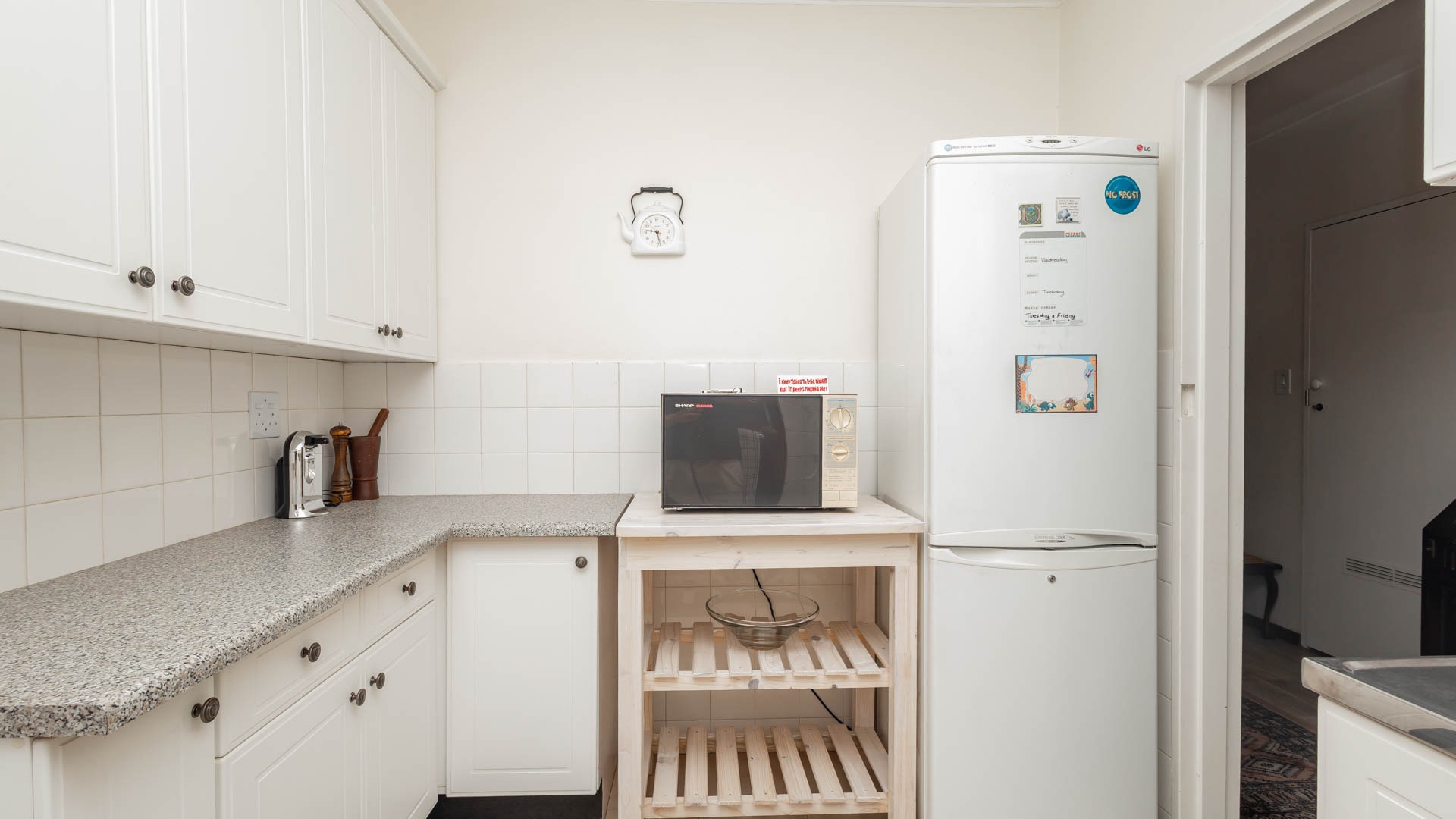 Step inside to discover a spacious open-plan living and dining area, perfect for everyday comfort and entertaining. Large glass doors flood the space with natural light and provide direct access to your garden, creating a lovely indoor-outdoor flow. The kitchen, while compact, is super functional with bright white cabinetry, ample storage, and good counter space, making meal prep a breeze. There's also a convenient guest toilet downstairs.