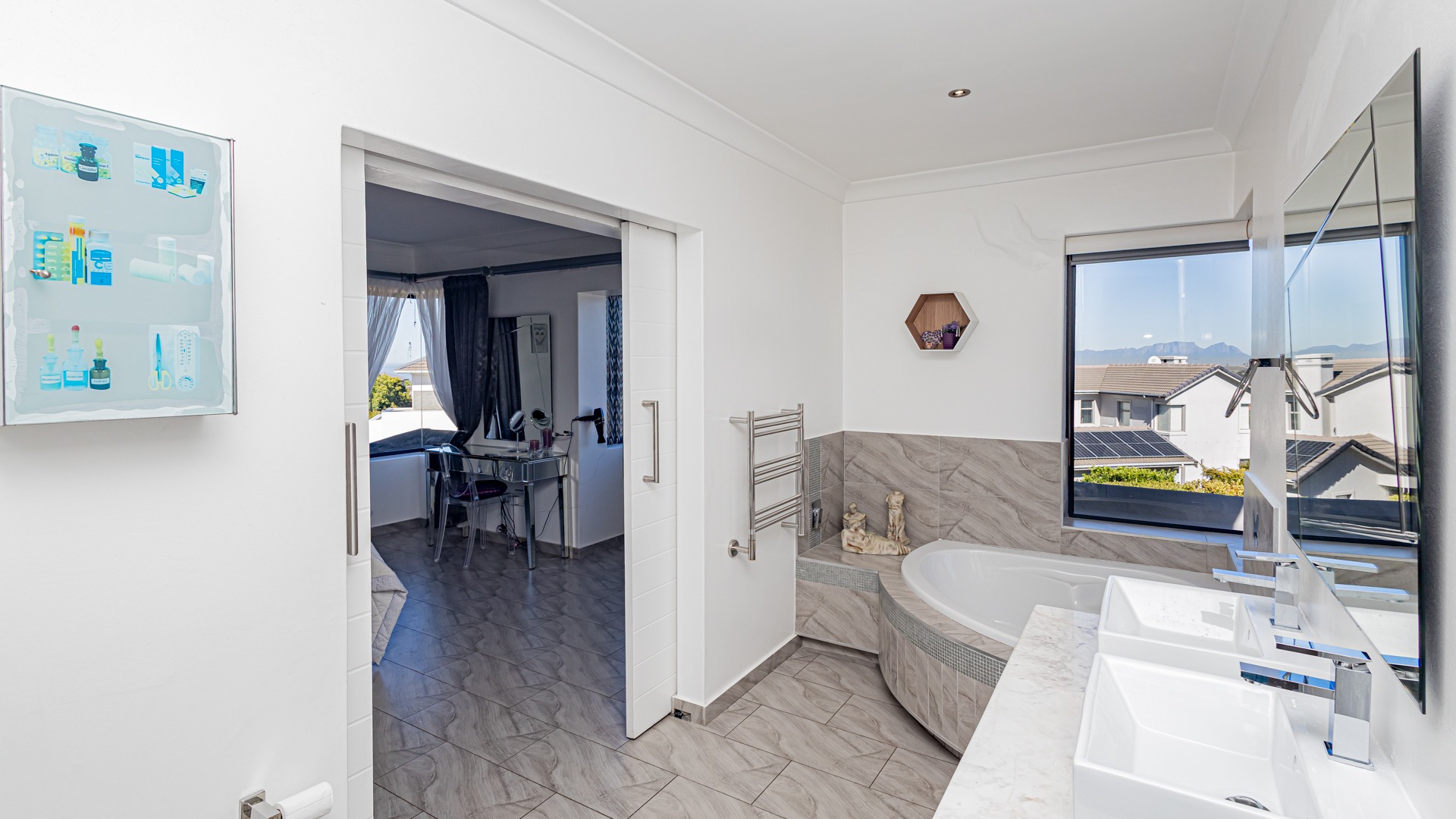 Situated in Vredenburg Gated Estate, this family home boasts four large bedrooms and four and a half bathrooms, three of the bedrooms are en-suite. The master suite has a walk-in closet.
