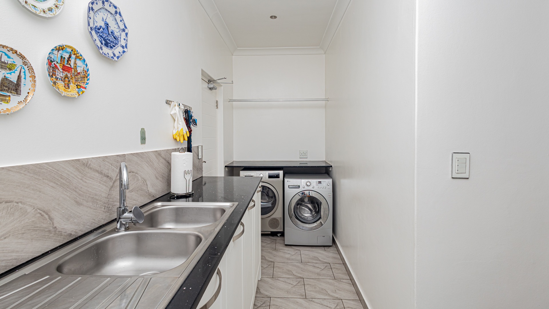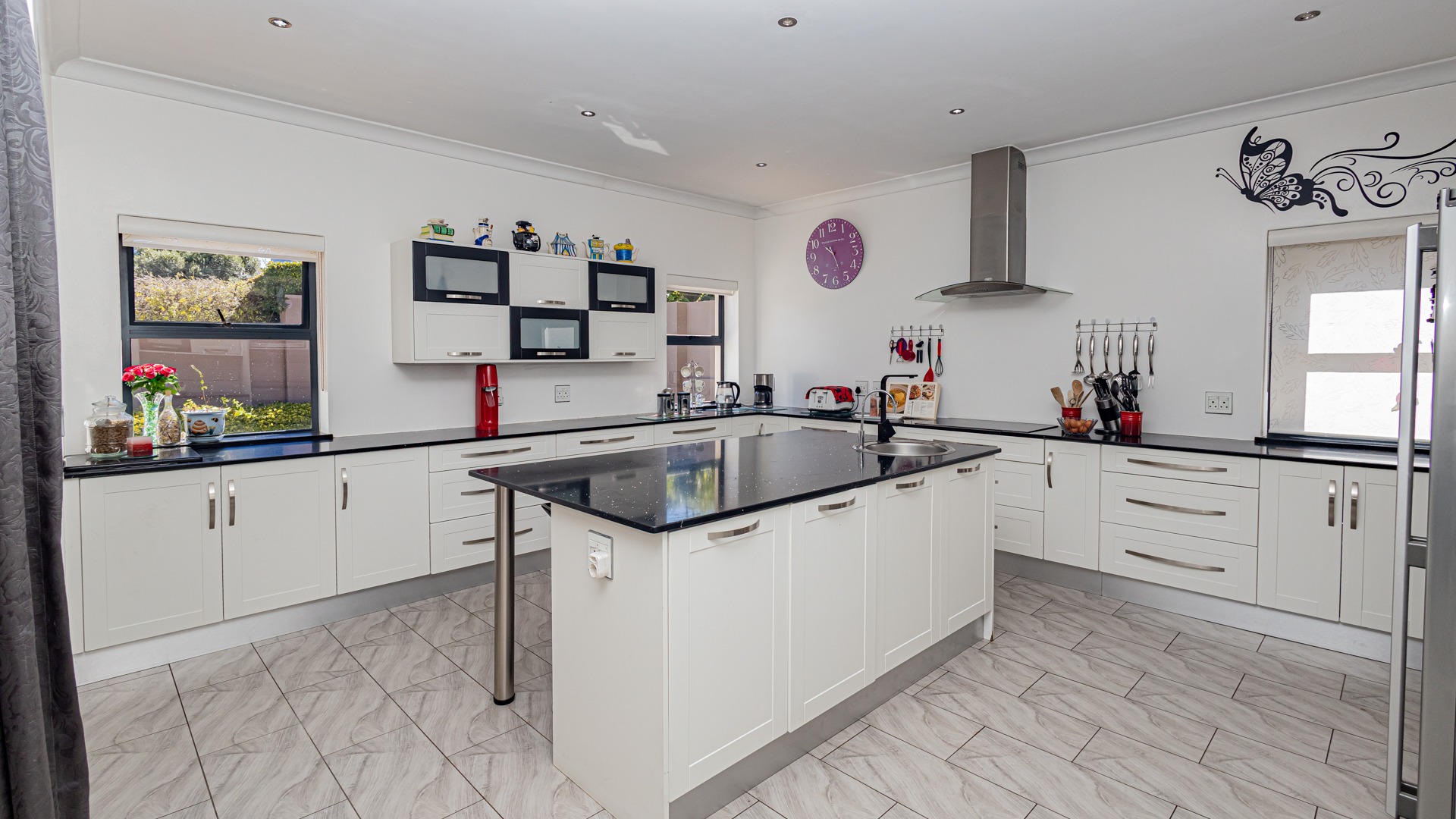 Lovely large modern kitchen with ample cupboards and counter space with a large island in the middle, it also has a walk-in pantry, separate scullery that has place for a dishwasher and a laundry area that can accommodate both a washer and dryer.
