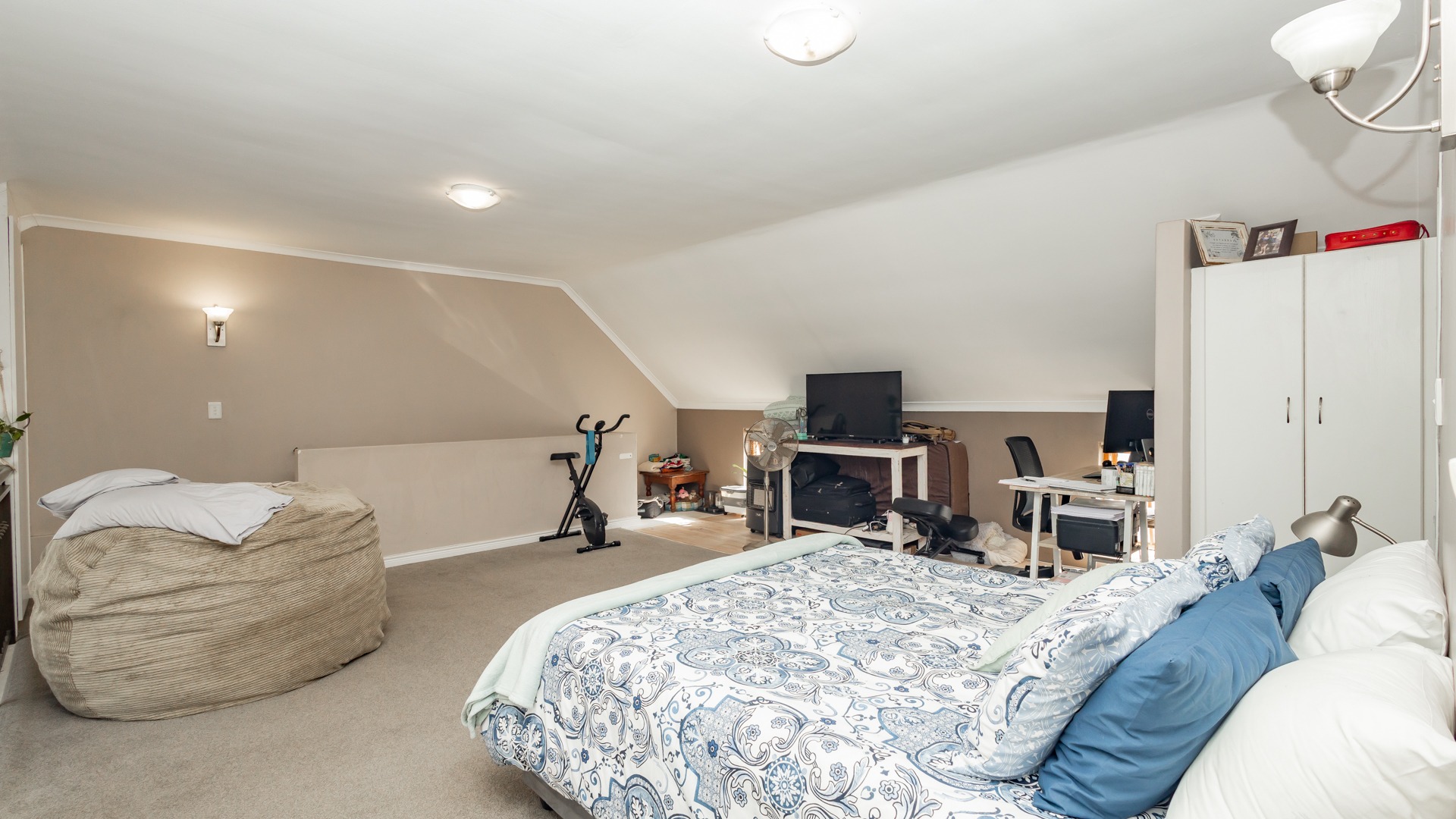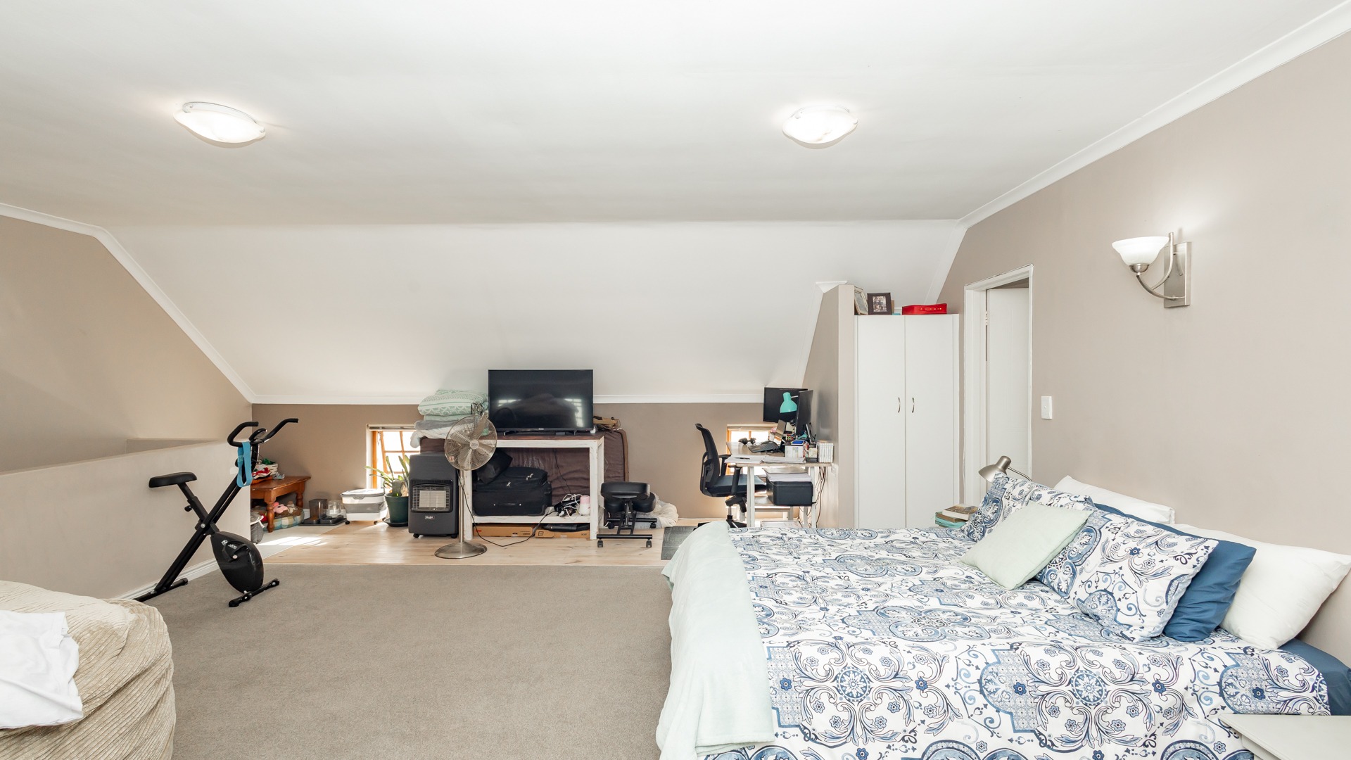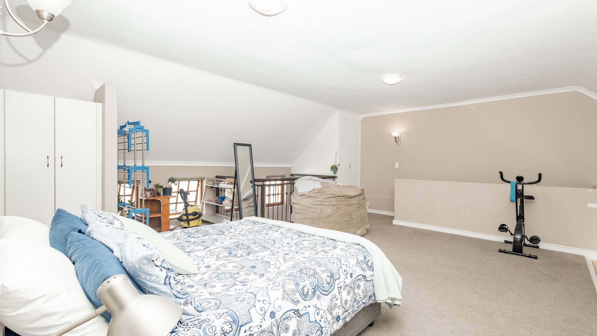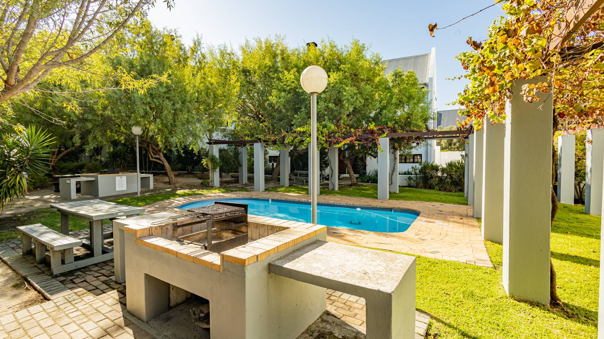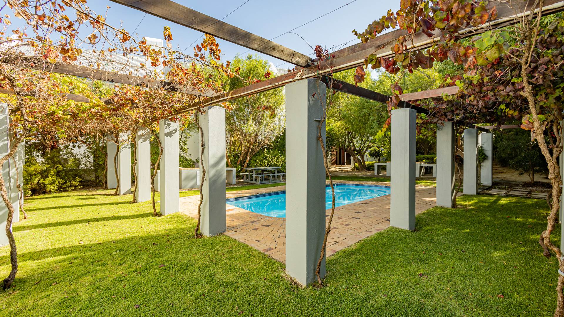 Discover contemporary living within the secure De Wijnlanden Residential Estate, nestled in the picturesque Stellenbosch Winelands. This inviting 120 sqm home offers a seamless open-plan design, integrating a modern kitchen, dining area, and comfortable lounge. The kitchen boasts sleek white cabinetry, a tiled backsplash, an island with bar seating, an integrated wine rack, and a gas stove, perfect for culinary enthusiasts. The living area features a cozy fireplace and unique exposed wooden beam ceilings, creating an appealing ambiance, complemented by durable tiled flooring throughout. The residence comprises two well-appointed bedrooms and two bathrooms, including a convenient en-suite. A highlight is the spacious, open-plan loft area, offering versatile space for a bedroom, home office, or personal gym, complete with its own en-suite bathroom. This adaptable layout caters to various lifestyle needs, providing both comfort and functionality. Step outside to enjoy the established garden and a clean rectangular swimming pool, ideal for relaxation. A vine-covered pergola provides shaded outdoor space, alongside a dedicated communal braai and picnic area, perfect for entertaining. The property is pet-friendly and offers scenic views, enhancing the outdoor living experience. Security is paramount within this gated community and security complex, featuring an access gate, electric fencing, security gate, and burglar bars for peace of mind. Modern conveniences include a battery inverter for uninterrupted power supply and fibre connectivity, ensuring a connected and efficient lifestyle. Located in the renowned Stellenbosch Winelands, De Wijnlanden Residential Estate offers a desirable lifestyle. Its proximity also makes it suitable for student accommodation, combining estate living with accessibility. Key Features: * Open-plan living with modern kitchen * 2 Bedrooms, 2 Bathrooms (1 en-suite) * Spacious loft area * Private swimming pool and garden * Communal braai and picnic area * Battery inverter and fibre connectivity * Secure gated community * Pet-friendly with scenic views * Fireplace