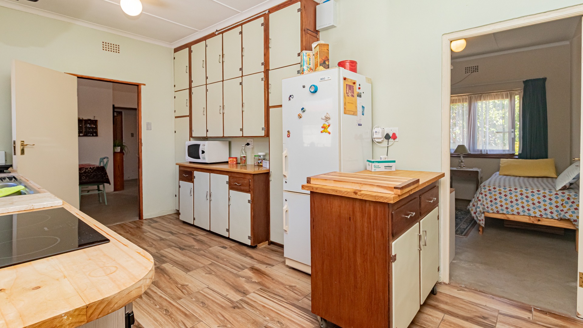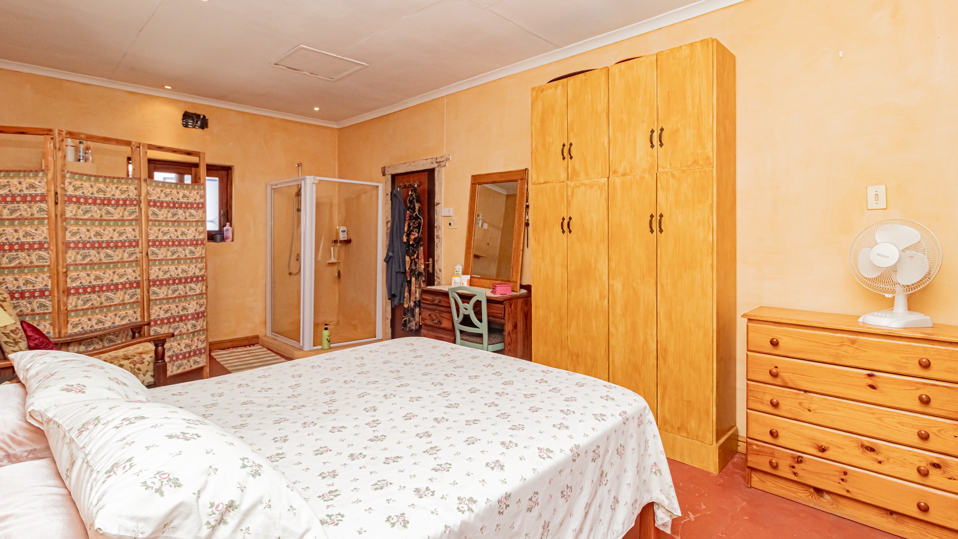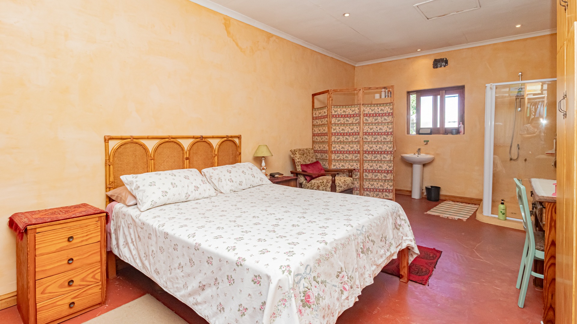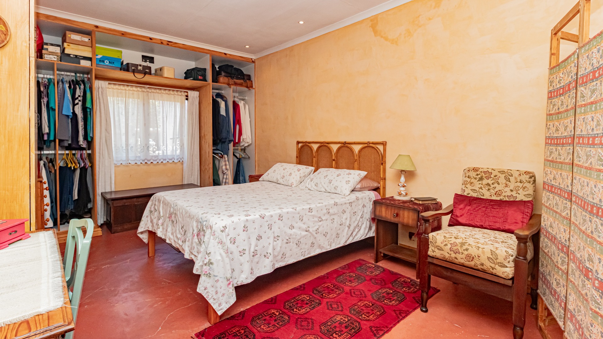 Outdoors, a triple garage provides secure parking and storage. The property boasts a garden, staff quarters, and outside toilet, enhancing functionality. Pets are welcome. Security is addressed with a fence, burglar bars, and a security gate, while fibre connectivity supports modern living. Enjoy scenic views.
