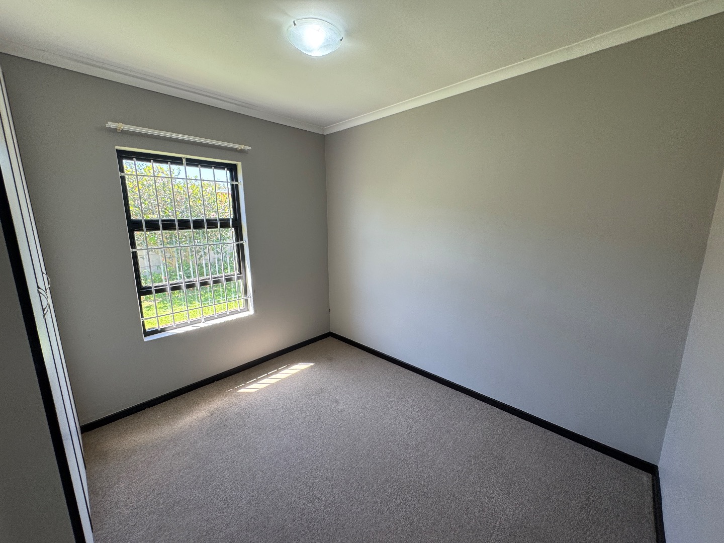 The home features three bedrooms, two bathrooms, a welcoming living and dining area, and an open-plan kitchen that flows seamlessly onto a covered patio with a built-in braai—perfect for entertaining family and friends. The main bedroom includes an en-suite bathroom with a shower, toilet, and basin, while the remaining bedrooms share a second bathroom.