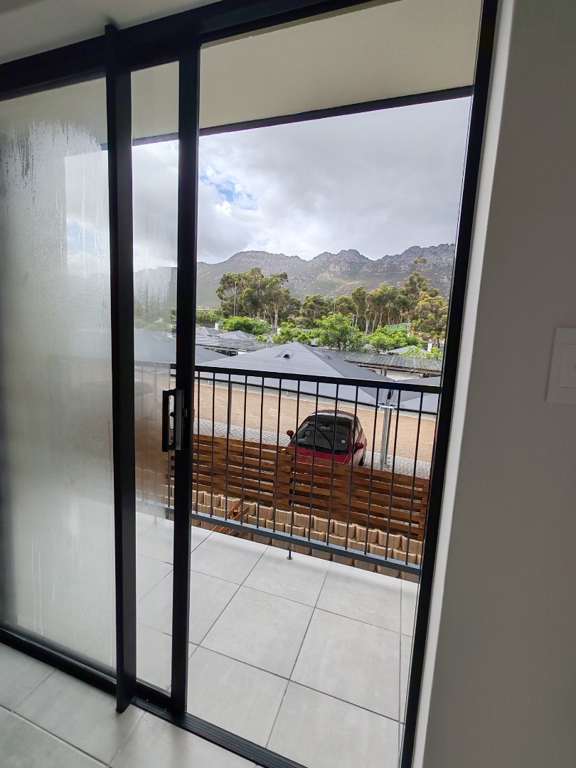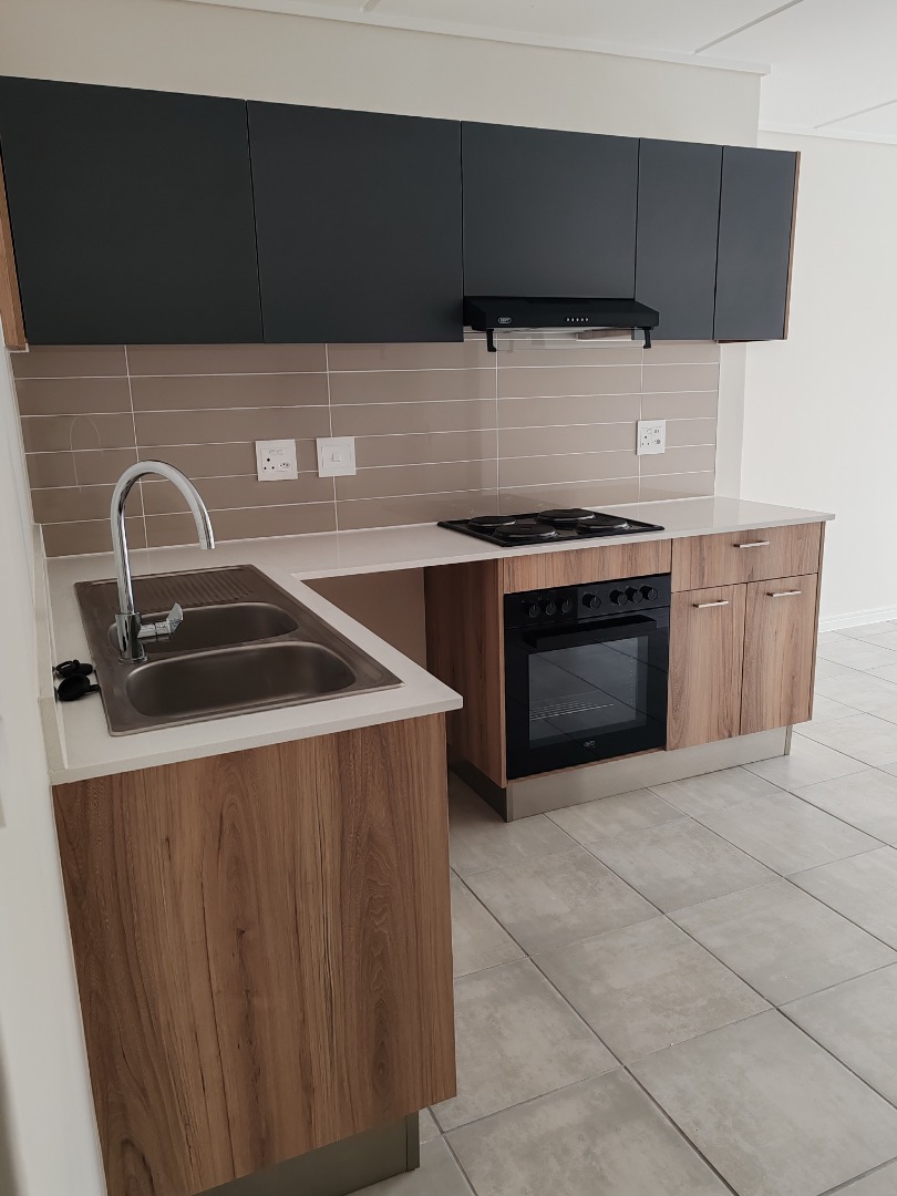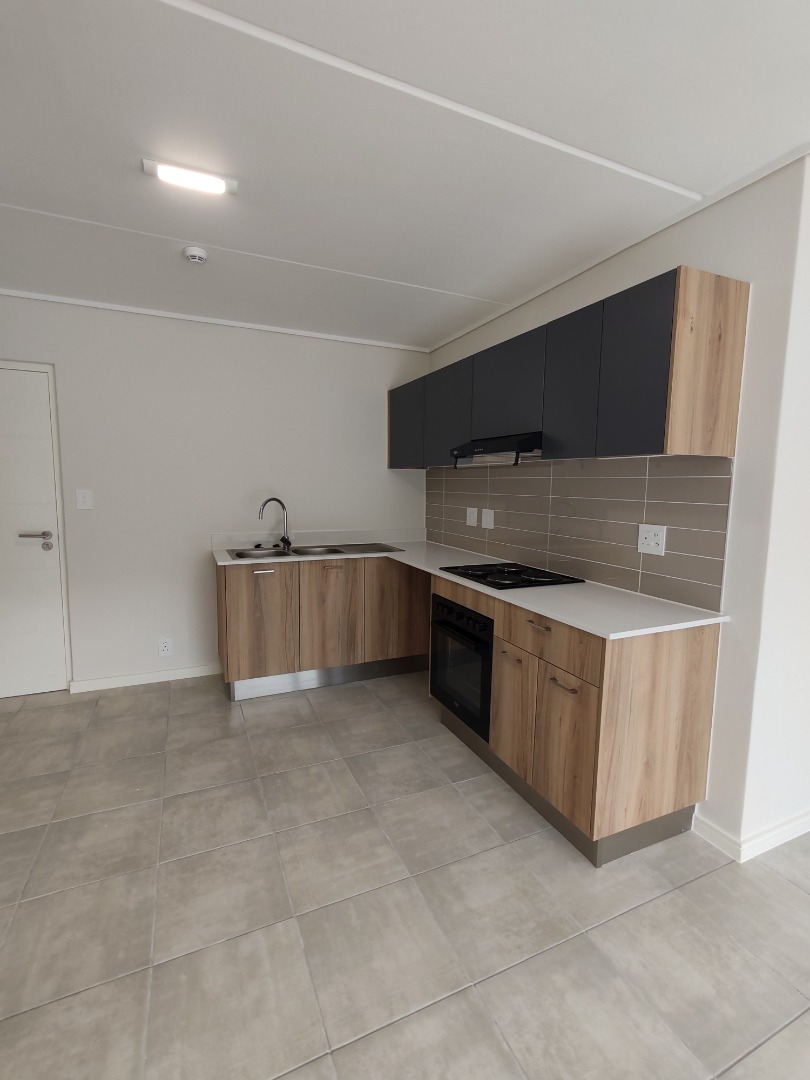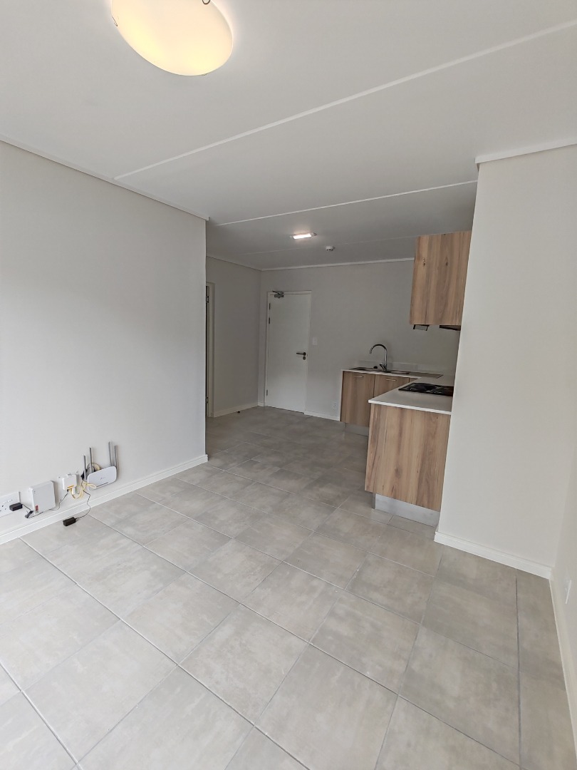 Discover modern living in this inviting 1-bedroom, 1-bathroom apartment located within the secure Green Bay Eco Estate in Gordons Bay. Spanning 40 sqm, this unit features contemporary finishes throughout, including sleek tiled flooring and a neutral colour palette, offering a blank canvas for personalisation. The open-plan layout seamlessly connects the living area with a modern kitchen, equipped with two-tone cabinetry and built-in oven and hob. Enjoy private outdoor space on the balcony, perfect for relaxation and potentially offering mountain views. The bathroom boasts a walk-in shower, while the bedroom includes a built-in wardrobe for convenience. This property is ideal for a single professional or couple seeking a lock-up-and-go lifestyle within a security complex, complete with one dedicated parking bay.