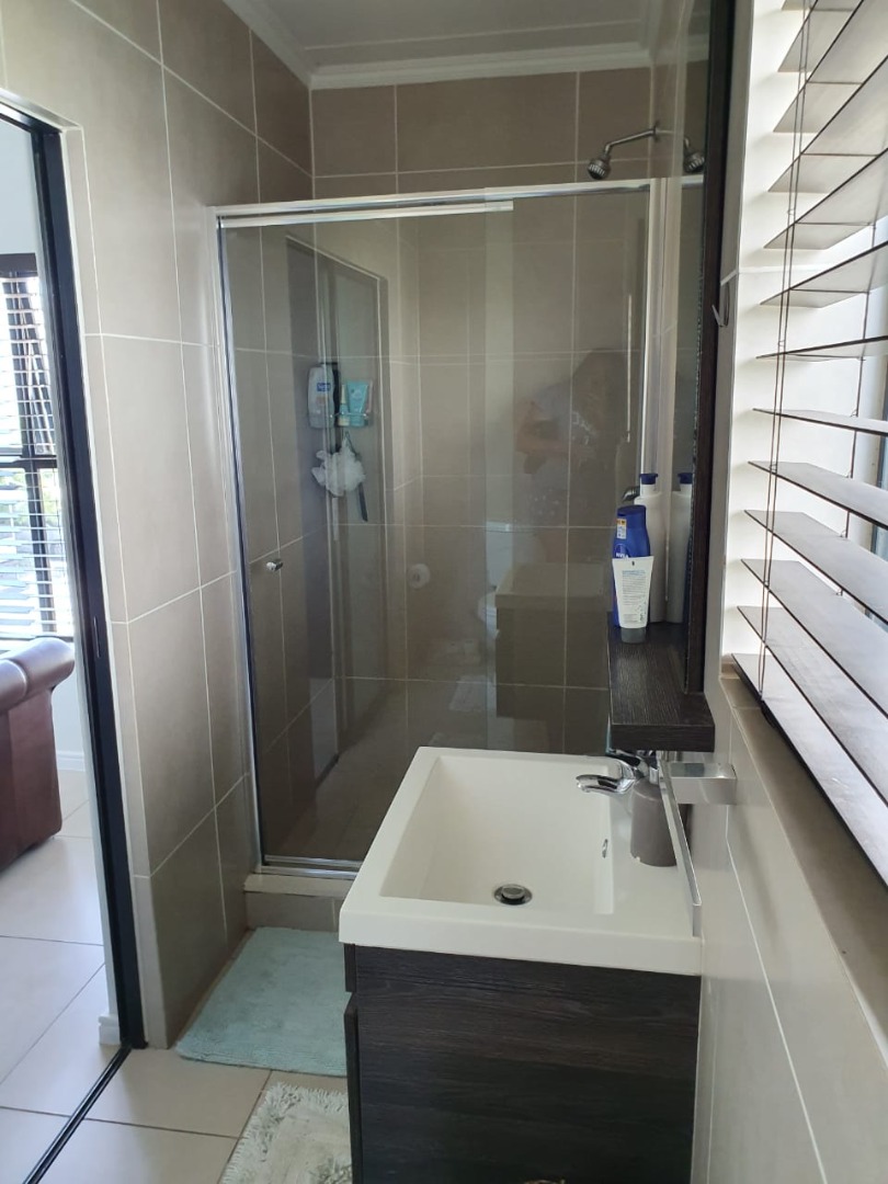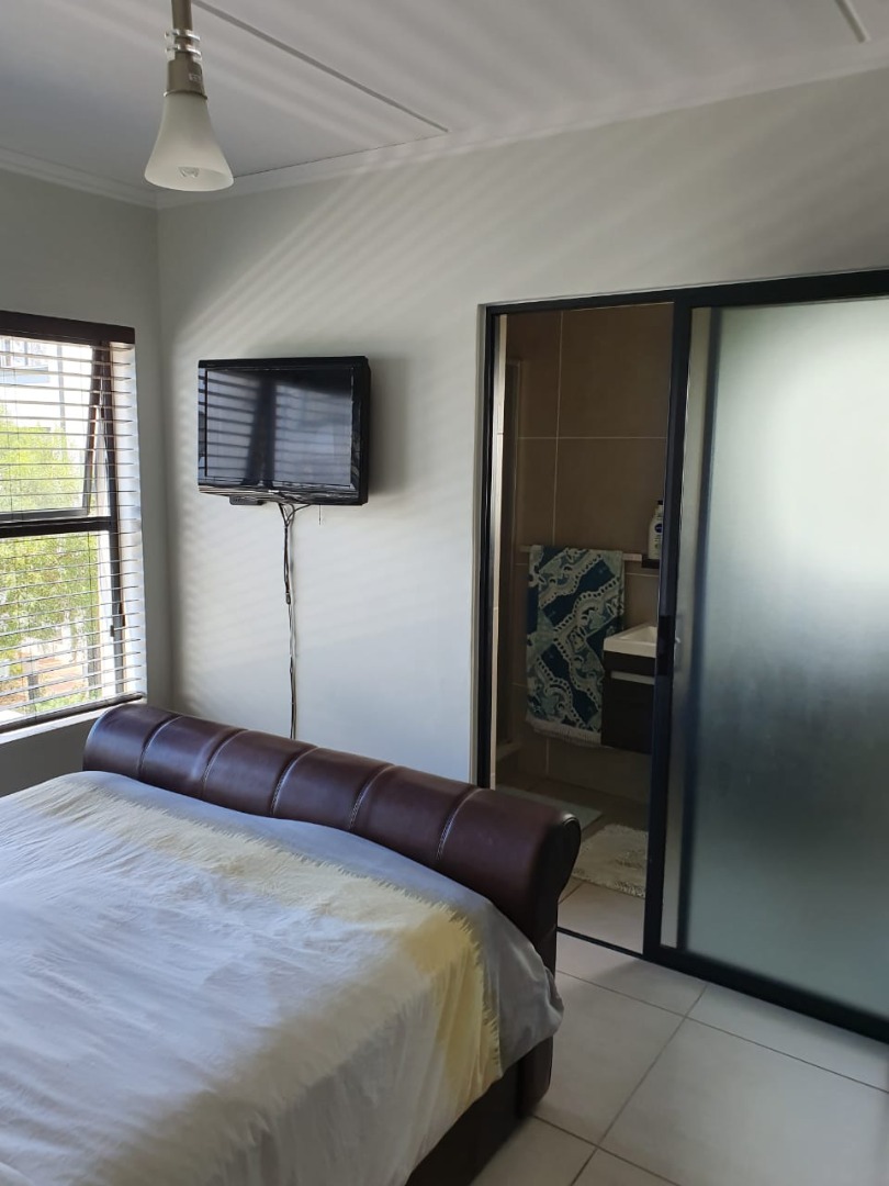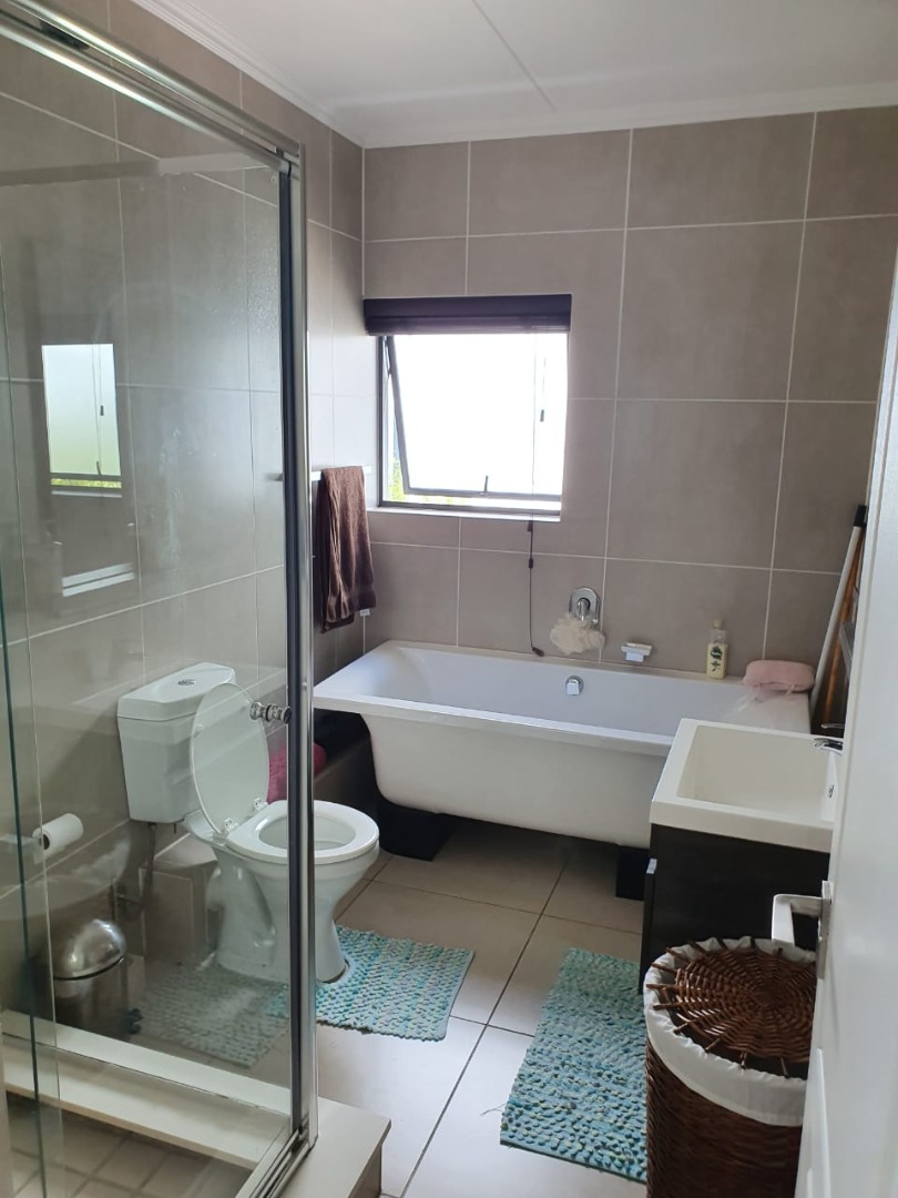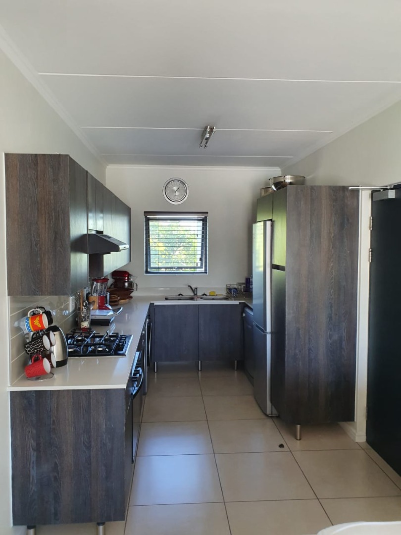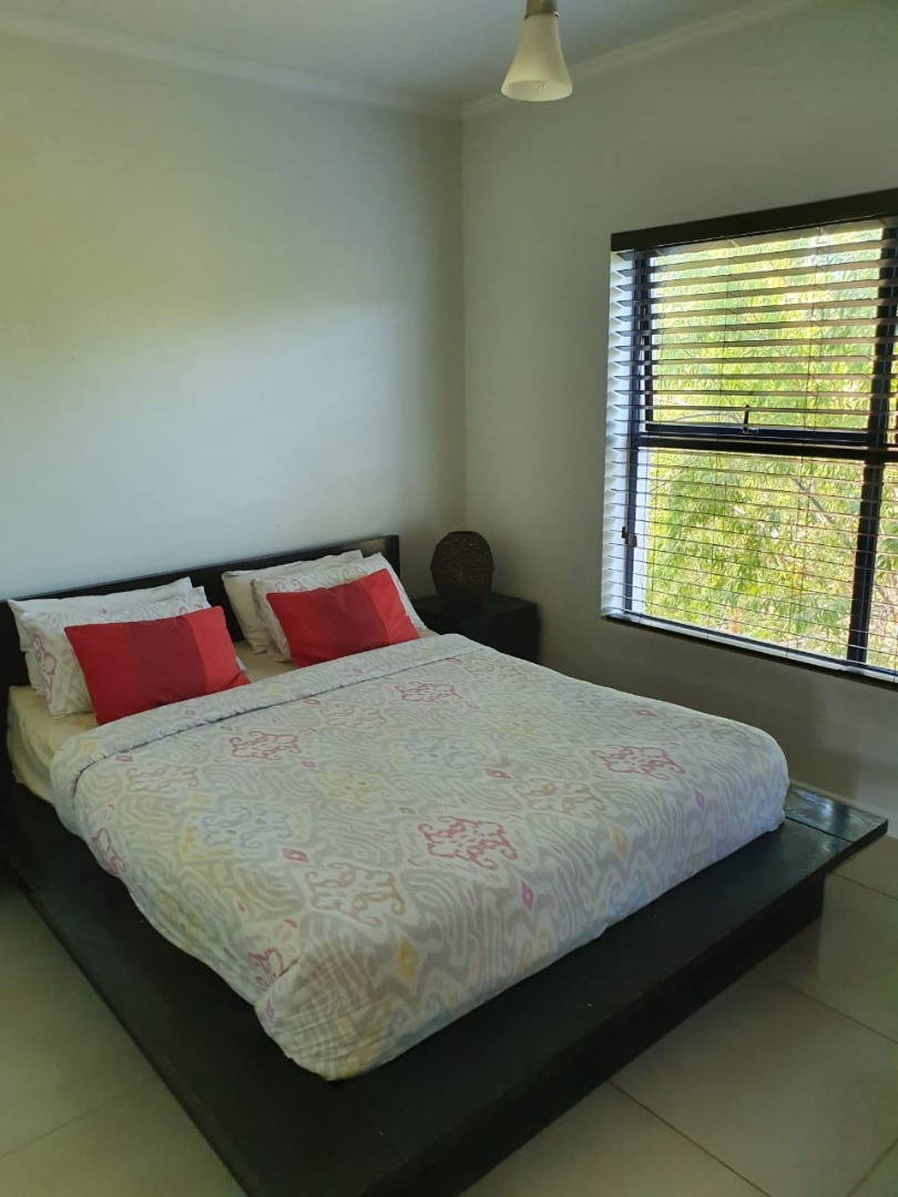 There is sufficient space for a 6 seater table, 2 x two-seater couches and coffee tables. The lounge opens onto a spacious covered patio which is ideal to entertain guests while viewing stunning views of the mountains. The bedrooms all have built-in cupboards and the master bedroom has a shower en-suite. The two additional bedrooms share a full bathroom.