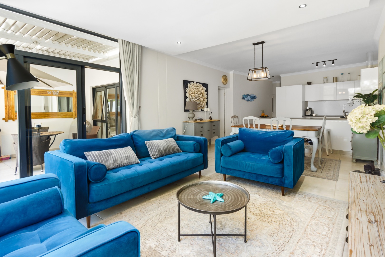 Further enhancing the living experience are a dedicated lounge and a dining room, providing distinct spaces for relaxation and entertaining. The modern kitchen, visible from certain vantage points, complements the home's contemporary design. The seamless transition to private outdoor spaces, accessible from the lounge and main bedroom are an entertainers dream.