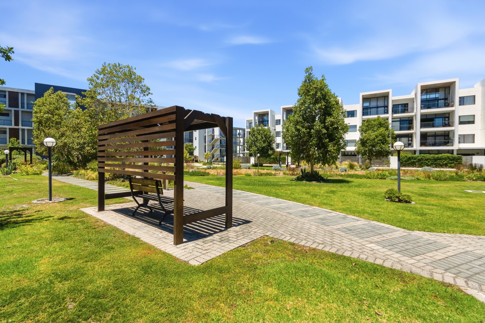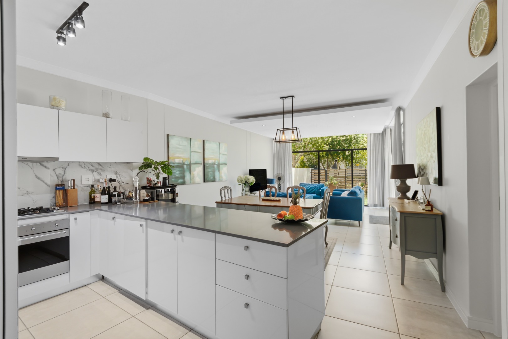 This contemporary rental residence, situated within a distinguished security estate in Heartland Historic Precinct, Somerset West, offers a sophisticated living experience. The property features a meticulously maintained modern aesthetic, characterised by pristine white walls and elegant tiled flooring throughout, ensuring a bright and inviting ambiance. Designed for discerning individuals, this home provides a harmonious blend of style and functionality.