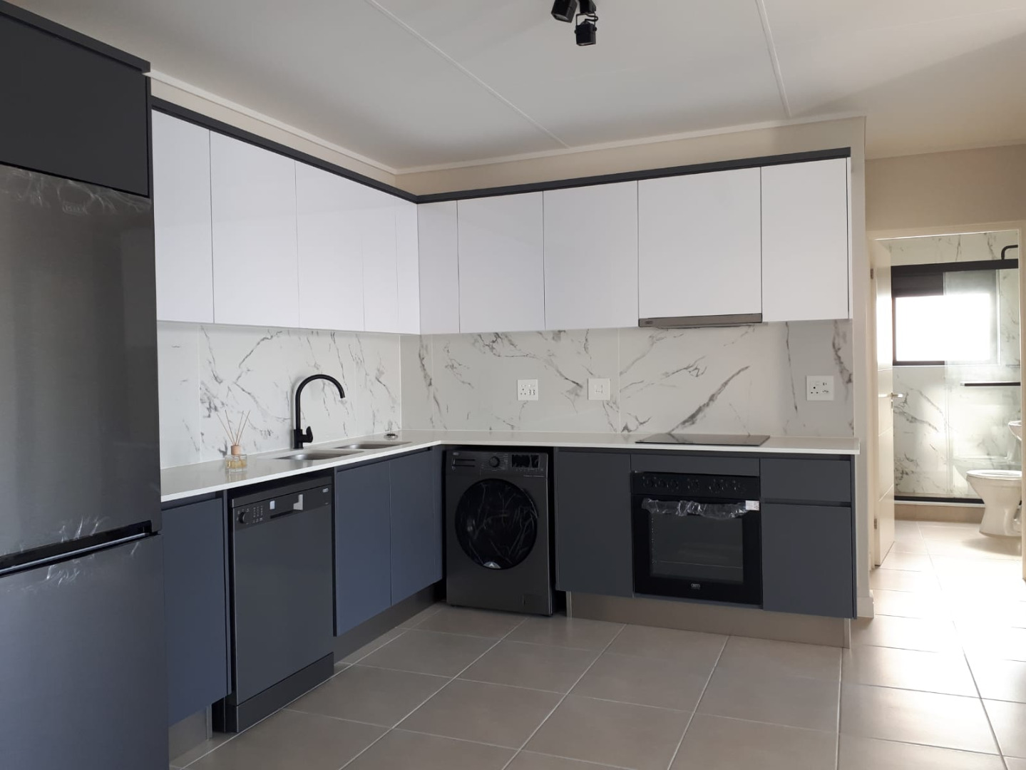 This stylish 2-bedroom, 2-bathroom apartment offers modern living in a sleek black-and-white colour palette that creates a sophisticated and timeless feel throughout.
