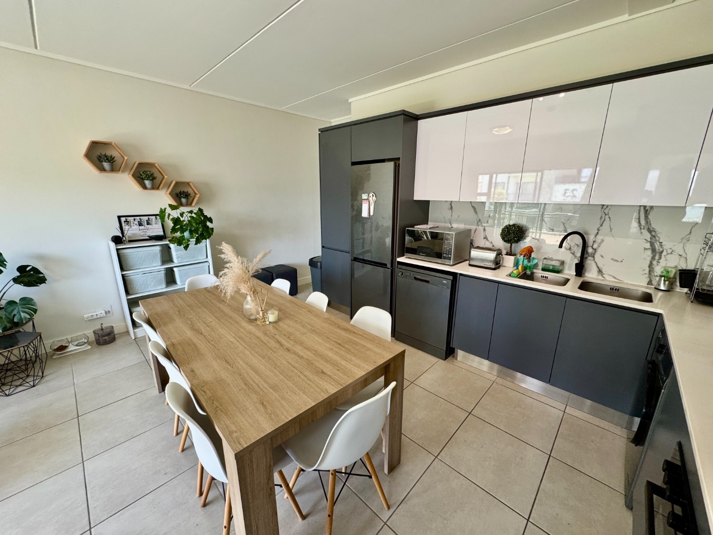 - Modern Kitchen: Fully equipped with premium appliances, including a fridge, dishwasher, and washing machine, combining practicality with a touch of luxury.