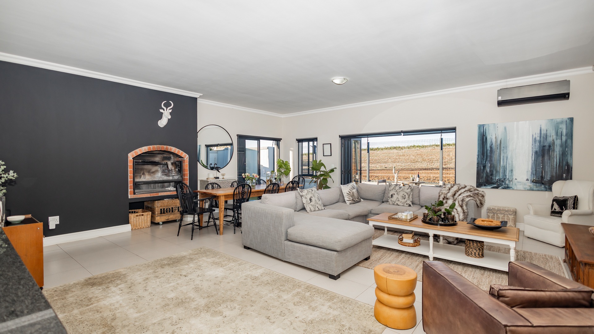 Overlooking the rolling vineyards of Groot Phesantekraal, this home offers a rare blend of countryside tranquility and contemporary estate living — ideal for those seeking both lifestyle and convenience.