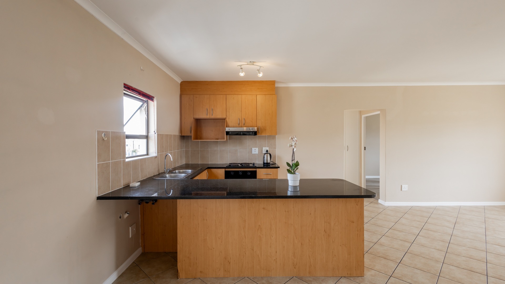 The 2 bedrooms with built in cupboards and neat laminate floors, share the bathroom with shower over bath, basin and toilet. A single covered parking bay is included, behind an automated access gate. There is a communal garden area with swimming pool and braai area, great for those warm summer days. The property is pet friendly with permission from the Body Corporate.