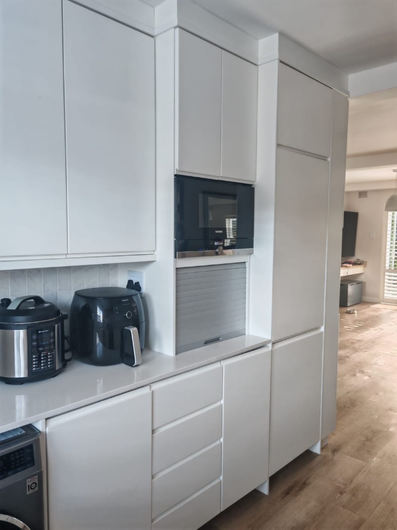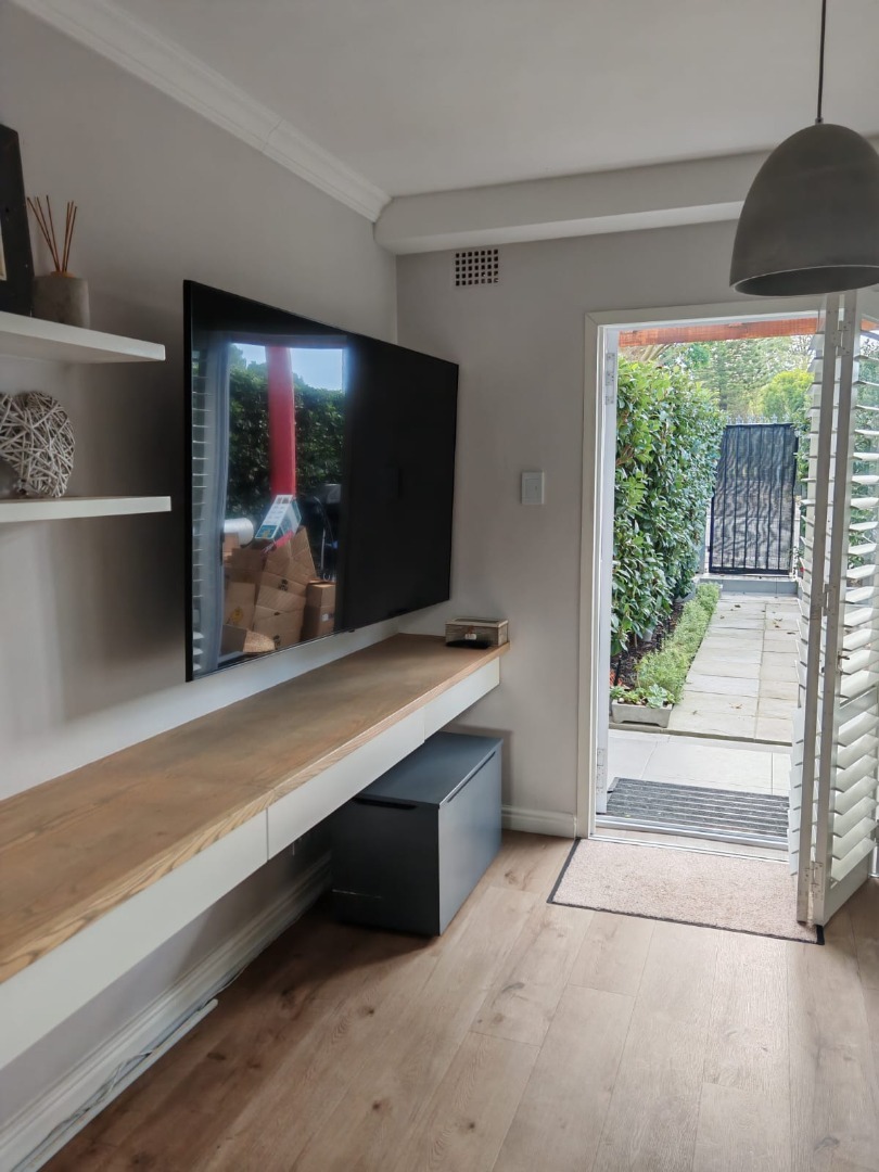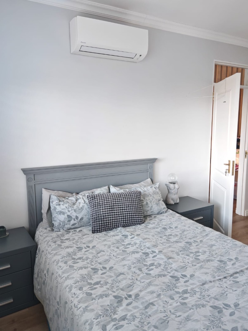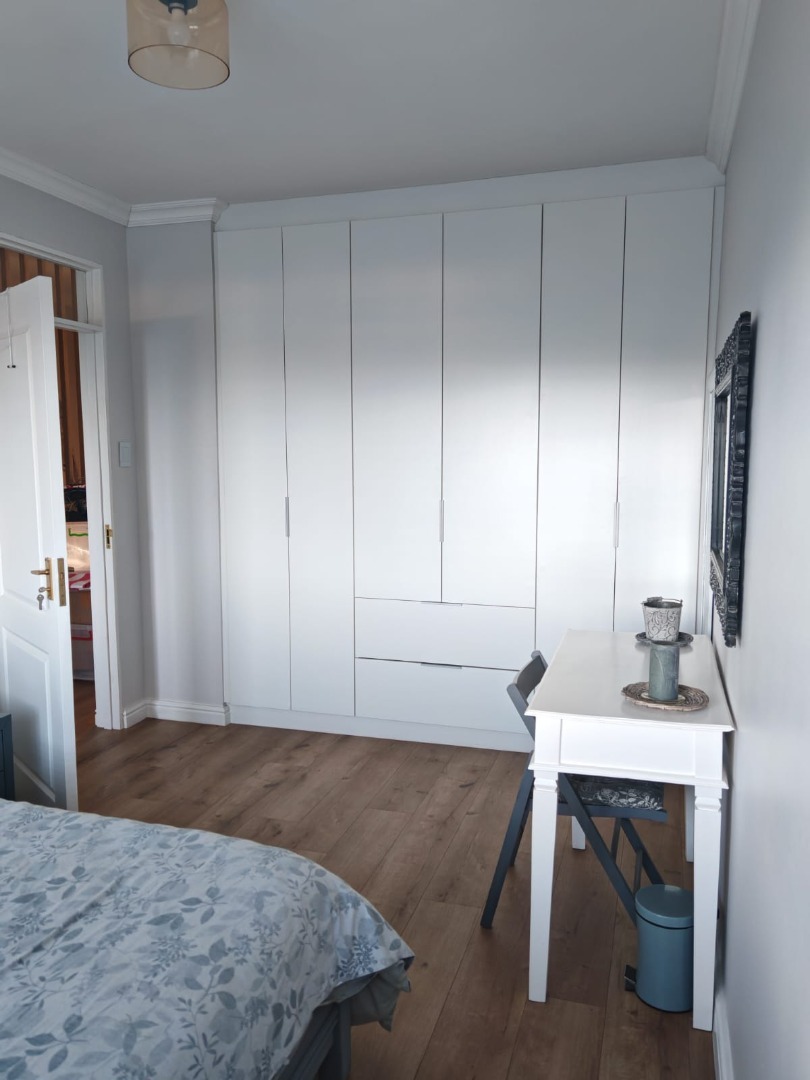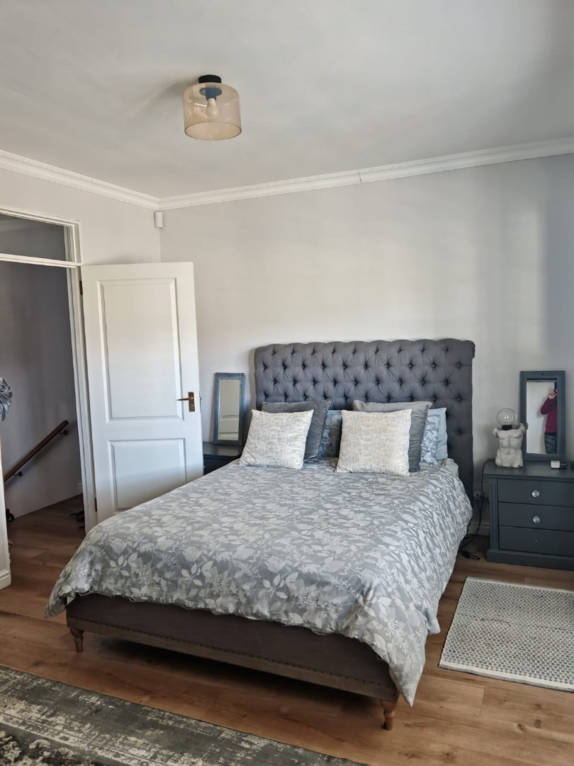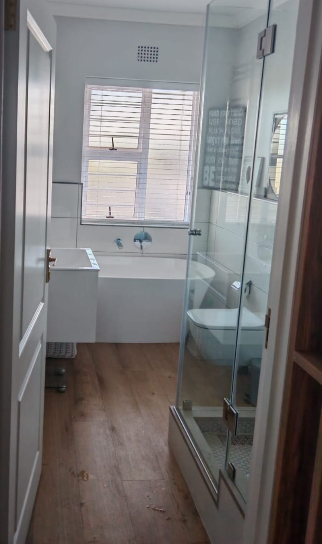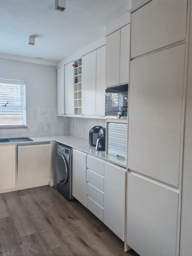 Discover modern living in this North facing,stylish, upgraded and renovated 2-bedroom apartment located within a desirable residential complex in Briza, Somerset West. Spanning 110 square meters, this residence offers a seamless open-plan layout, connecting a spacious lounge, dining area, and a contemporary kitchen with a storage facility underneath the stairs and a guest toilet with basin. The kitchen is a highlight, featuring sleek light cabinetry, elegant countertops, a marble-effect subway tile backsplash, and warm wooden floating shelves. It comes equipped with integrated appliances as in the oven, hob and extractor, fridge/freezer, microwave and dishwasher. Small study console on the one wall with space for TV as well. American shutters, alarm, trellidoors, CCTV cameras and air conditioners as extras. Hardwood-look flooring and neutral wall tones create a sophisticated and inviting atmosphere throughout.