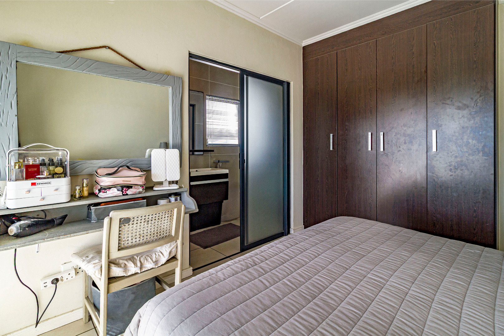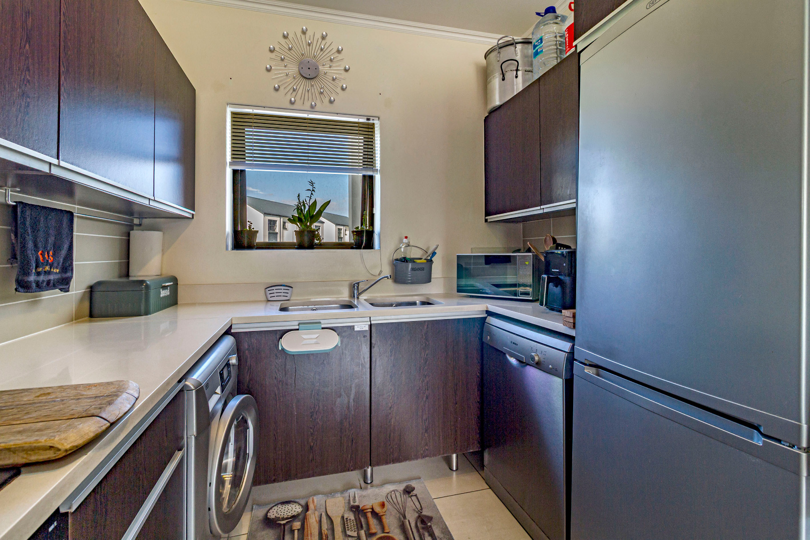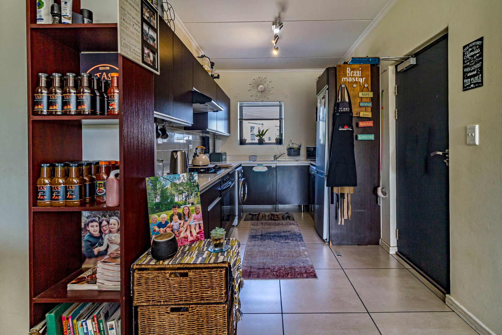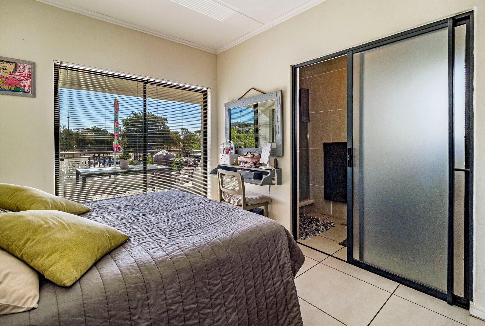 Joint Mandate. This well-maintained 96 m² apartment is situated in the highly sought-after De Velde Lifestyle Estate, offering secure, modern living in one of Somerset West’s most popular residential estates. The open-plan kitchen, dining, and living area creates a comfortable sense of space and flows seamlessly onto a private balcony, ideal for everyday living or relaxed entertaining. The contemporary kitchen is fitted with Caesarstone countertops, ample built-in cupboards, a gas hob, electric oven, and plumbing for both a washing machine and dishwasher.