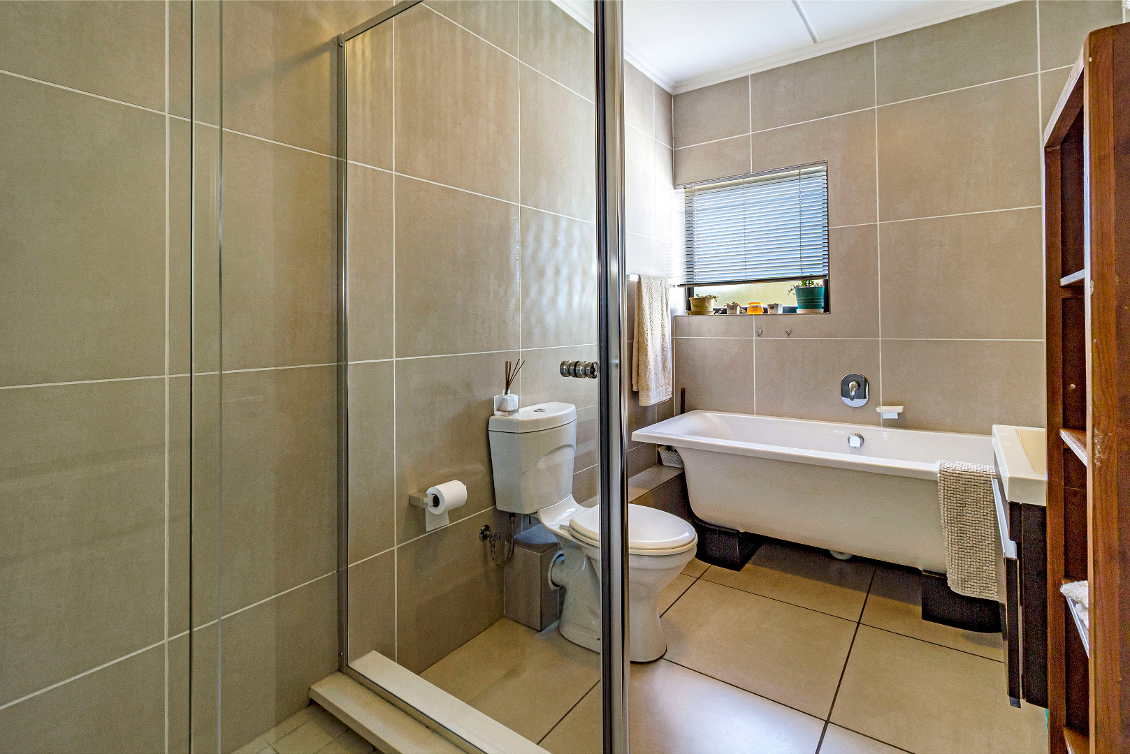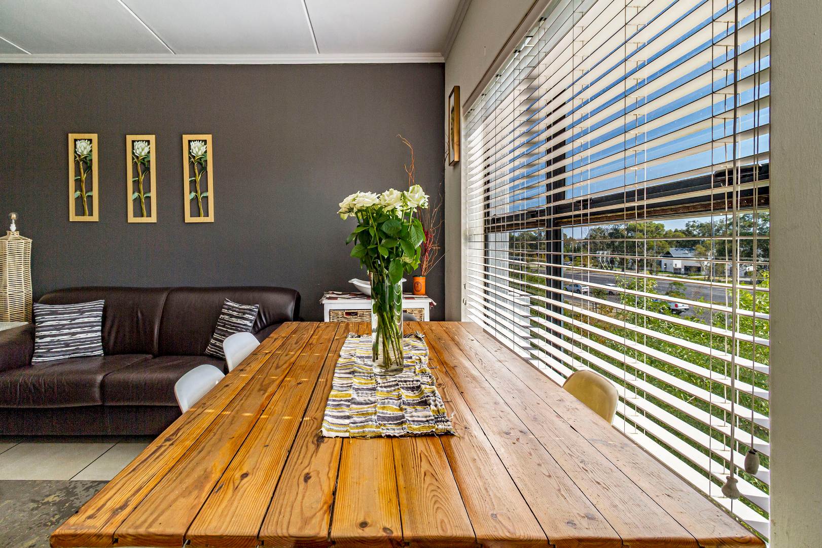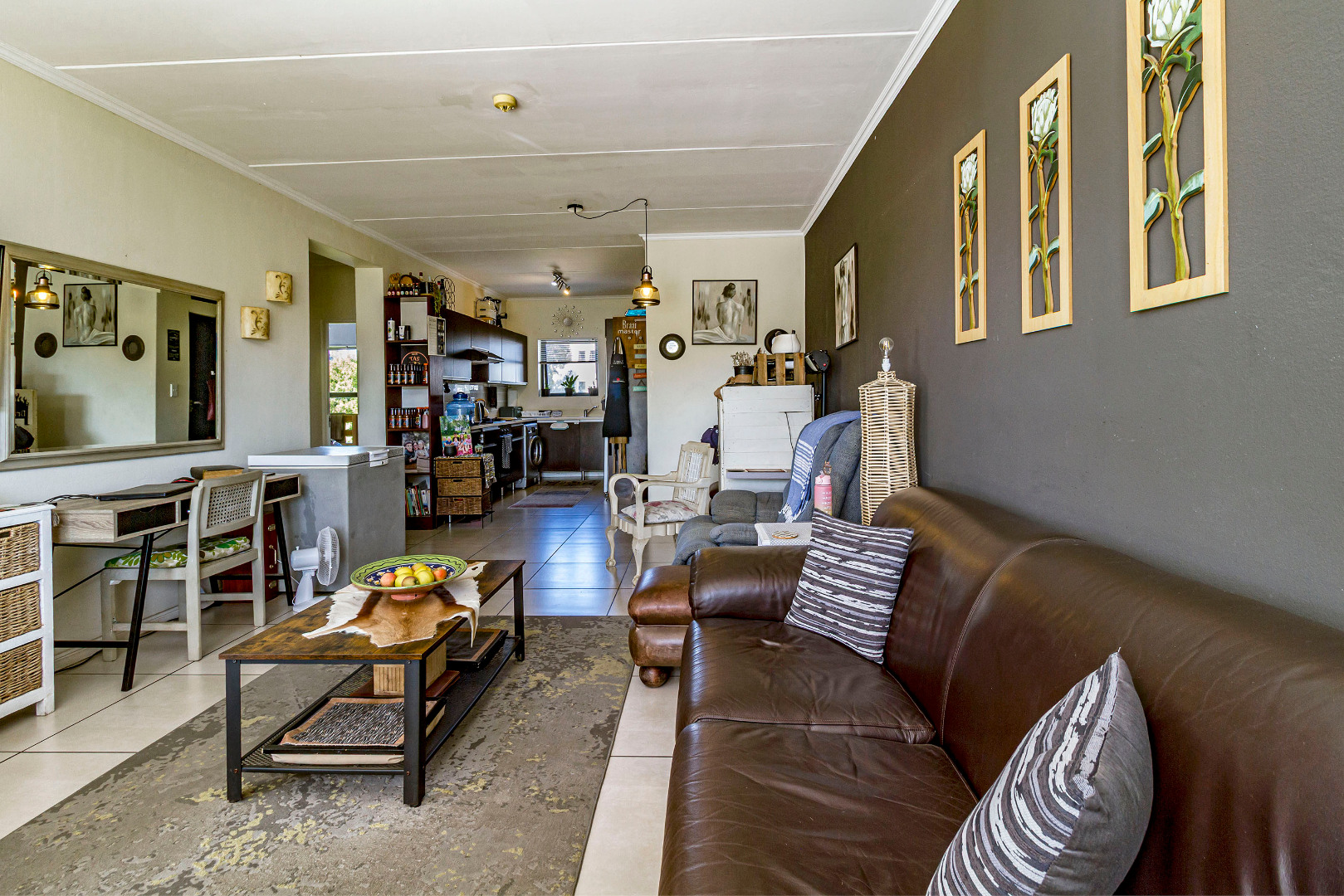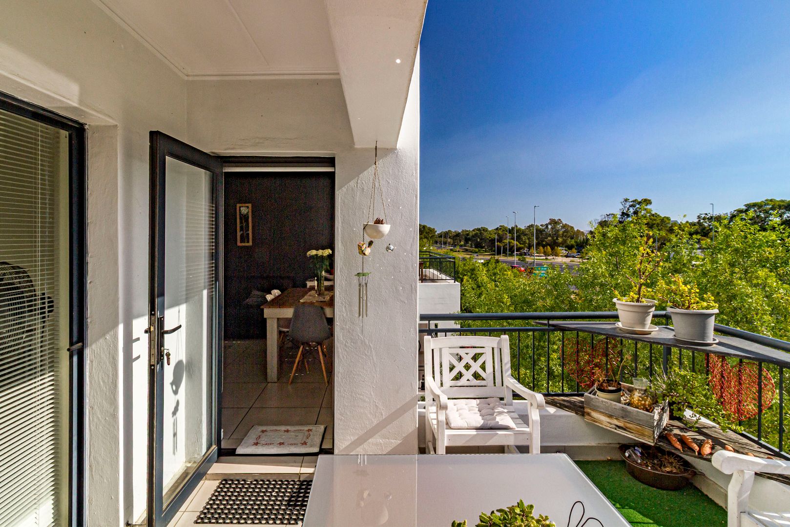 Joint Mandate. This well-maintained 96 m² apartment is situated in the highly sought-after De Velde Lifestyle Estate, offering secure, modern living in one of Somerset West’s most popular residential estates. The open-plan kitchen, dining, and living area creates a comfortable sense of space and flows seamlessly onto a private balcony, ideal for everyday living or relaxed entertaining. The contemporary kitchen is fitted with Caesarstone countertops, ample built-in cupboards, a gas hob, electric oven, and plumbing for both a washing machine and dishwasher.