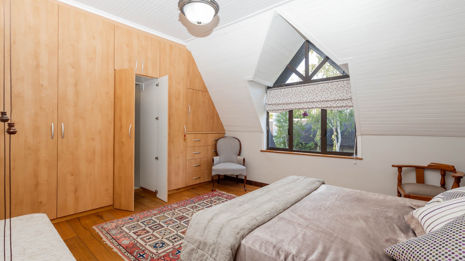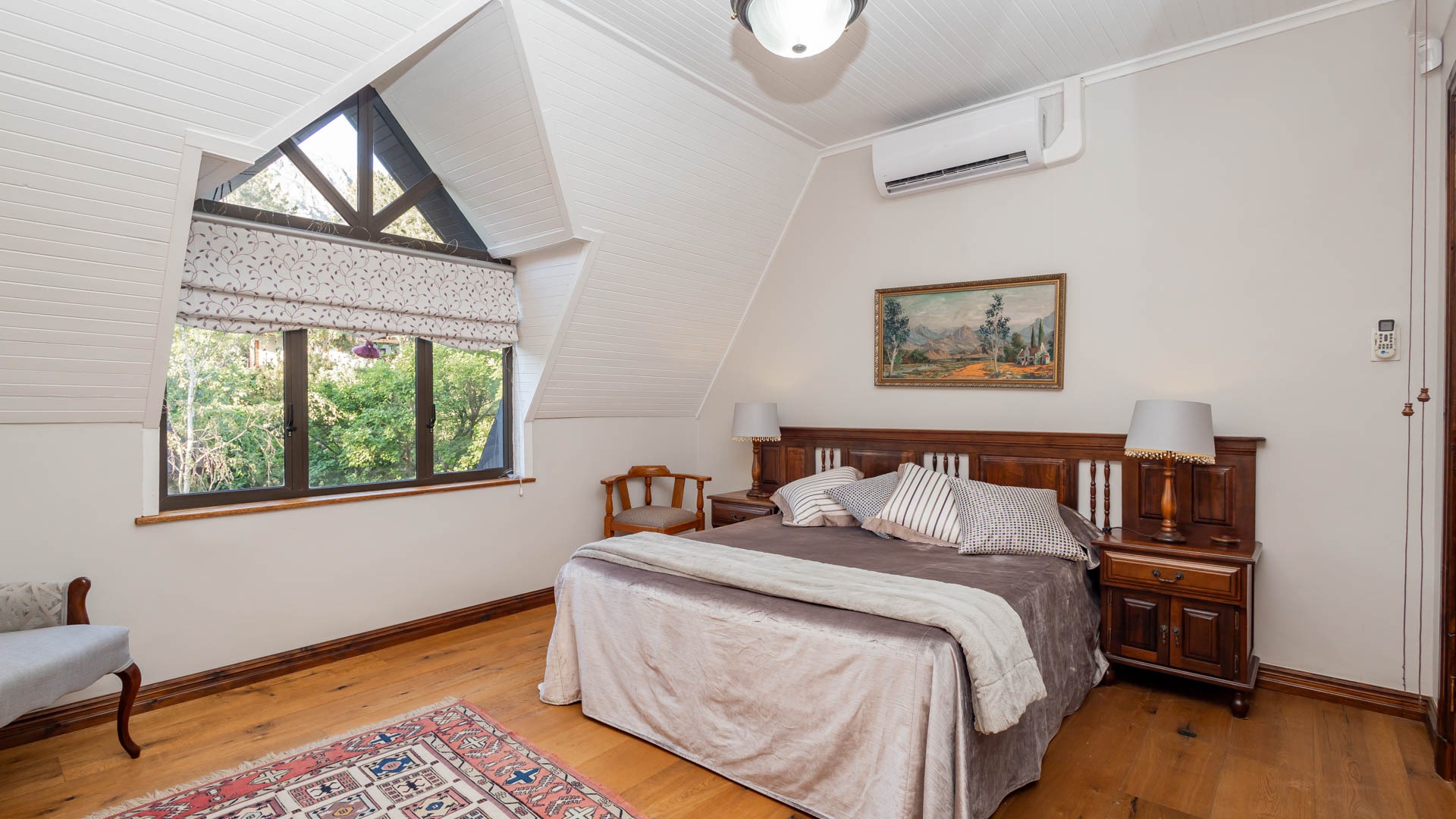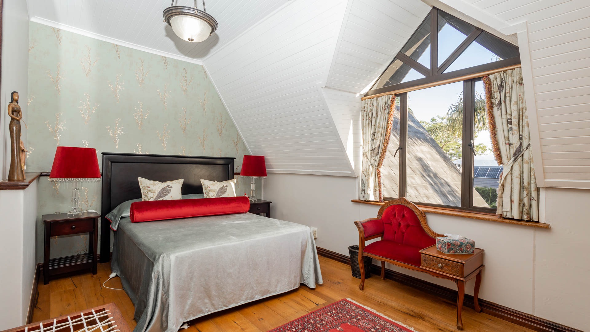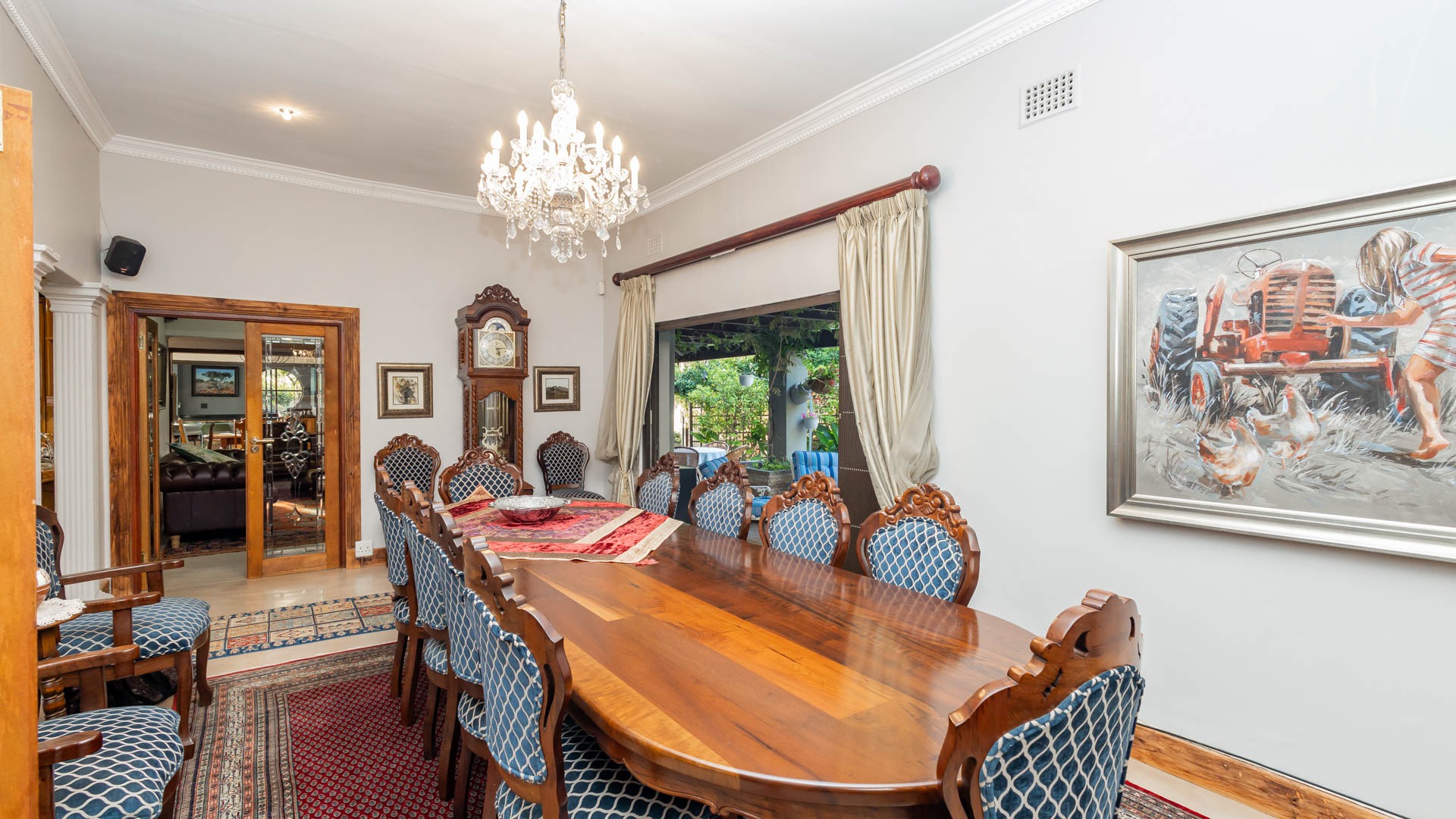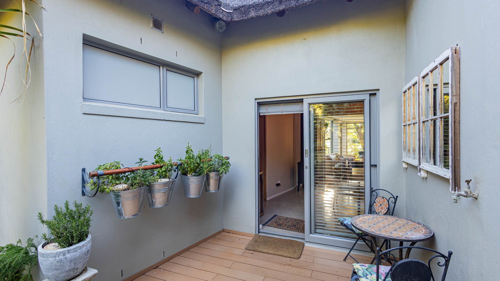 The main residence is spacious, versatile and designed for lifestyle living with extensive indoor and outdoor entertainment areas. It includes six bedrooms, five bathrooms, four garages and a wine cellar that can hold around three thousand bottles. The home is supported by strong infrastructure including a borehole producing approximately 4500 litres per hour, two eleven thousand litre storage tanks, full irrigation, a 34 panel solar system with 2 x 12 KW inverters and 12 x 5 kilowatt batteries. Outdoor features include mature landscaped gardens, koi ponds, water features, two fire pits, wendy houses, a Jacuzzi and both gas and wood fireplaces. The kitchen offers a Smeg gas hob and oven together with a second Bosch oven and a built in wood and gas braai in the braai room overlooking the pool. The garden has been established over more than three decades and includes rare trees and plant species that attract abundant birdlife.