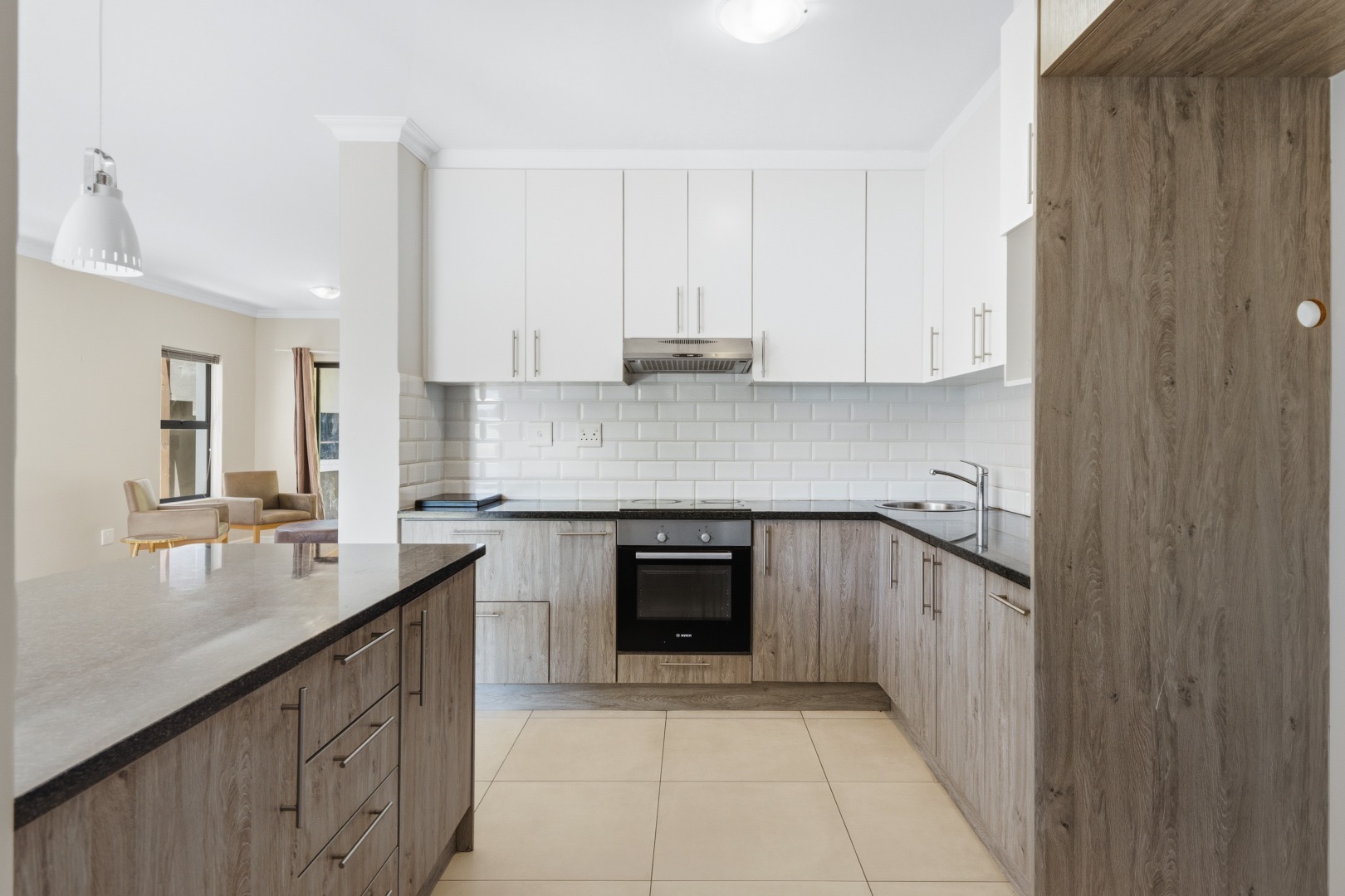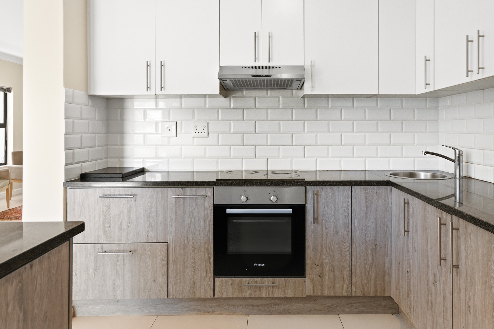 • A well-appointed kitchen with ample cupboard space, granite countertops, a four-plate electric hob, electric oven, and extractor fan