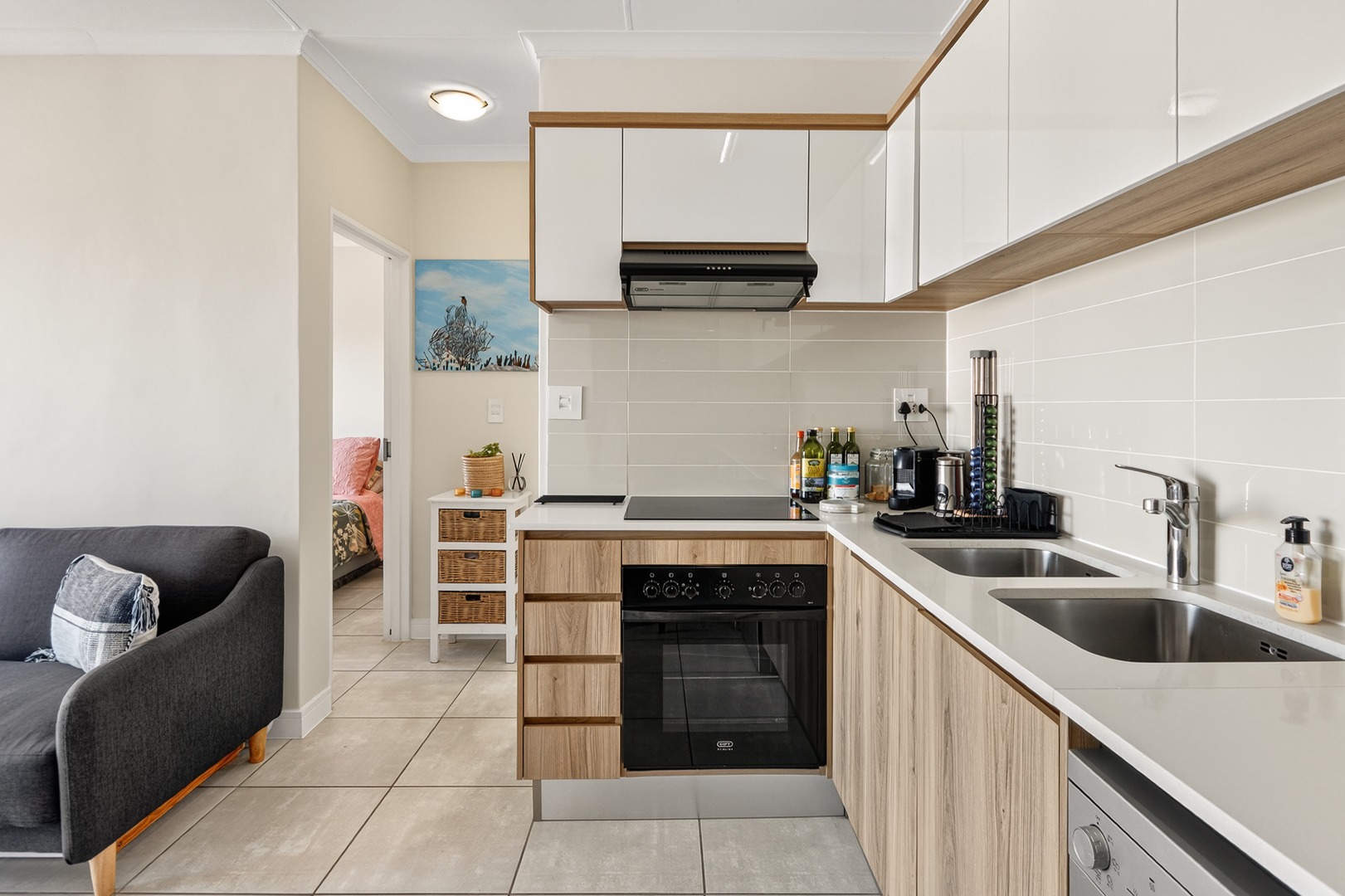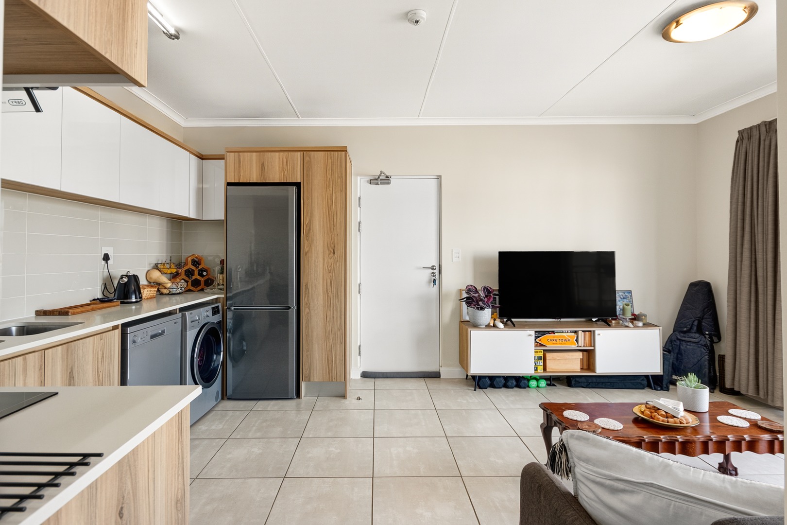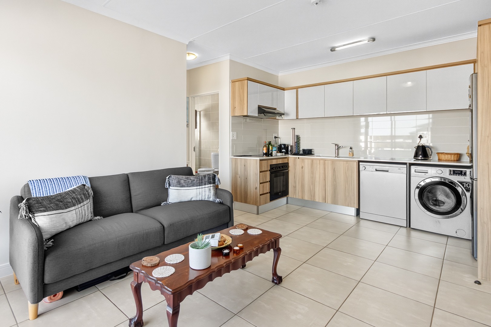- Open-Plan Living: Bright and airy lounge and kitchen area with excellent natural light — the unit enjoys a warm north/northeast-facing orientation.