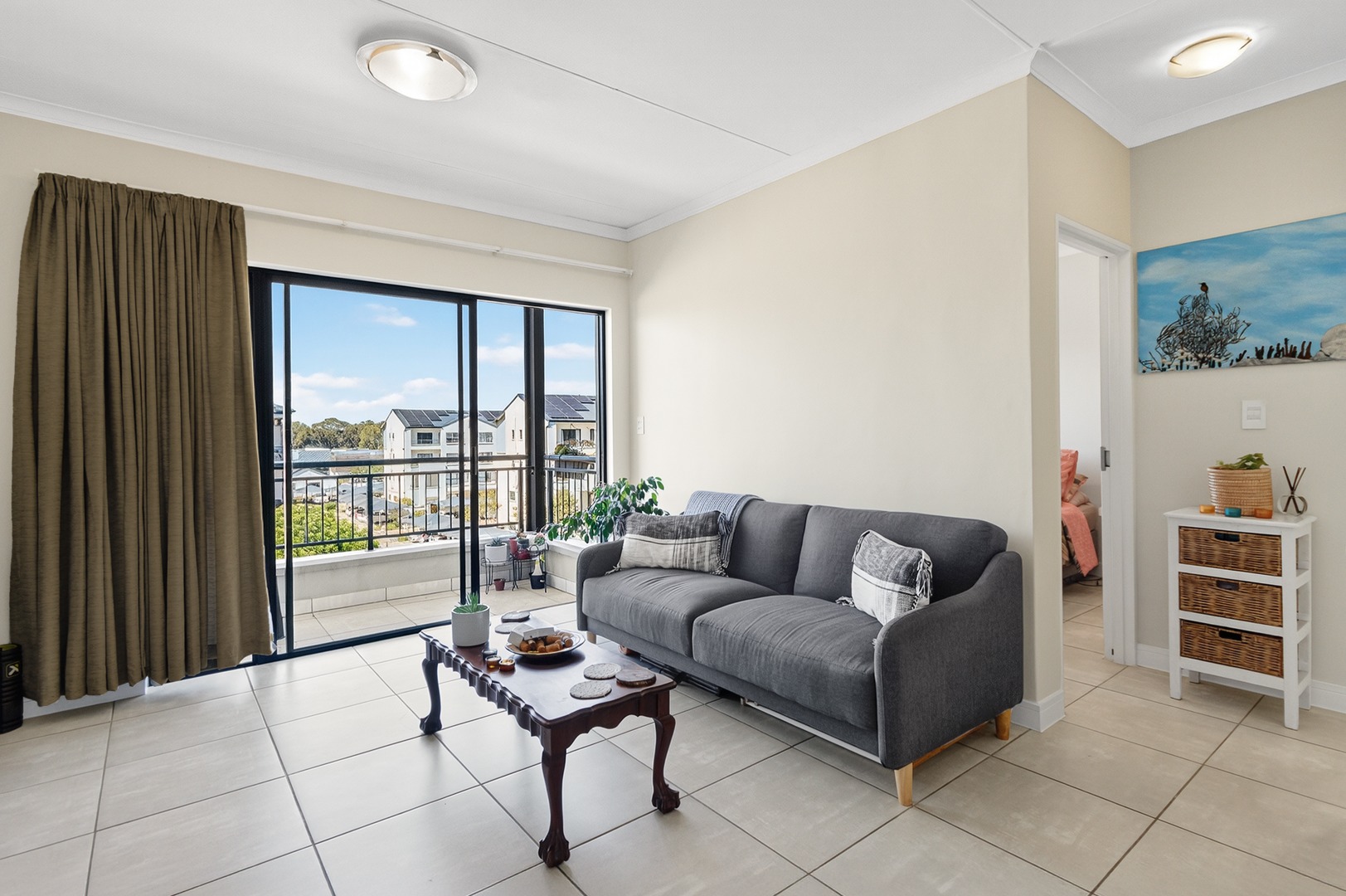 - Open-Plan Living: Bright and airy lounge and kitchen area with excellent natural light — the unit enjoys a warm north/northeast-facing orientation.