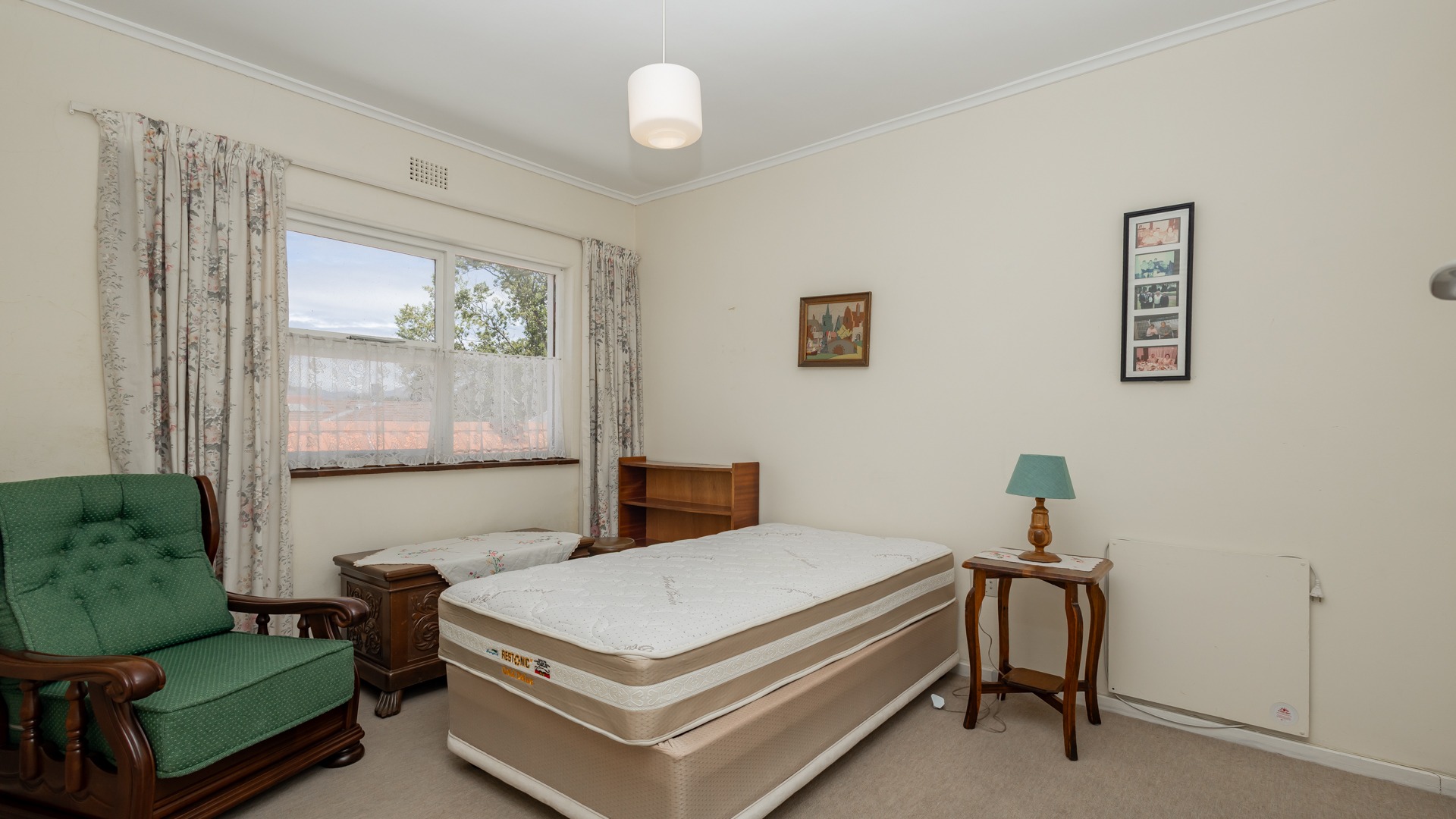The two bedrooms are upstairs and designed for comfort, with one bathroom, there’s plenty of space for residents and guests. The home has a traditional feel, offering a wonderful opportunity to add your personal flair and update it to your taste.