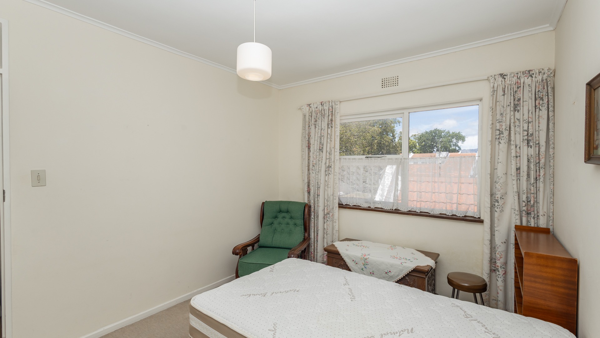 The two bedrooms are upstairs and designed for comfort, with one bathroom, there’s plenty of space for residents and guests. The home has a traditional feel, offering a wonderful opportunity to add your personal flair and update it to your taste.