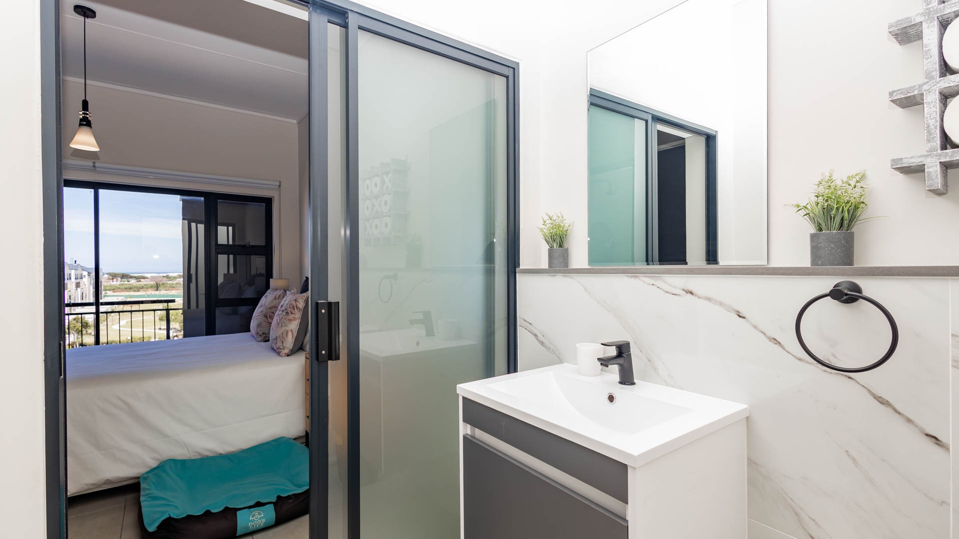 Both bedrooms are generous in size, with the main bedroom including an en-suite bathroom and a balcony and the second bathroom offering a combination of bath and shower. Every detail of the finishes, from the flooring to the fixtures, reflects quality and care. This penthouse stands out for its spacious design, elegant presentation, and peaceful views, making it an ideal home for those seeking a comfortable lock up and go lifestyle in one of Somerset West’s most desirable estates.