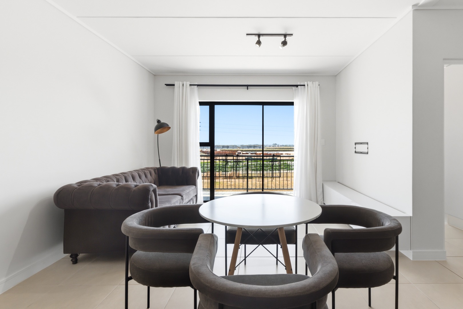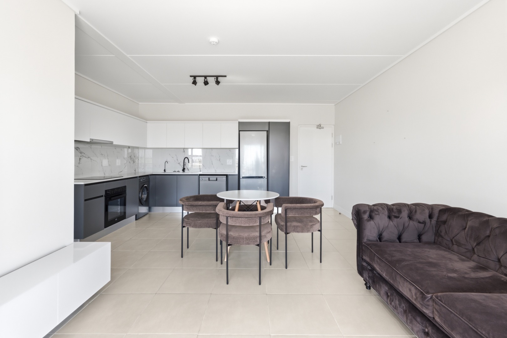 - From the lounge you step out onto a large semi under covered patio, where there is enough space to have a couple of outside chairs, a small table and enjoy a weber braai. Lovely sunset views over Table Mountain