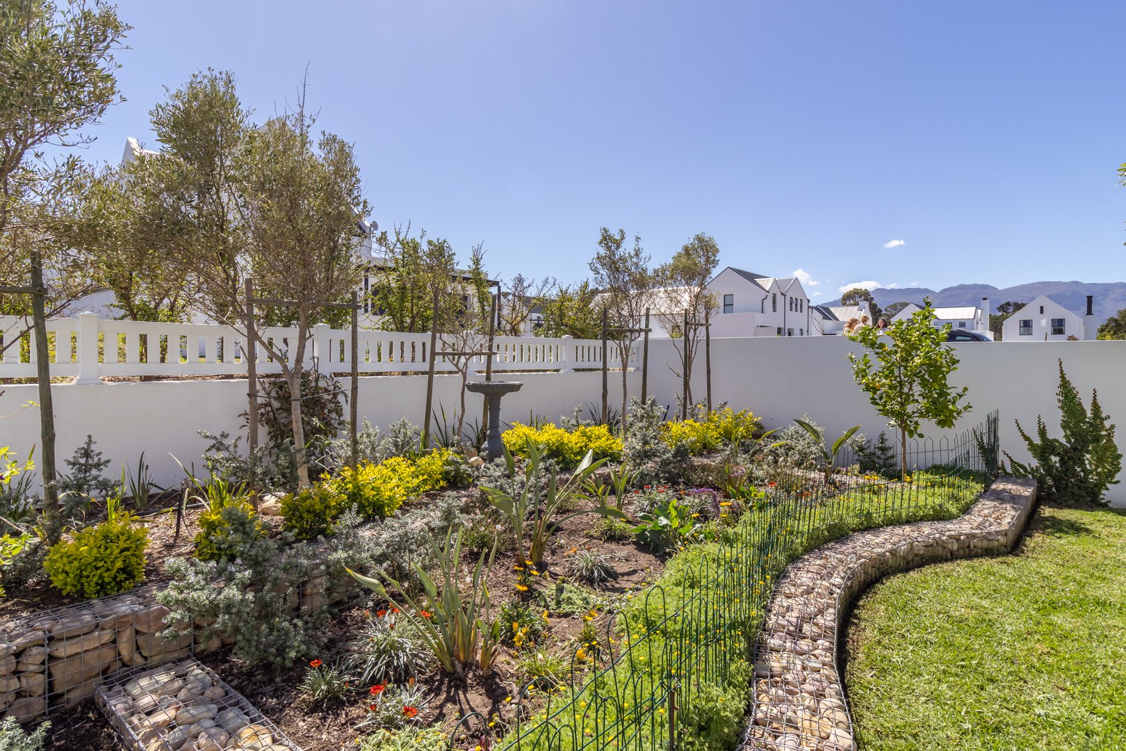 Winelands Village Estate offers a tranquil, rural lifestyle, while remaining conveniently accessible to Stellenbosch and Somerset West. Residents enjoy easy access to Waterstone shopping center, Somerset College, and the surrounding wine farms. This area is especially popular among cyclists, with scenic routes extending from the Estate into the nearby vineyards. There is also a lovely play area for children, situated near the picturesque dam, offering beautiful views of the surrounding mountain ranges.