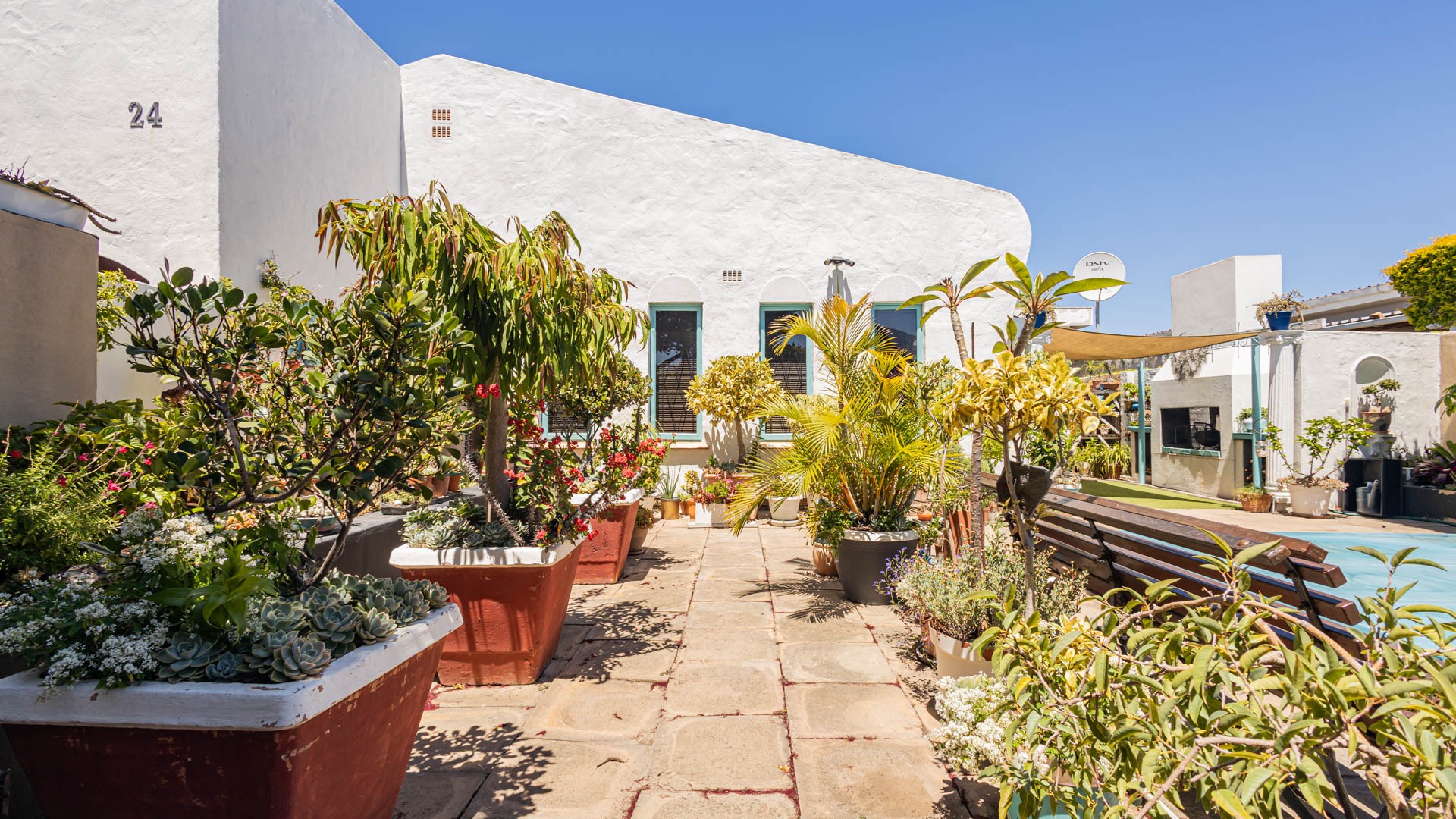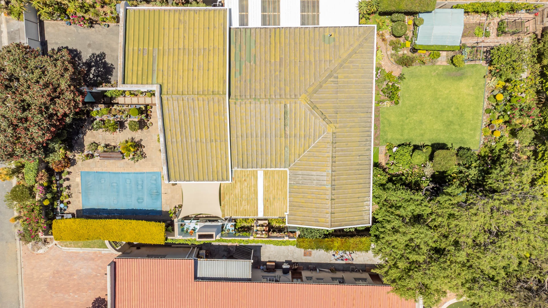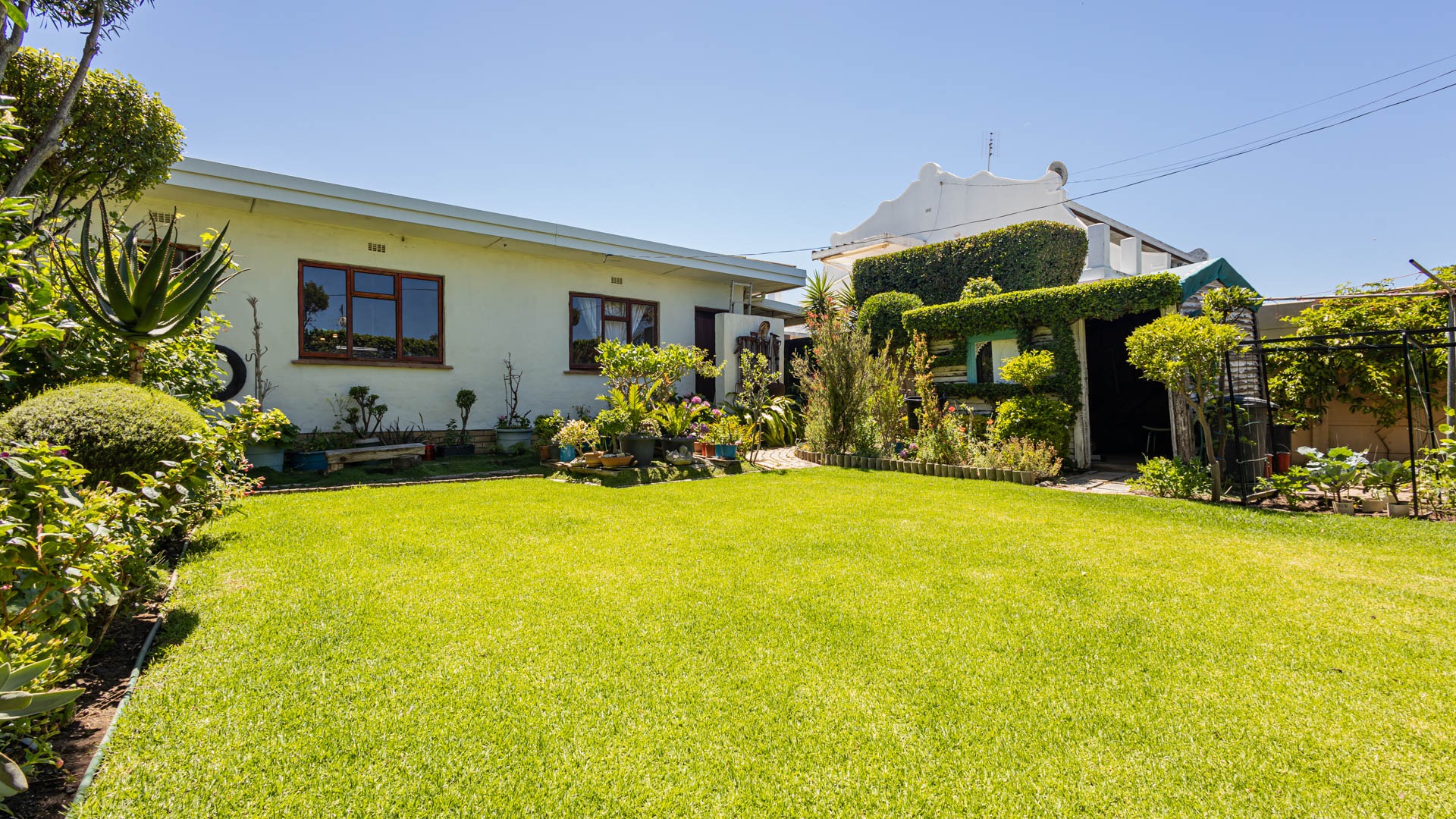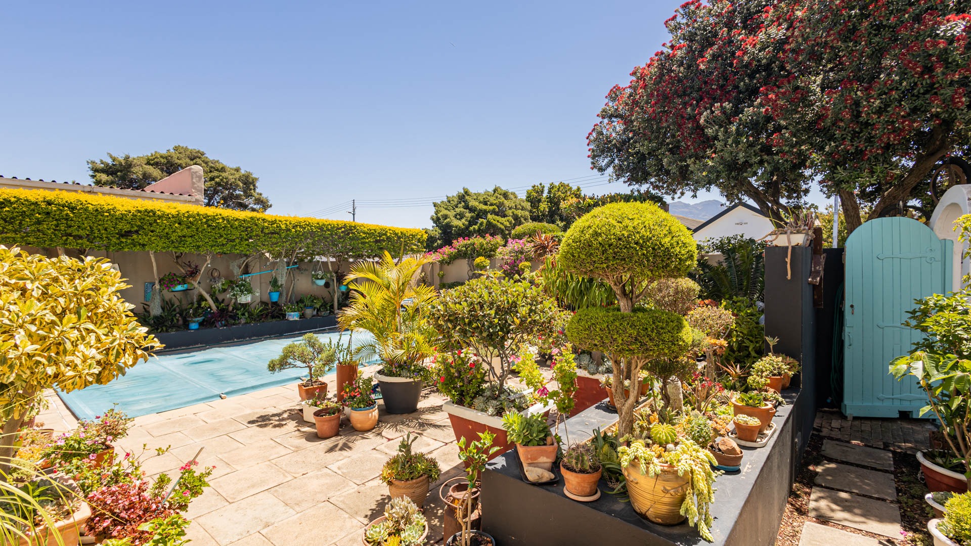 Outside, your private oasis awaits! The front yard features a covered swimming pool, ready for sunny South African days. There's also a fantastic patio area with artificial turf and a built-in braai, making it super easy to host friends and family. With a lovely garden, paving, and a driveway leading to two direct access garages and two additional parking spaces, convenience is key. Your furry friends are welcome too! Water tanks are a thoughtful touch for sustainable living.