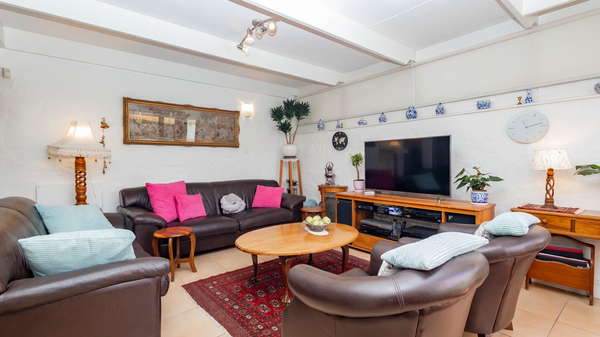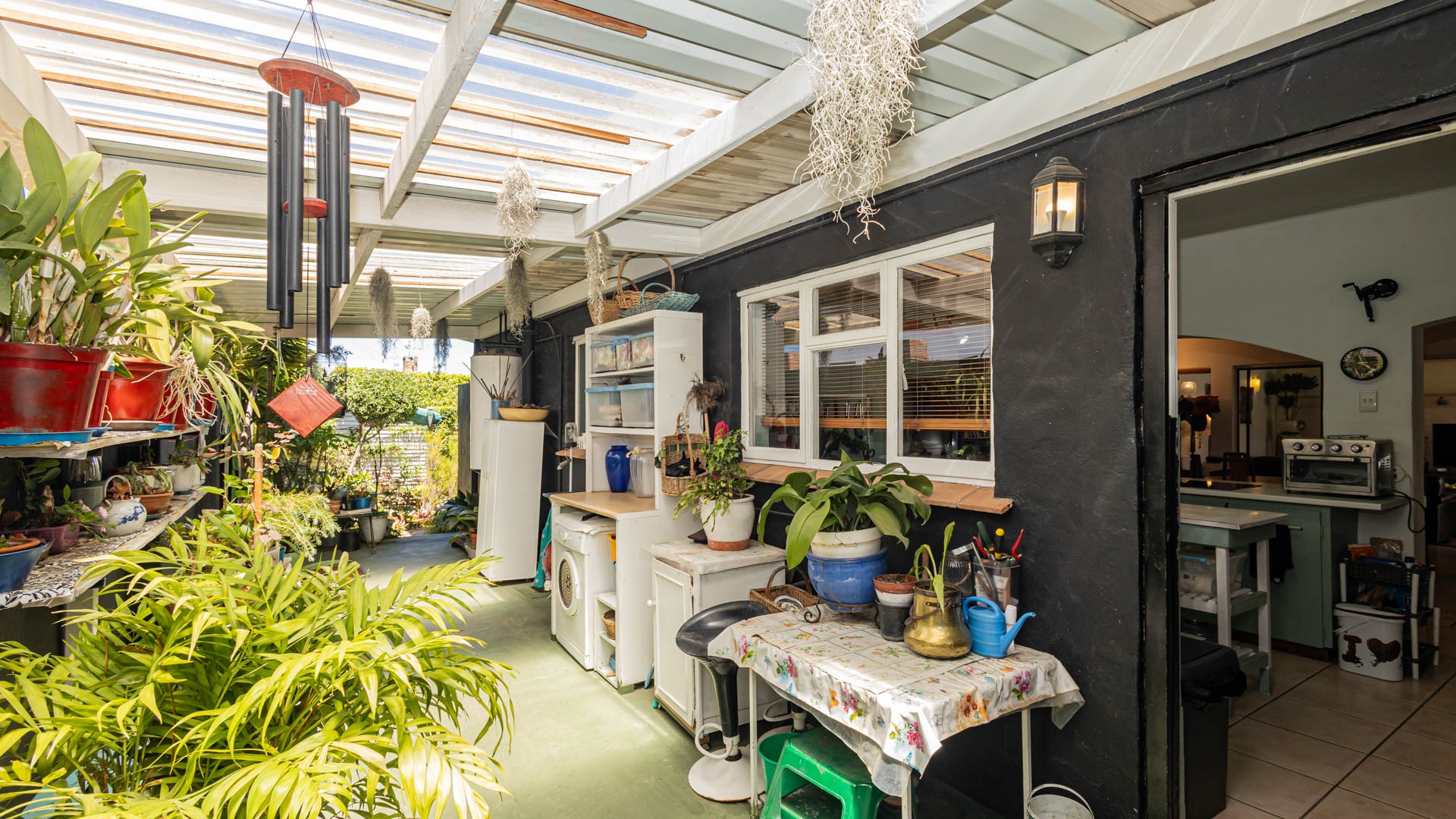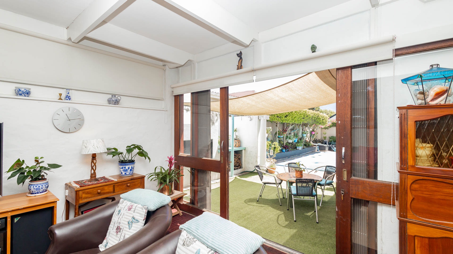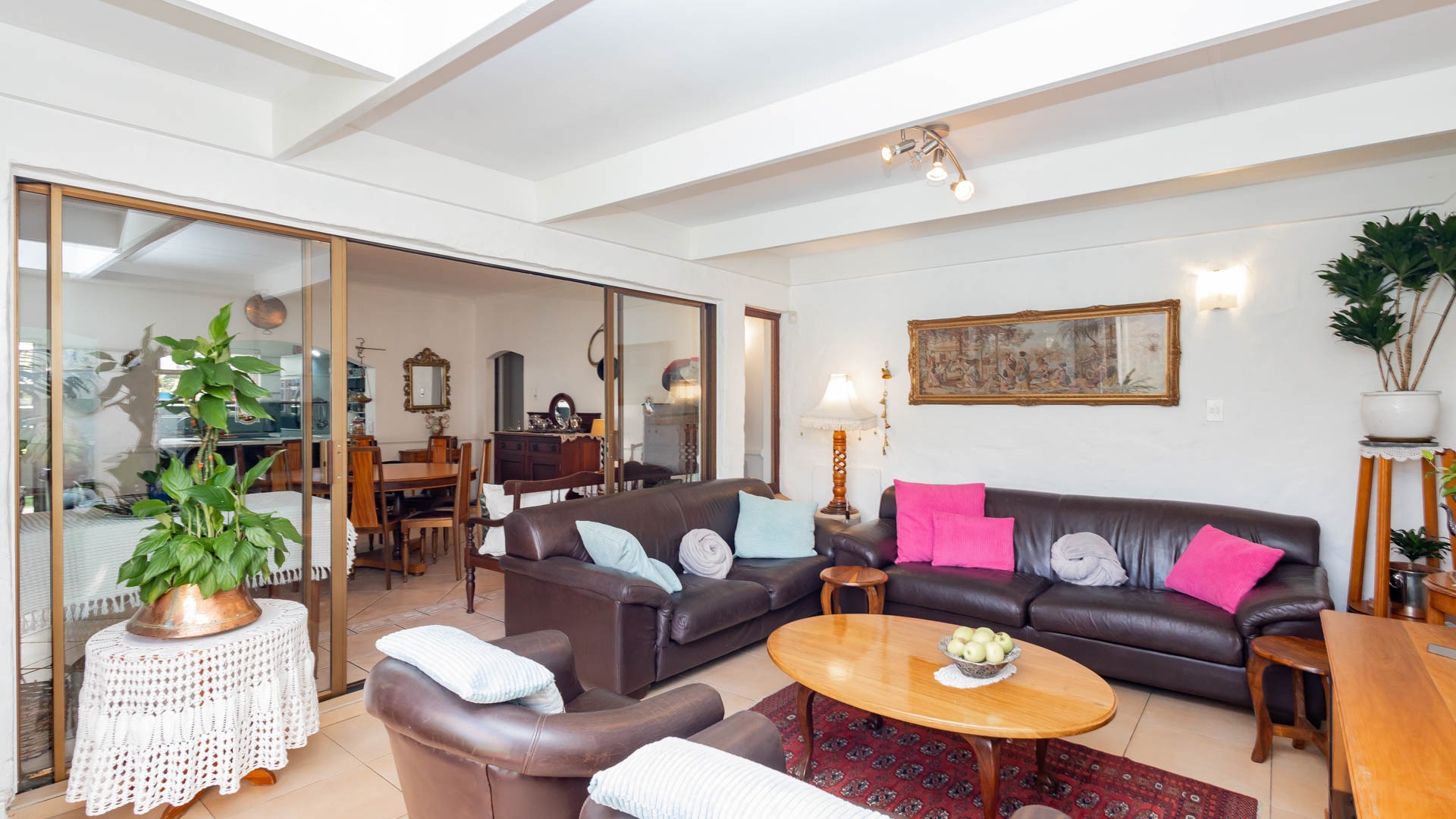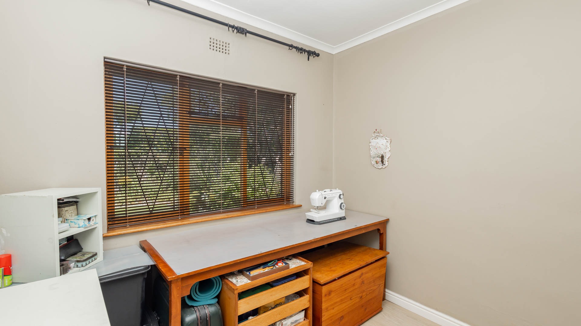 Step inside and discover a versatile layout designed for easy living. From your entrance hall, you are greeted by a private lounge or study...ideally for working from home, walking out onto an undercover patio and braai area... You'll find a well-equipped kitchen with a kitchen nook, a built in oven and hob and plenty of cupboards, walking out onto a stoep that offers washing facilities for a washing machine and tumble drier. An extremely spacious dedicated dining room, and a cozy lounge for the whole family that walks out onto a patio, braai and swimming pool area. Many rooms feature unique, warm wooden slatted or plank ceilings that add character. This home boasts three comfy bedrooms and two bathrooms, including a main en-suite.