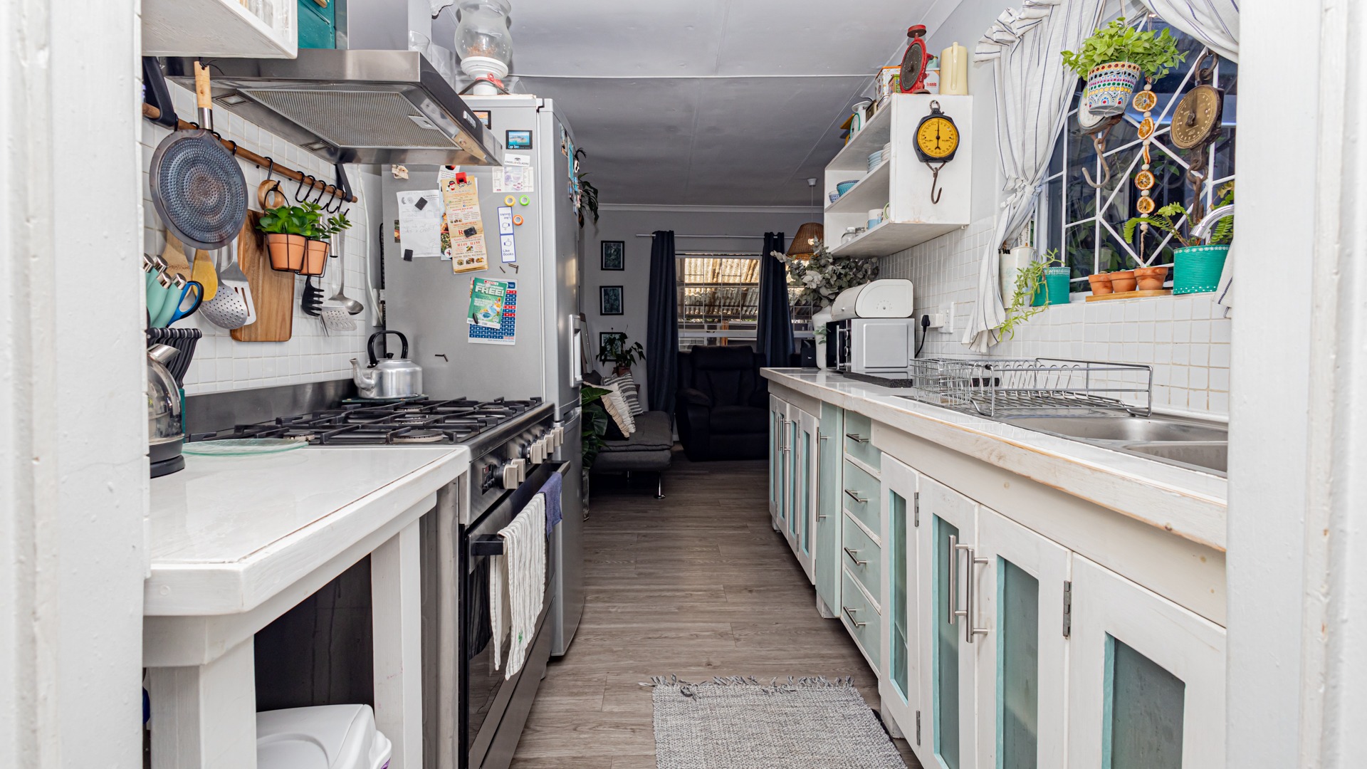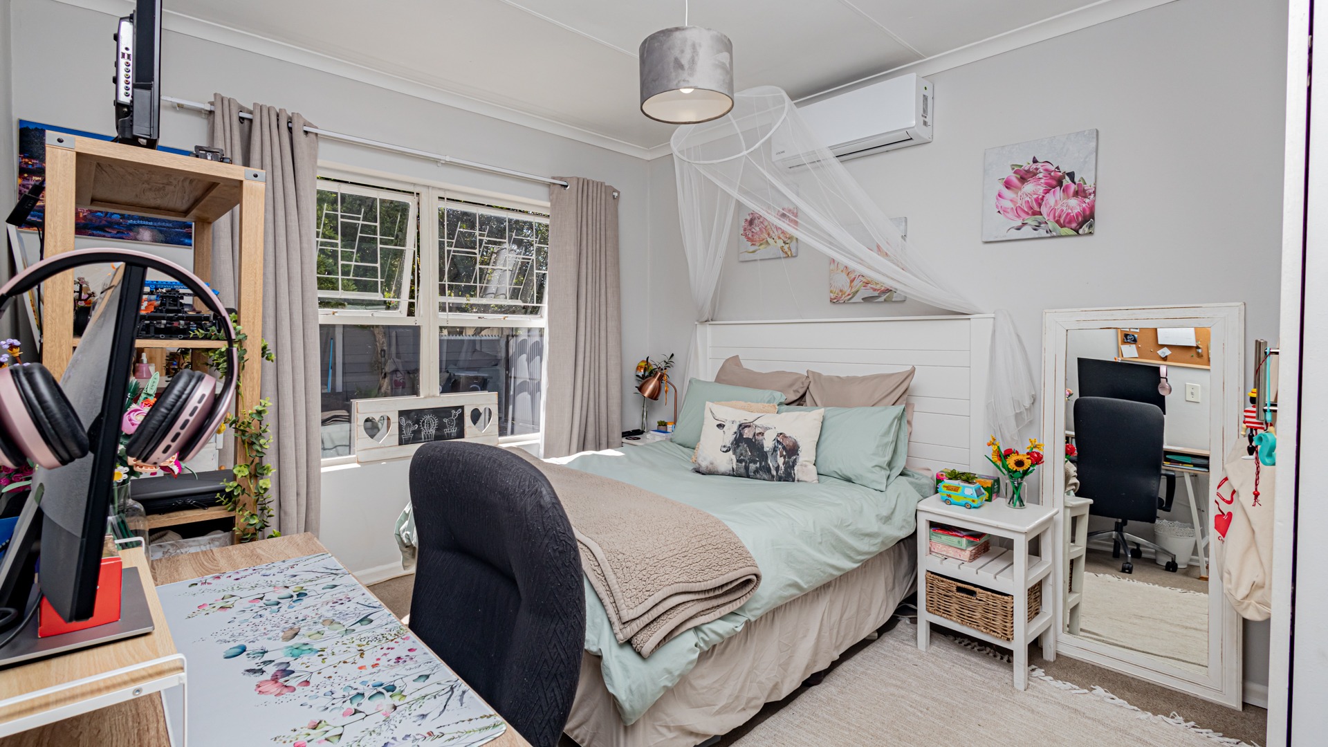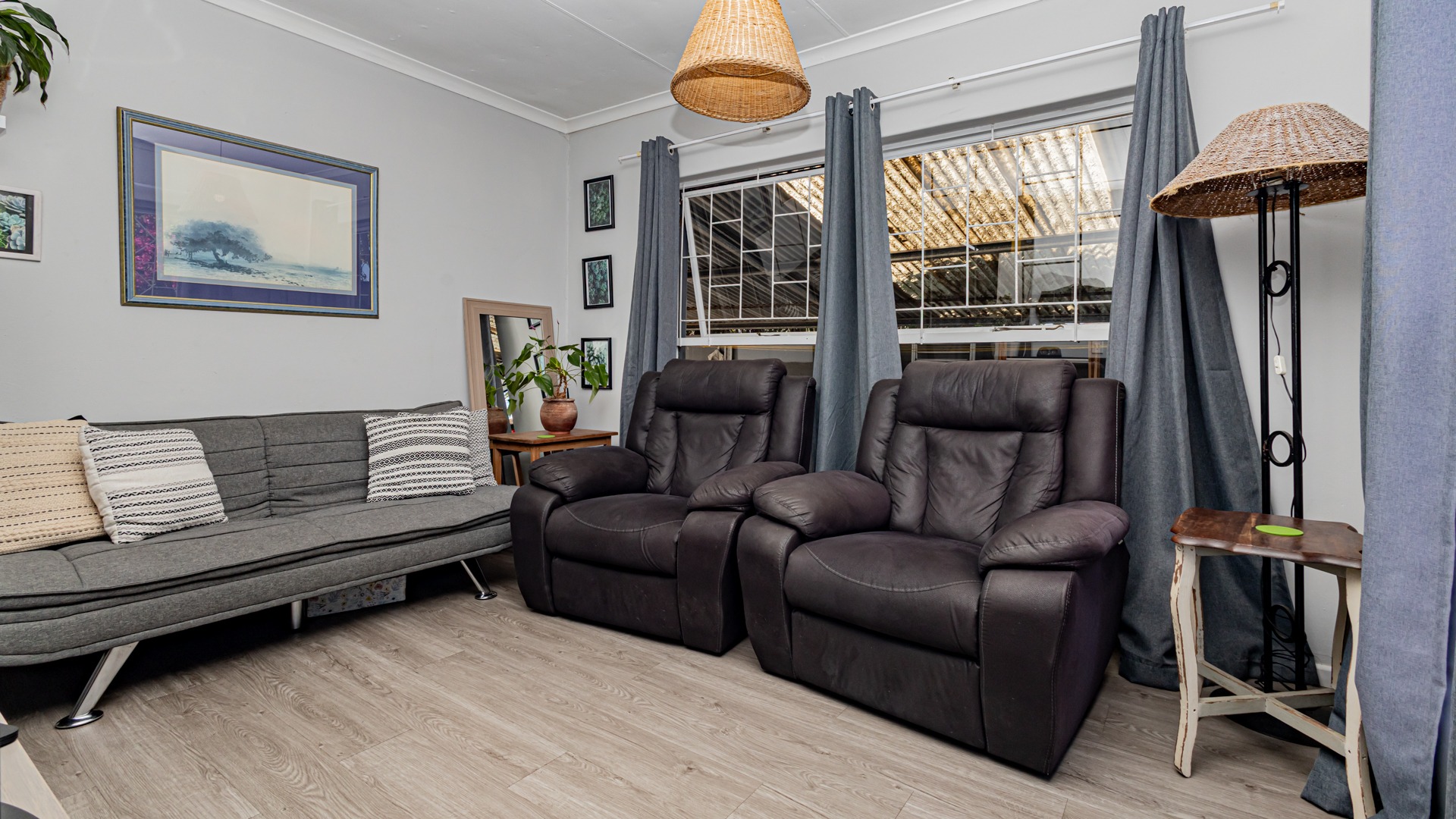 Discover this charming 3-bedroom, 2-bathroom home, including one en-suite, situated in Strand South. The interior boasts modern vinyl flooring and neutral walls, creating a welcoming atmosphere. The open-plan living area, featuring a lounge and a functional galley kitchen, is equipped with a stainless steel oven and a gas hob. Ample built in cupboards and open shelving, perfect for everyday living. Air conditioning in two of the bedrooms ensures comfort throughout the year. A dedicated study for work or hobbies is ideal.