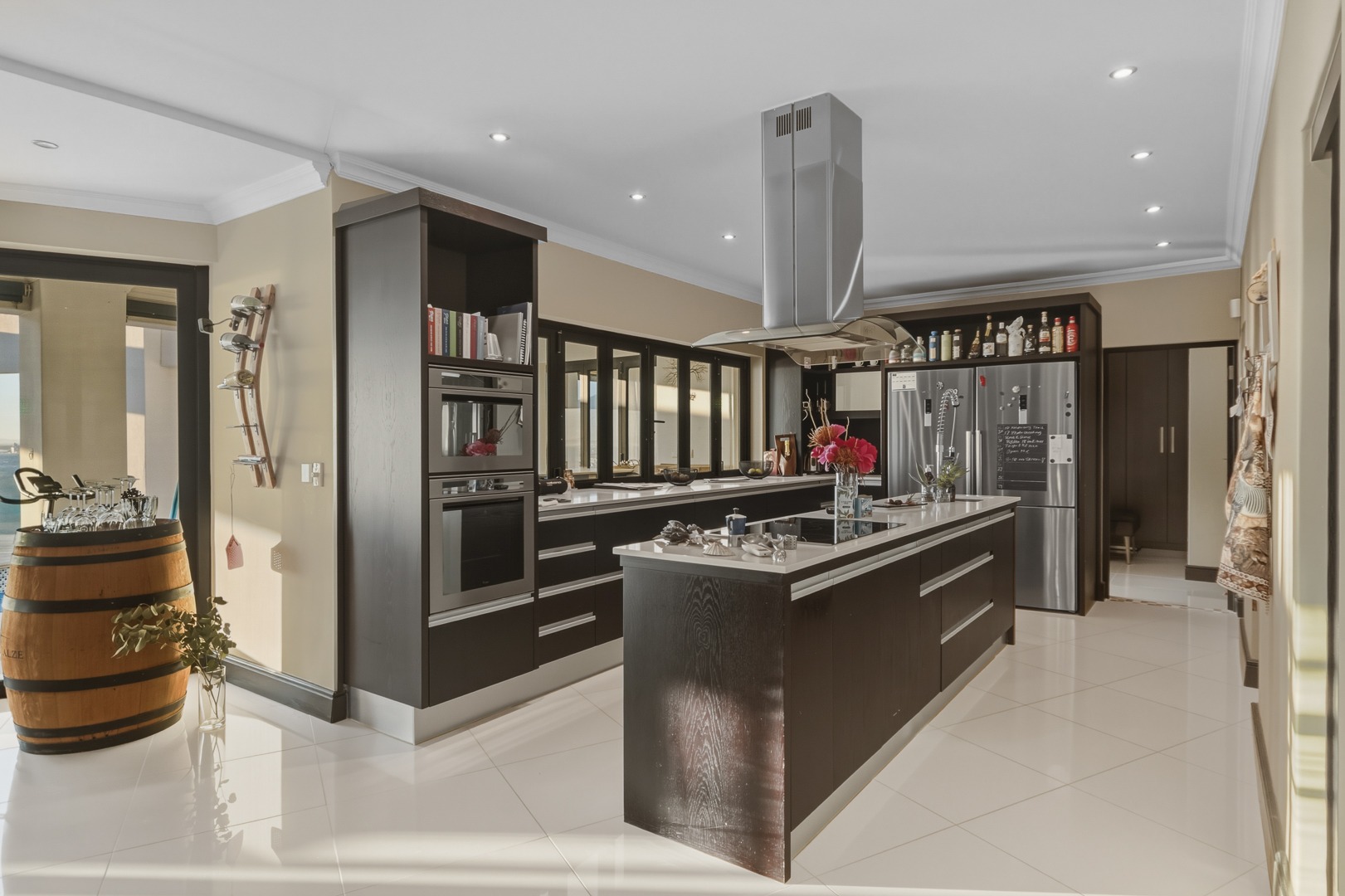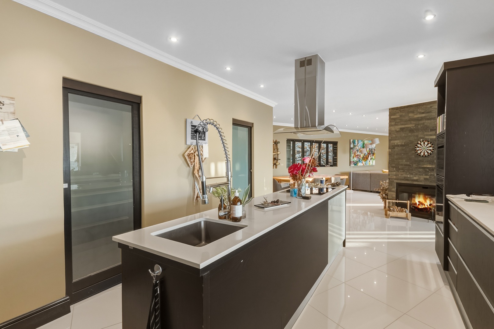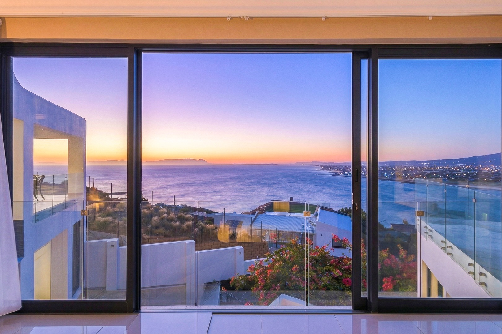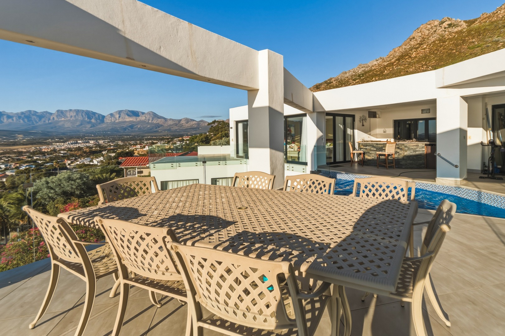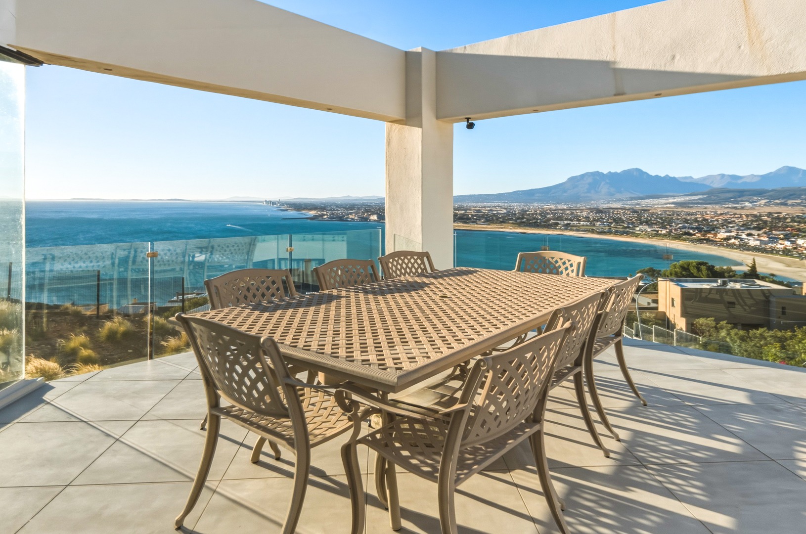 - Open plan kitchen, dining room and lounge. Large format glass sliding doors, allowing in the stunning False Bay views