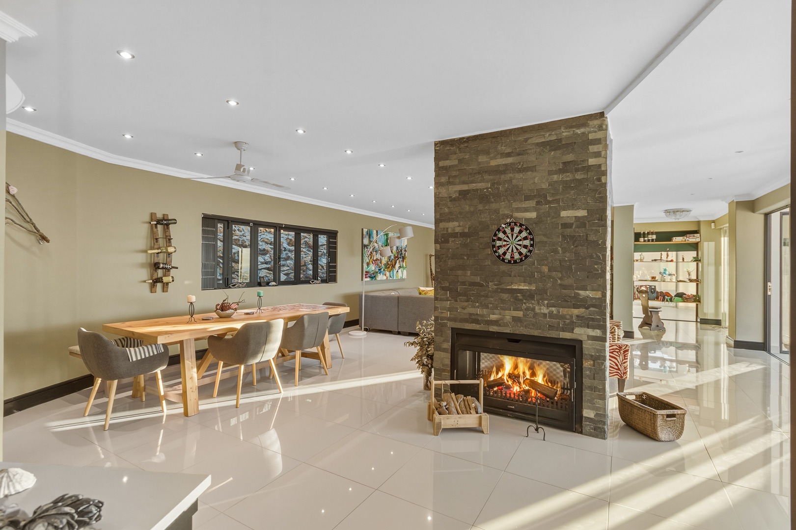 - Large outside patio, with under cover braai area. Experience evening braais with stunning sunsets and gorgeous days