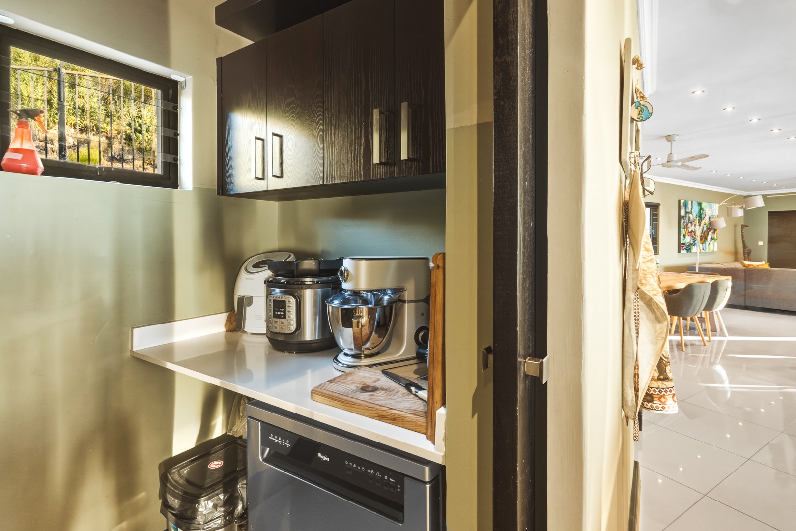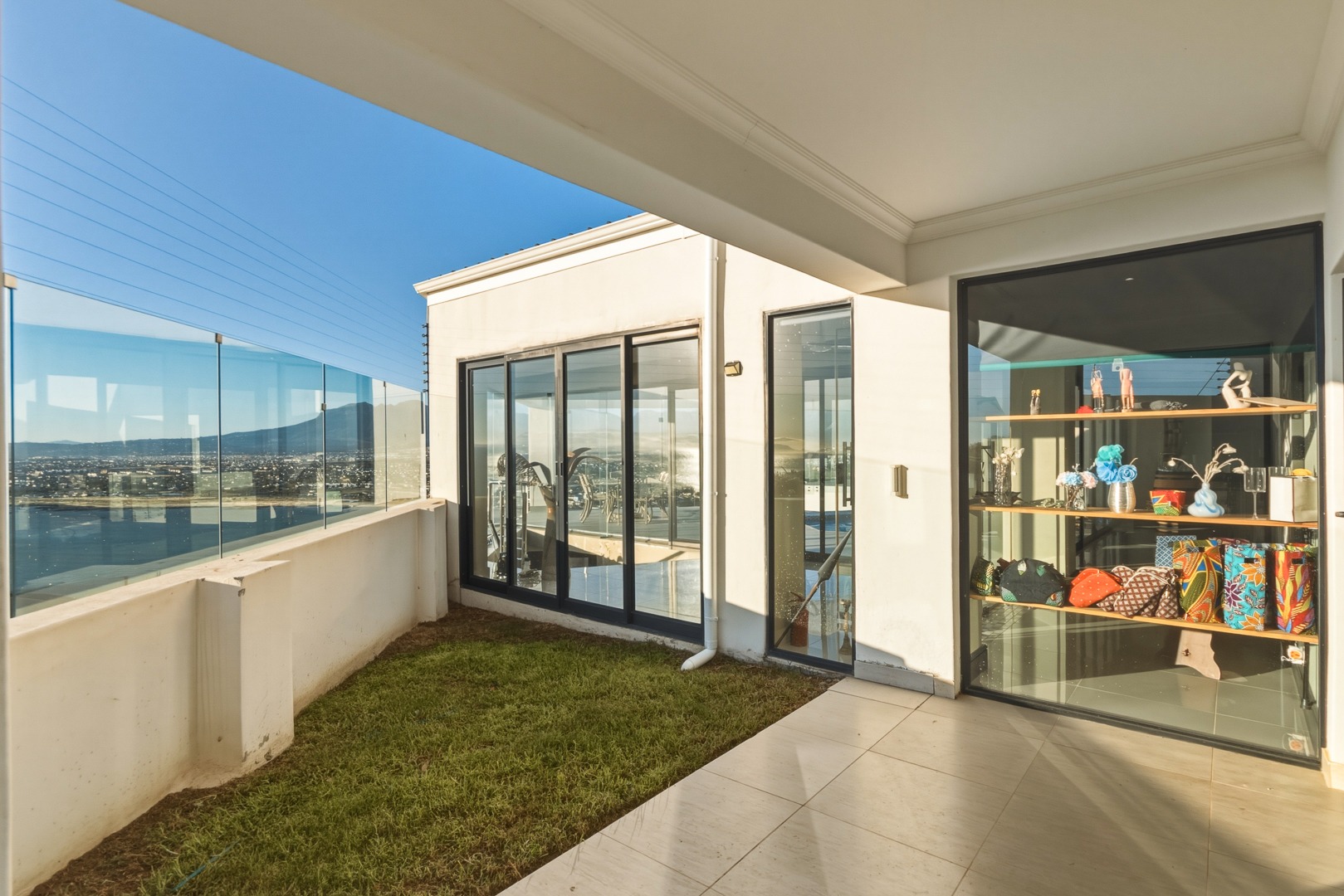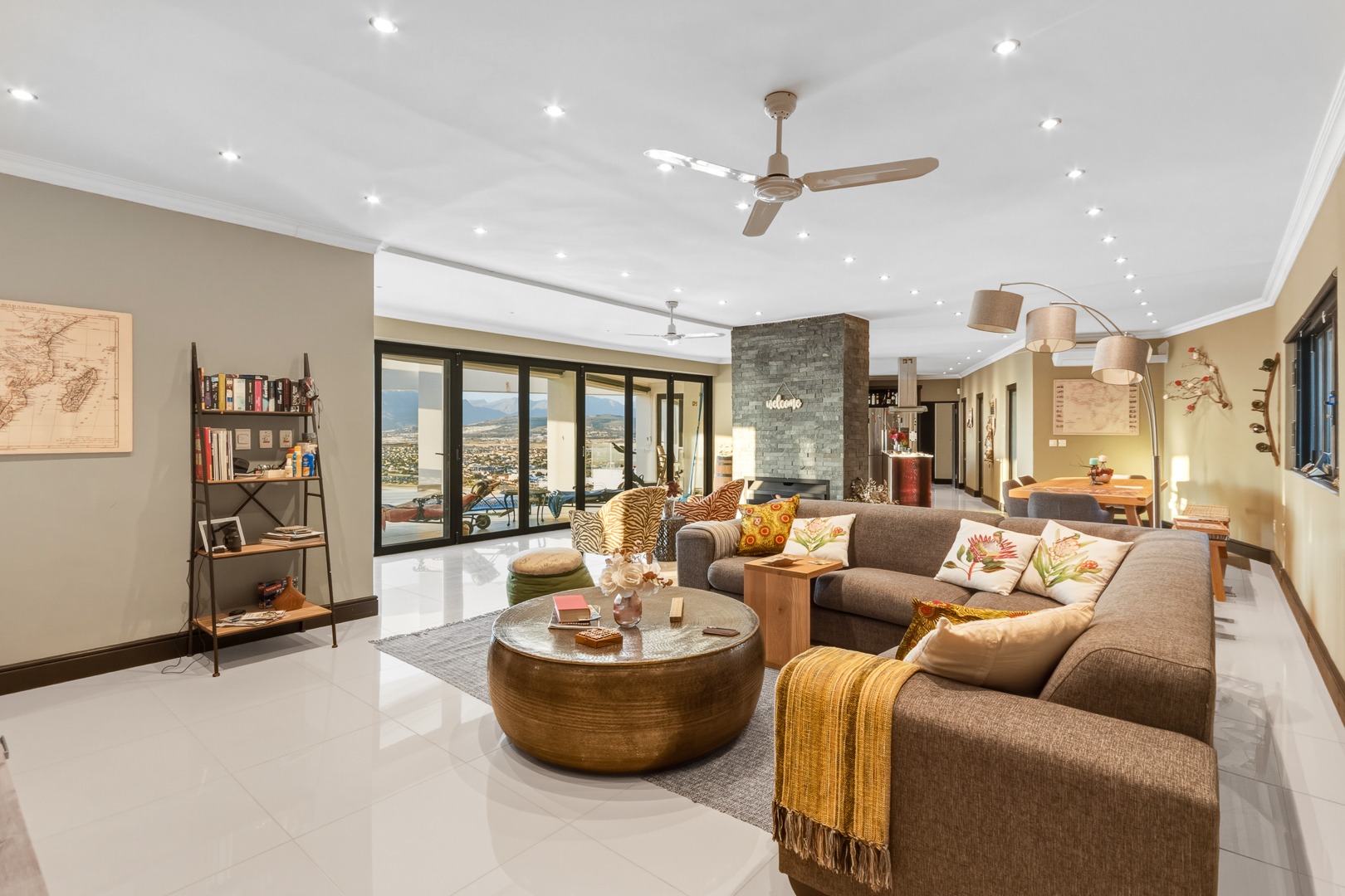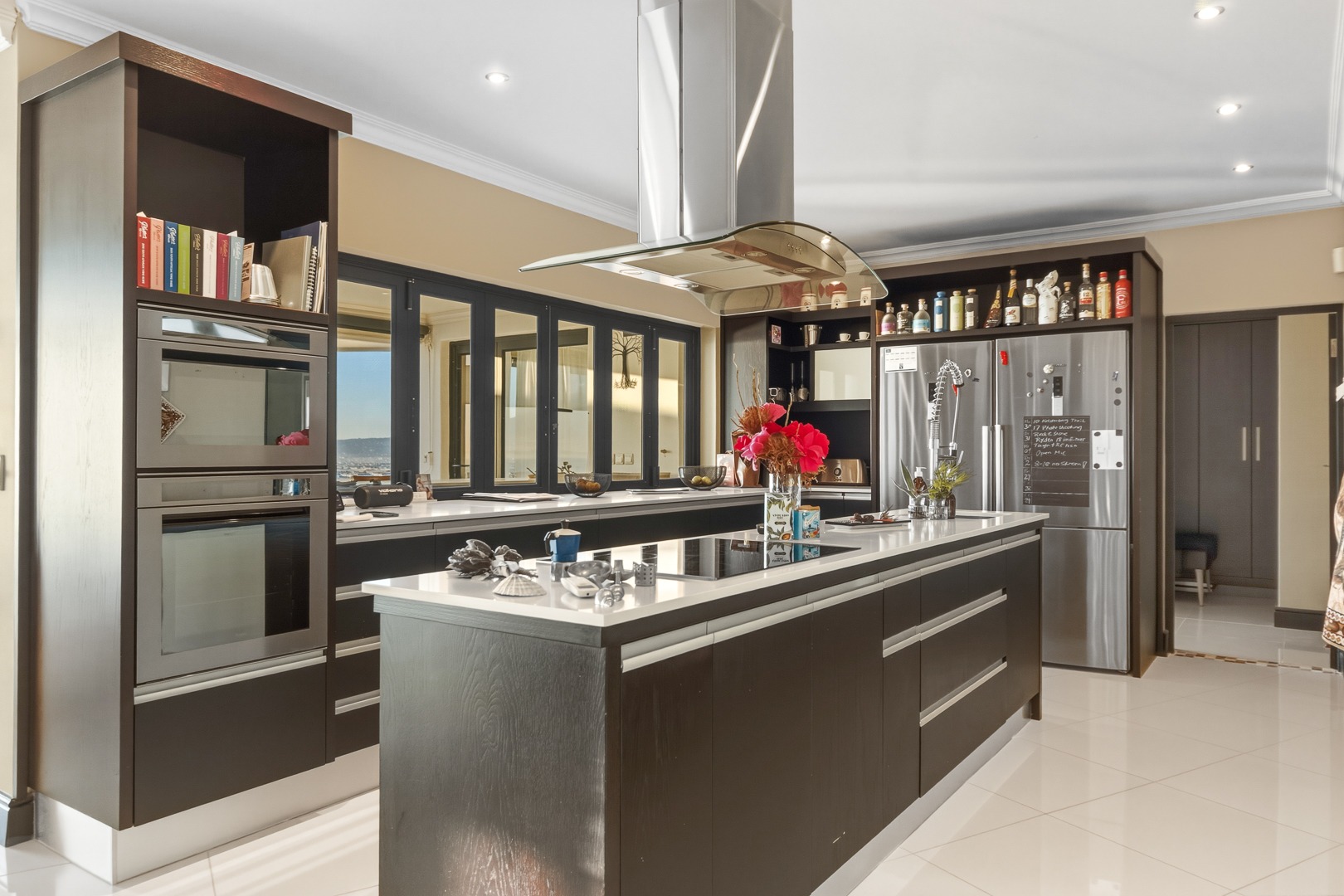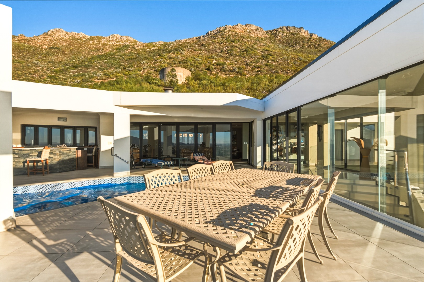 - Open plan kitchen, dining room and lounge. Large format glass sliding doors, allowing in the stunning False Bay views