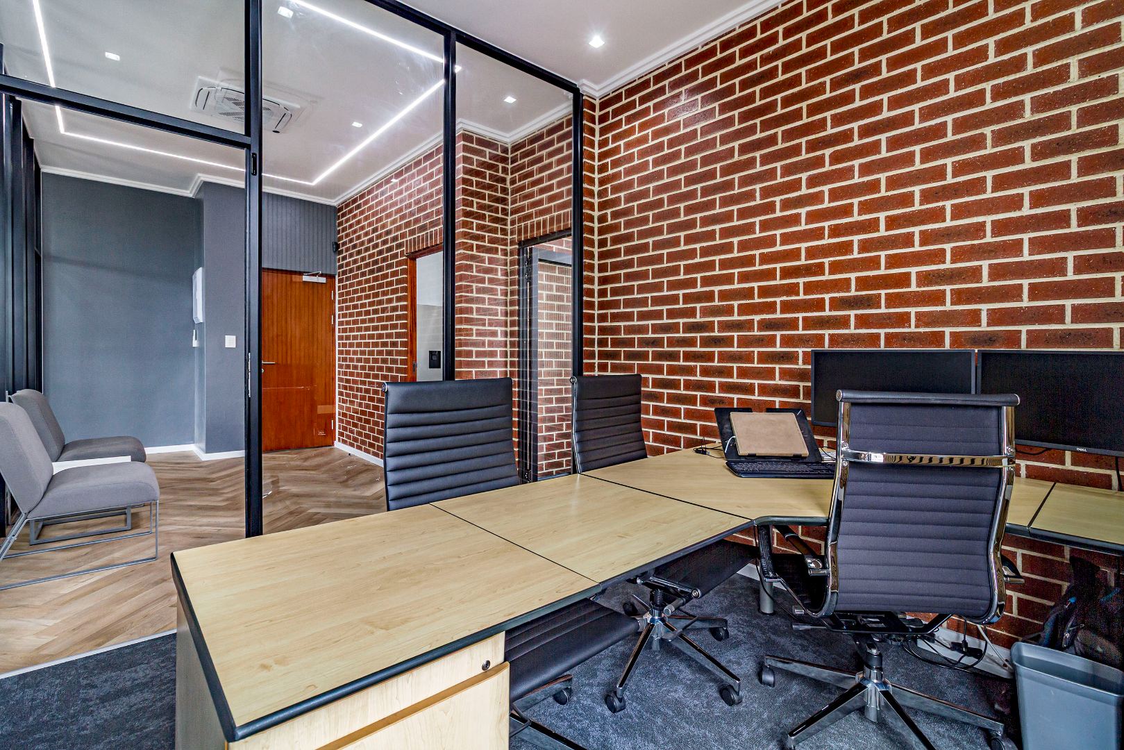 These two vacant spaces are 74m² each and situated on the ground floor. Each space will be completed once a tenant has been secured. Choosing the finishes will be a joined exercise with the landlord in order to create a space to suit the tenants needs. These spaces are fitted with a kitchenette each and shares the communal bathrooms. Double glazed windows ensures for no noise distraction from the road and insulates the property against the hot summer and cold winter days. Aircons will definitely be installed.